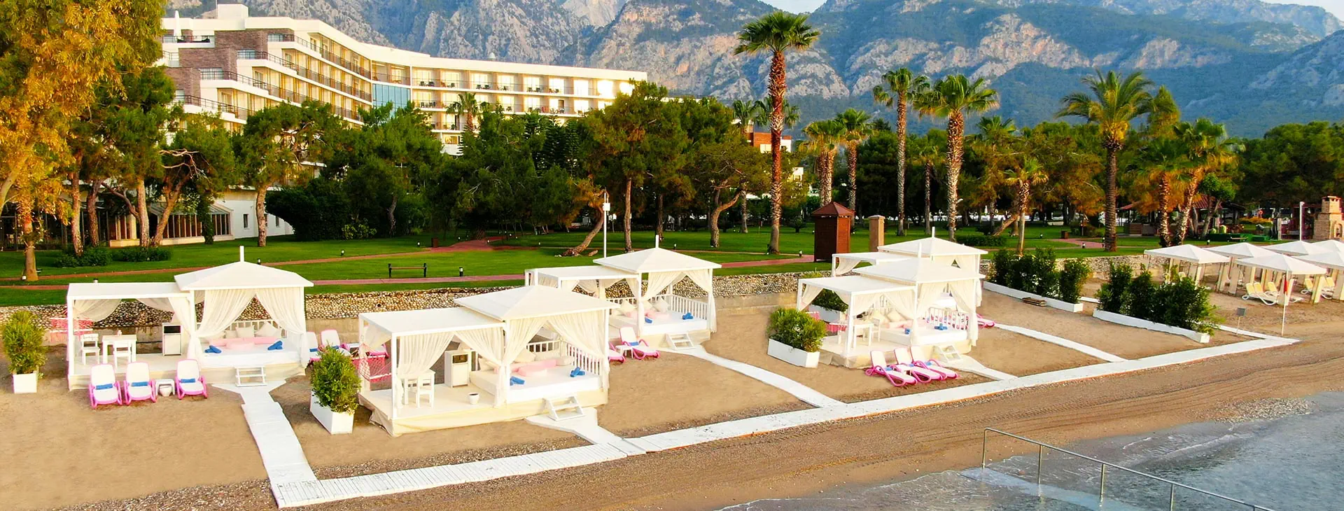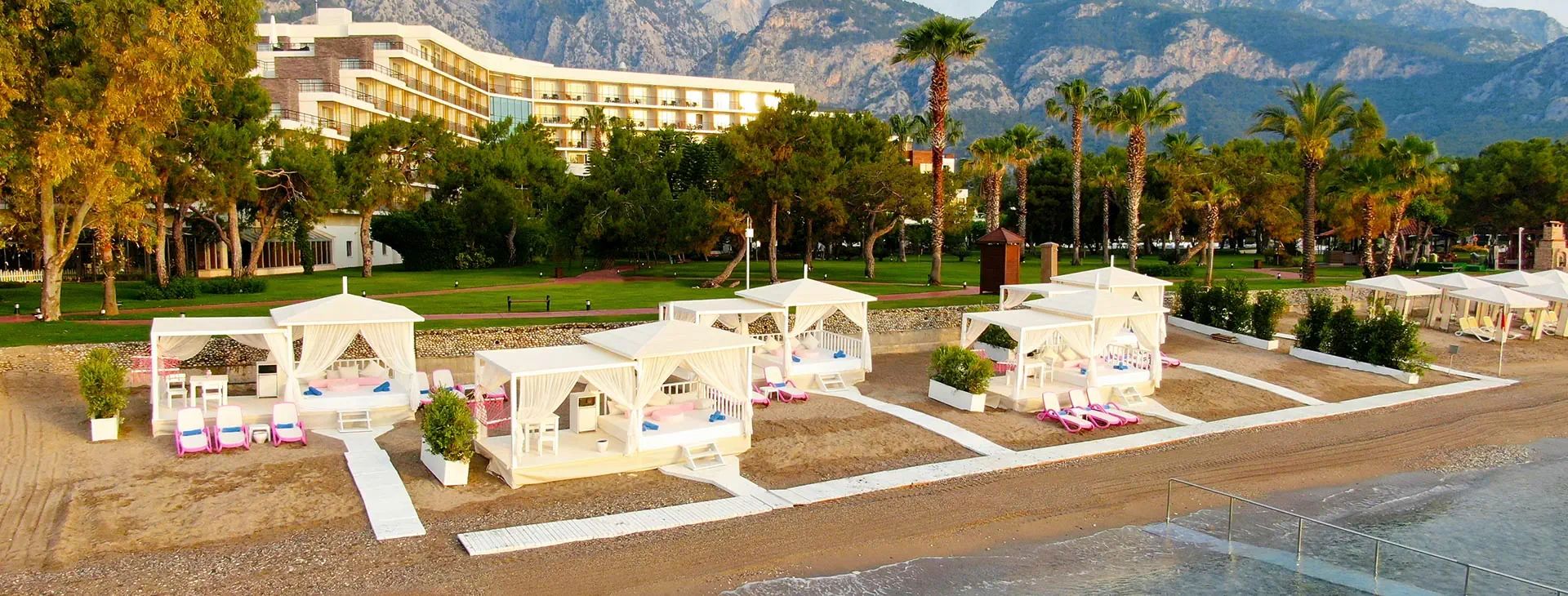 Położenie: Hotel należy do sieci Rixos. Położony w regionie Kemer. Otoczony rozległą, egzotyczną roślinnością. Z jednej strony hotelu rozciąga się widok na góry, z drugiej natomiast można zobaczyć zachwycające wody Morza Śródziemnego. Zlokalizowany około 50 km od lotniska w Antalyi i około 22 km od najbliższego centrum miasta. Plaża: Położony przed piaszczysto-żwirową plażą o długości około 275 m. Ręczniki, leżaki i parasole dostępne bez dodatkowej opłaty. Pawilony za dodatkową. Do dyspozycji gości: Recepcja, 4 windy, restauracja główna, 5 restauracji a’la carte: owoce morza, BBQ wraz z kuchnią turecką i włoska (bez dodatkowych opłat, dostępne raz na tydzień, wymagana wcześniejsza rezerwacja), francuska oraz dalekowschodnia (płatne dodatkowo, wymagana wcześniejsza rezerwacja), 5 barów: bar lobby, bar na plaży, bar Irish, bar C-Bar Vitamin oraz bar Lotus. Do dyspozycji gości: basen główny, basen dla dzieci, leżaki, parasole i ręczniki dostępne bez dodatkowej opłaty, parking. Płatne dodatkowo: opiekunka dla dzieci, fryzjer. Wyżywienie: All Incusive: śniadanie (7:00-10:00), późne śniadanie (10:00-10:30), lunch (12:30-14:30), obiadokolacja (19:00-21:30) oraz nocne przekąski (0:00-2:00) w restauracji głównej Turquoise w formie bufetu. Przekąski międzynarodowe w restauracji Alara (12:00-18:00). Cukiernia z kanapkami, kawą, herbatą, słodkościami oraz owocami (10:00-18:00). Dodatkowo: serwis z owocami na plaży, menu dziecięce, lody. Lokalne napoje alkoholowe i bezalkoholowe oraz wybrane napoje importowane dostępne 24 h w barze lobby, w pozostałych barach w godzinach otwarcia. Program sportowy i animacyjny: Hotel prowadzi dzienny i wieczorny program animacji oraz sportowy. Do dyspozycji gości m.in.: fitness, joga, koszykówka, siatkówka plażowa, kort tenisowy, tenis stołowy, rzutki, badminton, boccia, szachy. Dodatkowo: dyskoteka, karaoke, muzyka na żywo, występy DJ’a, kino na otwartym powietrzu. Hotel oferuje wejście na teren parku rozrywki Land of Legends (dwa razy na tydzień). Centrum SPA Anjana: sauna, łaźnia turecka, basen wewnętrzny, łaźnia parowa, strefa relaksu. Za dodatkową opłatą: masaże i zabiegi w centrum SPA, sporty wodne. Dla dzieci: miniklub Rixy (4-12 lat) z całą gamą aktywności i zajęć. Internet: Bezpłatny Internet Wi-Fi w pokojach i ogólnodostępnych częściach hotelu. Kategoria lokalna: ***** Strona www: www.rixos.com Naszym zdaniem: Świetny hotel z szeroką ofertą. Zlokalizowany z dala od zgiełku dużych miast, dlatego jest to idealne miejsce do relaksu. Usytuowany w pięknym otoczeniu z zachwycającymi widokami. Duży wybór aktywności i różnorodna oferta barów i restauracji to zdecydowany atut. Polecamy szczególnie na rodzinny wypoczynek, ze względu na rozbudowaną ofertę animacji dla dzieci. Sprawdzi się też dla indywidualnych podróżujących.