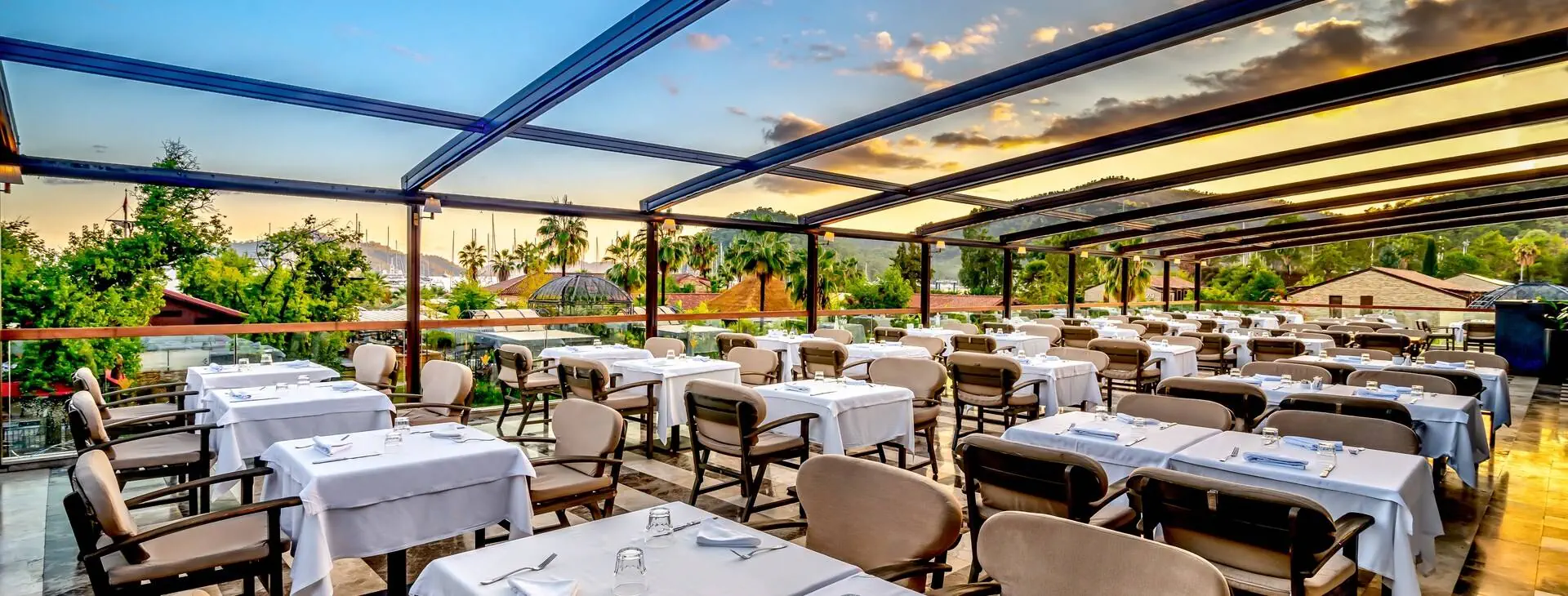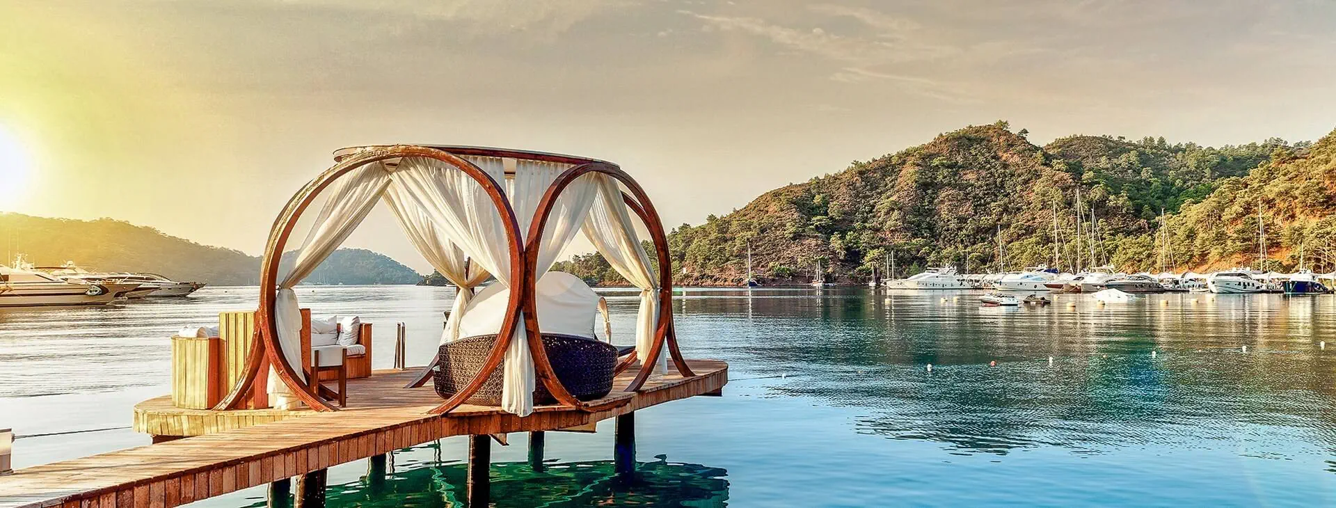 Położenie: Hotel należy do sieci hoteli Rixos. Położony w miejscowości Gocek otoczony zieloną roślinnością, górami i jednocześnie zlokalizowany na wybrzeżu morza blisko dwóch przystani. Znajduje się około 20 km od lotniska w Dalmanie i około 28 km do centrum miasta Fethiye. Oddalony około 700 m od centrum Gocek. Plaża: Na wybrzeżu znajduje się przystań. Hotel posiada dostęp do prywatnej plaży Rixos Secret Beach, na którą dowozi hotelowy busik (około 1,5 km). Na plaży dostępne leżaki oraz parasole. Wymagana wcześniejsza rezerwacja usług płatnych dodatkowo. Serwis i pawilony płatne dodatkowo. Do dyspozycji gości: Recepcja, restauracja główna Turquoise, restauracja z przekąskami Azur, restauracja a’la carte z kuchnią międzynarodową, restauracja a’la carte z owocami morza (płatna dodatkowo), restauracja grillowa (między 19:00-23:00 płatna dodatkowo), restauracja Teppanyaki z daniami dalekowschodnimi (płatna dodatkowo). 4 bary: Nox The Stage, Azur Bar, Pool Bar, lobby bar. Serwis Starbucks. Do dyspozycji gości: 2 baseny (słodkowodny oraz słonowodny), parking. Płatne dodatkowo: room service. Wyżywienie: Ultra All Inclusive: śniadanie (07:00-11:00) oraz obiadokolacja (19:00-21:30) w restauracji głównej w formie bufetu. Ponadto niedzielny brunch (07:00-12:30). Przekąski: m.in. sałatki, burgery, pizza (12:00-18:00). Lokalne napoje bezalkoholowe i alkoholowe oraz wybrane napoje importowane dostępne w godzinach otwarcia barów (09:00-24:00). Program sportowy i animacyjny: Hotel prowadzi program sportowy i animacyjny w ciągu dnia i wieczorami. Muzyka na żywo, koncerty i kino na otwartym powietrzu. Ponadto m.in.: joga, crossfit, trekking, siatkówka plażowa, piłka nożna, zajęcia fitness. Płatne dodatkowo: kort tenisowy, lekcje tenisa, prywatne zajęcia jogi, trener personalny, katamaran. Dostępna również wycieczka łodzią dla gości UAI (raz na pobyt). Dodatkowo centrum SPA Anjana z łaźnią parową, sauną, łaźnią turecką, strefą relaksu oraz siłownią. Płatne dodatkowo: masaże, peelingi, zabiegi piękna, usługi specjalne. Internet: Bezpłatny Internet Wi-Fi w pokojach i ogólnodostępnych częściach hotelu. Kategoria lokalna: ***** Strona www: www.rixos.com Naszym zdaniem: Hotel dla Gości od lat 13. Usytuowany w przepięknym otoczeniu, polecany dla osób poszukujących spokojnego relaksu. Cudowne pokoje zapewnią luksusowy wypoczynek. Świetna oferta Ultra All Inclusive usatysfakcjonuje różnorodną ofertą. Świetne miejsce do odprężenia się w niezapomnianej atmosferze i z dala od zgiełku dużych miast.
