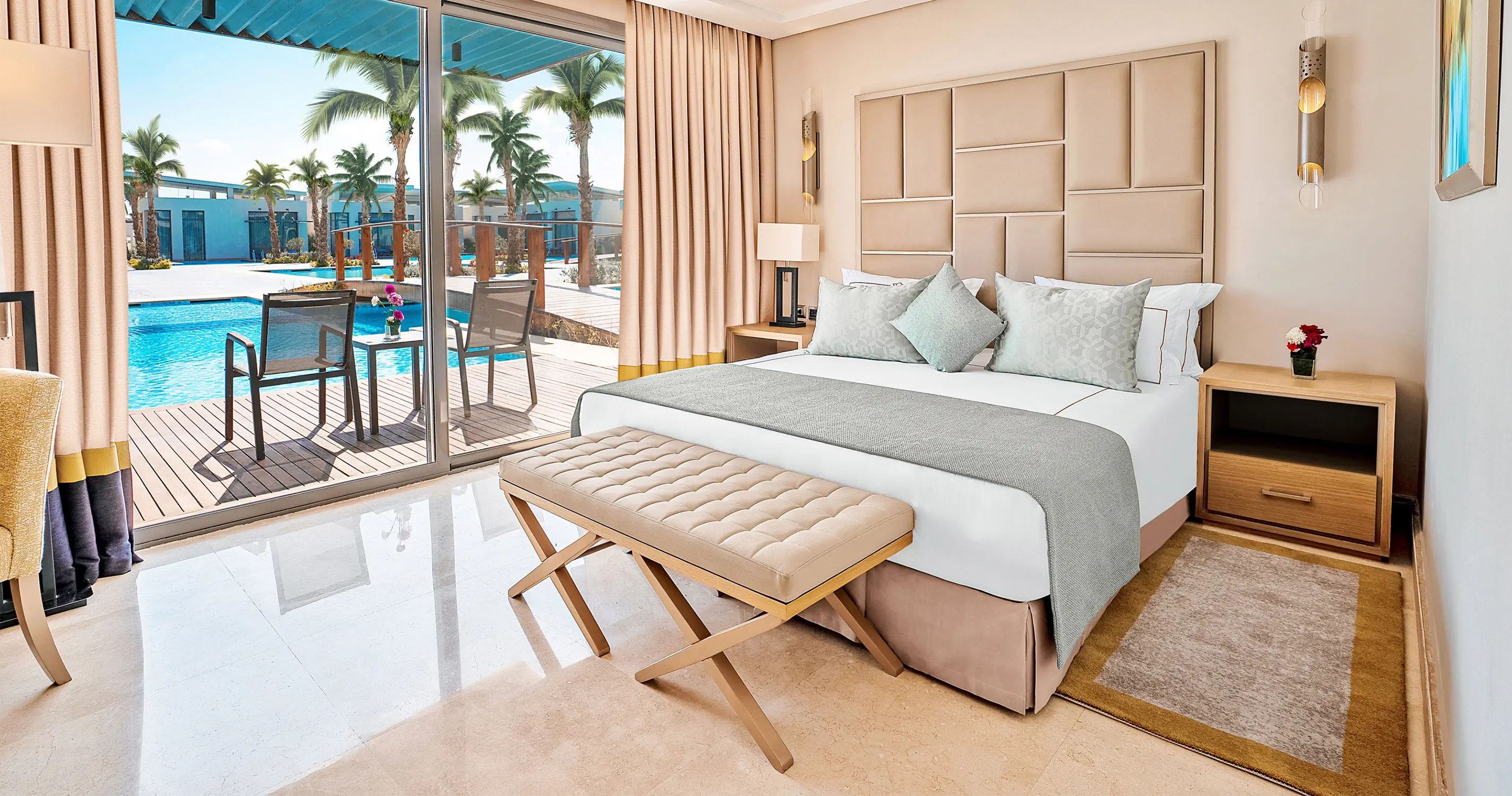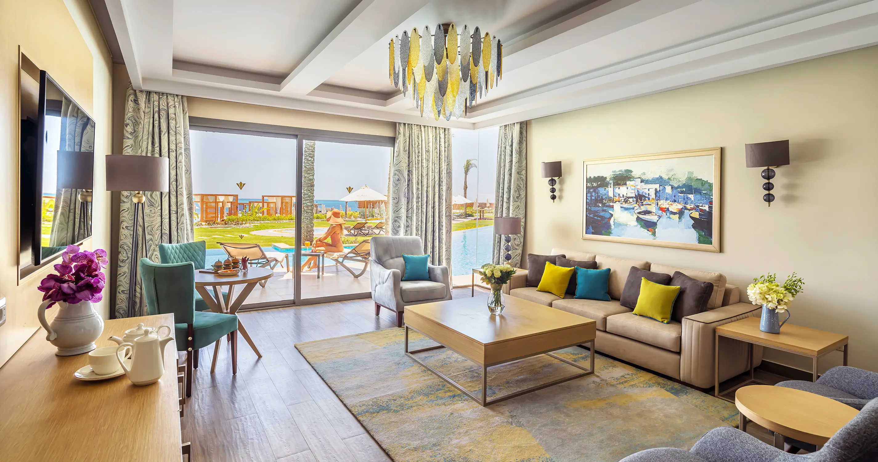 Pokój Suite 53-73 m2 (suite room) - Klimatyzacja - Łazienka z prysznicem, WC - Suszarka do włosów - TV-Sat - Telefon - Wi-Fi - bezpłatne - Sejf - bezpłatny - Minibar - uzupełniany codzienie - bezpłatny - Zestaw do parzenia kawy/herbaty, ekspres do kawy - Szlafrok i kapcie dla dzieci i dorosłych - Jedno pomieszczenie z wydzieloną częścią dzienną i sypialną - Balkon lub taras - Suite GV/PV - widok na ogród lub basen - Suite SV - widok na morze Pokój Lagoon Deluxe Suite ok. 130m2 (lagoon deluxe suite room) - Składa się z dwóch pomieszczeń: strefy dziennej z panoramicznym oknem oraz z sypialni - 2 minibary - uzupełniane codziennie - bezpłatne - Zlokalizowane na piętrze - 2 balkony Pokój Lagoon Swimm Up Suite ok. 130m2 (lagoon swimm up suite room) - Składa się z dwóch pomieszczeń: strefy dziennej z panoramicznym oknem oraz z sypialni - 2 minibary - uzupełniane codziennie - bezpłatne - Zlokalizowane na parterze - Bezpośredni dostęp z tarasu do basenu Pokój Villa Pool ok. 105-129m2 (villa pool room) - Składa się z dwóch pomieszczeń: strefy dziennej z panoramicznym oknem oraz z sypialni - 2 minibary - uzupełniane codziennie - bezpłatne - Zlokalizowane na parterze - Bezpośredni dostęp z tarasu do basenu