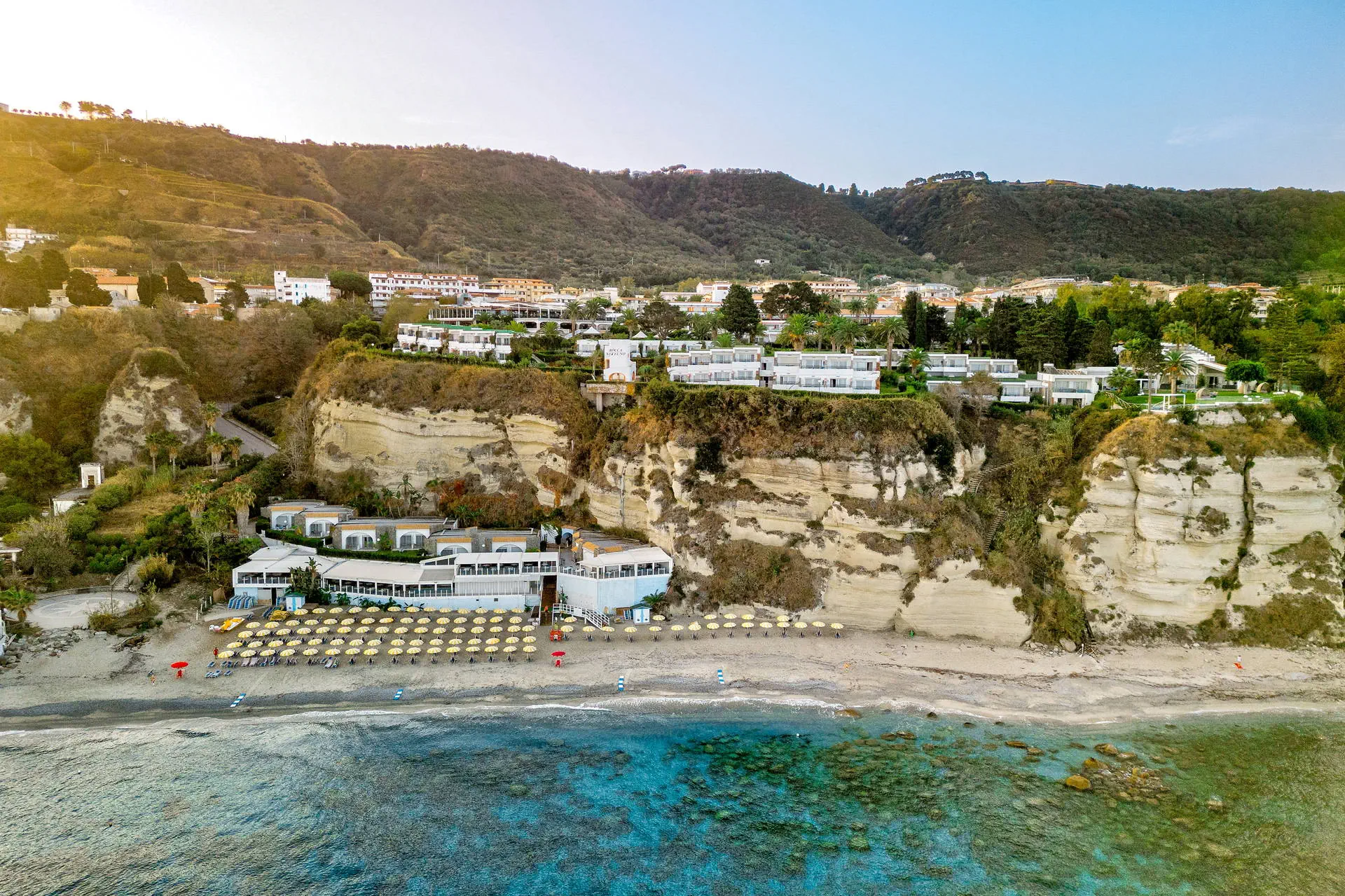 Położenie Luksusowy hotel położony na skarpie w otoczeniu śródziemnomorskiego ogrodu, składający się z budynku głównego oraz z budynków bocznych o niskiej zabudowie. Ok. 1 km do historycznego centrum urokliwej Tropei, gdzie znajduje się wiele restauracji, sklepów i pubów. Do lotniska w Lamezia di Terme ok. 60 km. Konieczność uiszczenia obowiązkowej opłaty za podatek turystyczny bezpośrednio w hotelu ok. 2 EUR/os./dzień. Plaża Obiekt usytuowany jest ok. 50 m od piaszczystej plaży (zjazd 2 windami lub zejście schodami). Bezpłatny serwis plażowy 2 leżaki i 1 parasol/pokój oraz ręczniki kąpielowe (dostępne po uiszczeniu depozytu ok. 20 EUR). Do dyspozycji gości Recepcja, lobby, restauracja główna z tarasem, restauracja Le Terrazze (płatna dodatkowo), 2 bary, restauracja na plaży i 2 pizzerie (przy plaży i przy hotelu), basen, brodzik dla dzieci. Bezpłatne leżaki i parasole przy basenie. Brak ręczników kąpielowych. Pokoje 264 gustownie urządzone standardowe pokoje 2-osobowe (max. 1 dostawka). Większość pokoi w budynku głównym z widokiem na okolicę hotelu (DZL, pow. ok. 20 m2) lub na ogród (DZG, pow. ok. 23 m2) wyposażonych w: łazienkę (prysznic i suszarka do włosów), centralnie sterowaną klimatyzację, telefon, sejf (ok. 2 EUR/dzień), TV Sat., mini lodówkę, większość z balkonem lub tarasem. Pokoje comfort znajdują się w budynkach bocznych (DCG, pow. ok. 26 m2), z widokiem na ogród lub morze, wyposażenie jak w pokojach standardowych. Na potwierdzenie pokoje: family (pow. ok. 40 m2) w budynkach bocznych (FZG), dla 2 osób dorosłych i max. 3 dzieci, z dodatkową sypialnią i łazienką; pokoje deluxe (DXG o pow. ok. 23 m2) - wyposażenie standardowe, dodatkowo posiadają prywatny taras z jacuzzi. Ponadto pokoje 1-osobowe (EZG, pow. ok. 10 m2) na potwierdzenie, wyposażone jak pokoje standardowe, z pojedynczym łóżkiem, bez balkonów. Płatne łóżeczko dla dziecka do 2 lat (ok. 5 EUR/dzień). Wyżywienie All Inclusive: śniadania, lunche i obiadokolacje w formie bufetu. Ponadto: pizzeria Bella, pizzeria i bar na plaży, bar główny i snack bar, napoje bezalkoholowe i lokalne alkohole (w wybranych barach w godz. 10:00-24:00), lody dla dzieci z mini klubu. Za dopłatą All Inclusive Plus: restauracja Le Terrazze (otwarta 5 x w tygodniu), lody, drinki, koktajle w Piazza Bar. Program sportowy i animacyjny Kort tenisowy, tenis stołowy, siatkówka plażowa, fitness, aerobik, aqua aerobik, dyskoteka (23:00-02:00), mini klub (dla dzieci w wieku 4-12 lat). Centrum SPA: sauna, łaźnia parowa, mała siłownia. Za dopłatą: masaże, salon piękności. Internet Bezpłatny Internet Wi-Fi w lobby. Kategoria lokalna **** Naszym zdaniem Nowoczesny kompleks dla osób ceniących luksus - jeden z najlepszych w całej Kalabrii. Największą zaletą hotelu są eleganckie pokoje i wysoki standard świadczonych usług. Doskonała oferta dla osób aktywnych, lubiących sport oraz dla rodzin z dziećmi. Do centrum słynnej i urokliwej Tropei zaledwie 15 min. pieszo. Strona www www.roccanettuno.com