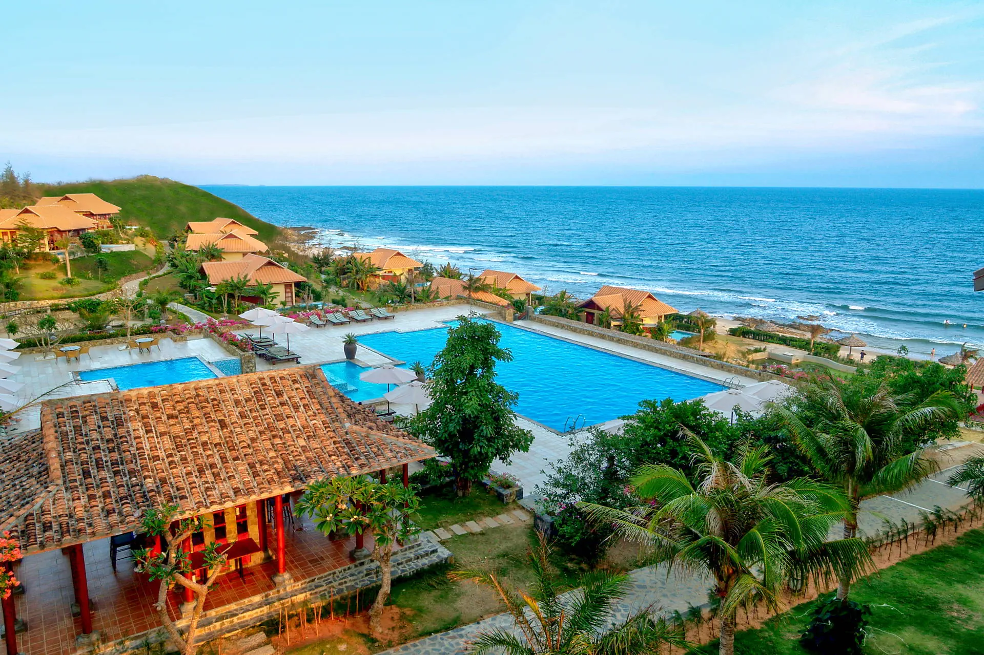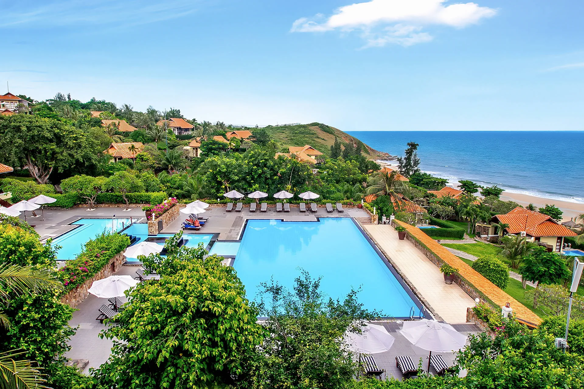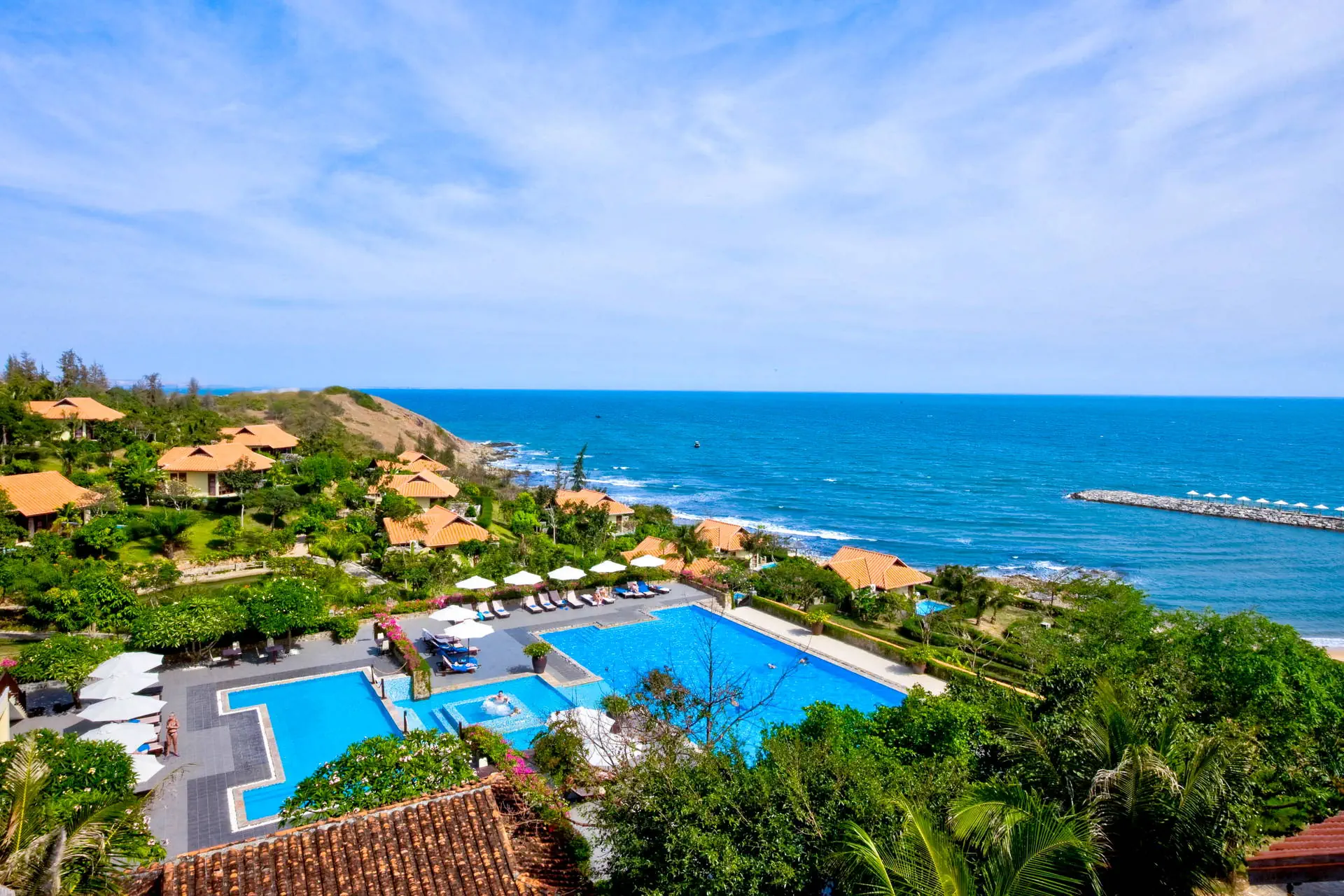Do dyspozycji gości Całodobowa recepcja Room Service 24/7.1 basen zewnętrzny, brodzik dla dzieci, jacuzzi, bezpłatne leżaki i parasole przy basenie. Atrakcje dla dorosłych: boisko do siatkówki plażowej, kort tenisowy, centrum SPA (płatne), bilard (płatny), salon gier (płatny).Restauracje i bary: restauracja Panorama, 2 bary (w tym bar przy plaży).Pozostałe informacje: bezpłatny parking, łóżeczko dla dziecka (na zapytanie), pralnia (płatna), sale bankietowe i konferencyjne (płatne), bezpłatny bus do centrum Mui Ne (szczegóły w recepcji). Internet Bezpłatne Wi-Fi dostępne w pokojach oraz miejscach ogólnodostępnych. Kategoria lokalna **** Naszym zdaniem Romana Resort & Spa to hotel zlokalizowany w spokojnej części Mui Ne, z bezpośrednim dostępem do szerokiej, piaszczystej plaży. Malownicze położenie na wzniesieniu, piękna panorama oraz kameralny charakter tego miejsca zapewniają poczucie prywatności i sprzyjają swobodnemu wypoczynkowi. Komfortowe pokoje, różnorodna oferta kulinarna oraz zaplecze rekreacyjne tworzą idealne warunki do relaksu w tropikalnym otoczeniu, z dala od miejskiego zgiełku. Dodatkowym atutem jest łatwy dojazd do centrum kurortu, dzięki czemu hotel łączy bliskość natury z wygodnym dostępem do lokalnych atrakcji. Plaża Plaża tuż przy hotelu. Prywatna, piaszczysta i szeroka z łagodnym zejściem do morza. Leżaki i parasole w cenie. Pokoje Hotel oferuje 64 pokoje typu deluxe z widokiem na morze, wzgórza lub ogród oraz 32 wille. Każdy pokój urządzony jest w stylu art-deco z orientalnymi akcentami, odzwierciedlającymi lokalny urok Wietnamu i posiada prywatny balkon. Wyposażenie obejmuje łazienkę z wanną i prysznicem, suszarkę do włosów oraz bezpłatny zestaw kosmetyków i kapcie. Dodatkowo pokoje oferują indywidualnie sterowaną klimatyzację, sejf, telefon i telewizję satelitarną. W pokojach dostępny jest również minibar (za dodatkową opłatą). Położenie Hotel położony w nadmorskiej dzielnicy Phu Hai, na prywatnym wzniesieniu.Obiekt znajduje się w spokojnej części Mui Ne – popularnego kurortu znanego z piaszczystych plaż i atrakcji przyrodniczych.Do turystycznej strefy z restauracjami, barami i sklepami jest ok. 3 km.Centrum miasta Phan Thiet znajduje się w odległości ok. 9 km od hotelu. Wioska rybacka oddalona jest o ok. 12 km od obiektu.Lotnisko w Sajgonie oddalone jest o ok. 184 km. Lotnisko Long Thành znajduje się w odległości ok. 144 km. Program sportowy i animacyjny Dla każdego: boisko do siatkówki plażowej, jacuzzi, kort tenisowy (bezpłatny w godzinach 06:00-17:00). Za dodatkową opłatą: salon gier, bilard, centrum SPA (sauna, liczne zabiegi pielęgnacyjne i relaksacyjne, masaże), salon kosmetyczny. Strona www www.romanaresort.com.vn Wyżywienie Rodzaje wyżywienia i posiłki: Śniadania (06:30 - 10:00), w formie bogatego i urozmaiconego bufetu serwowane w restauracji hotelowej. Restauracje: Restauracja Panorama - oferuje szeroki wybór świeżych owoców morza oraz autentyczne dania kuchni wietnamskiej (menu a'la carte, za dodatkową opłatą), położona tuż przy plaży. Bary: Bar Laguna - bar przy basenie serwujący lekkie lunche, kolacje, przekąski, a także propozycje dla dzieci (menu a'la carte, za dodatkową opłatą), w swojej ofercie posiada bogaty wybór orzeźwiających drinków tropikalnych, koktajli, piwa i win.Bar Panorama - bar oferujący rozmaite koktajle oraz wina. Pozostałe informacje: Napoje płatne dodatkowo.Możliwość dopłaty do wyżywienia HB (obiadokolacji), wyżywienia FB (obiadu i kolacji) lub All Inclusive.