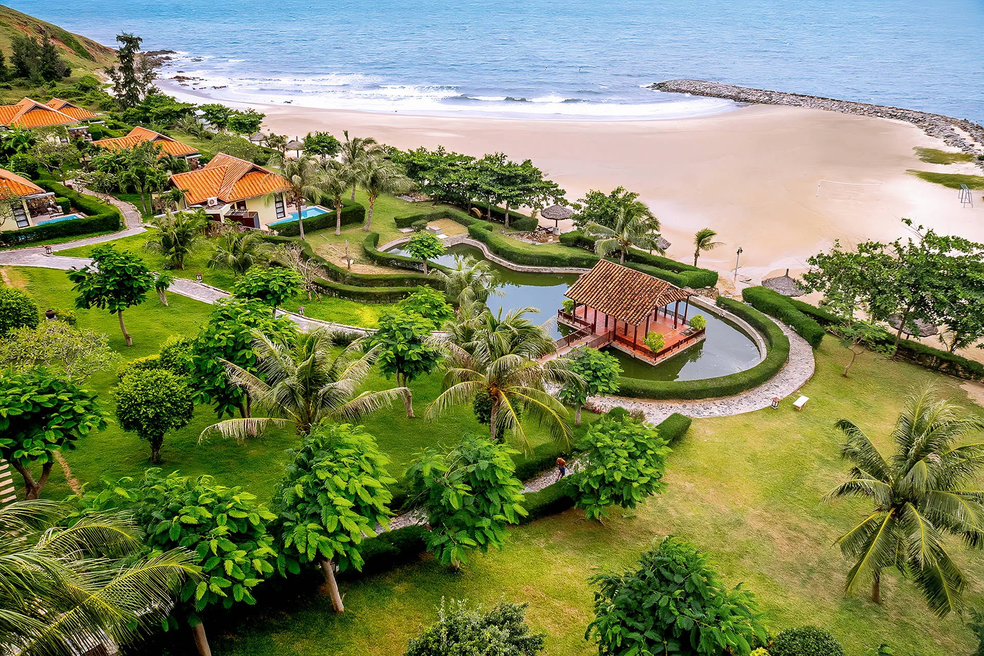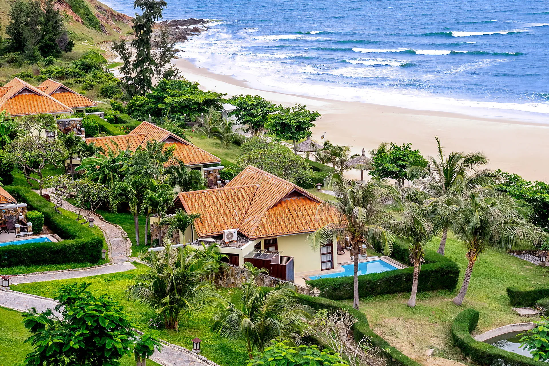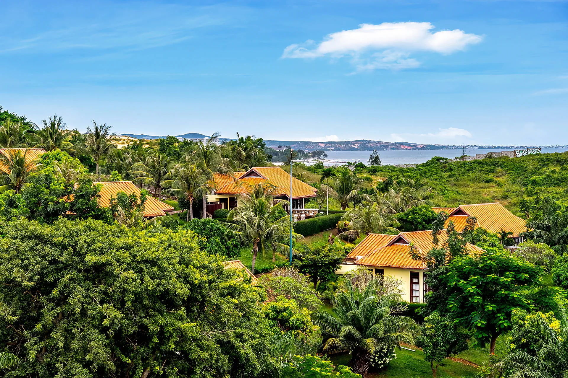 Do dyspozycji gości Całodobowa recepcja Room Service 24/7.1 basen zewnętrzny, brodzik dla dzieci, jacuzzi, bezpłatne leżaki i parasole przy basenie. Atrakcje dla dorosłych: boisko do siatkówki plażowej, kort tenisowy, centrum SPA (płatne), bilard (płatny), salon gier (płatny).Restauracje i bary: restauracja Panorama, 2 bary (w tym bar przy plaży).Pozostałe informacje: bezpłatny parking, łóżeczko dla dziecka (na zapytanie), pralnia (płatna), sale bankietowe i konferencyjne (płatne), bezpłatny bus do centrum Mui Ne (szczegóły w recepcji). Internet Bezpłatne Wi-Fi dostępne w pokojach oraz miejscach ogólnodostępnych. Kategoria lokalna **** Naszym zdaniem Romana Resort & Spa to hotel zlokalizowany w spokojnej części Mui Ne, z bezpośrednim dostępem do szerokiej, piaszczystej plaży. Malownicze położenie na wzniesieniu, piękna panorama oraz kameralny charakter tego miejsca zapewniają poczucie prywatności i sprzyjają swobodnemu wypoczynkowi. Komfortowe pokoje, różnorodna oferta kulinarna oraz zaplecze rekreacyjne tworzą idealne warunki do relaksu w tropikalnym otoczeniu, z dala od miejskiego zgiełku. Dodatkowym atutem jest łatwy dojazd do centrum kurortu, dzięki czemu hotel łączy bliskość natury z wygodnym dostępem do lokalnych atrakcji. Plaża Plaża tuż przy hotelu. Prywatna, piaszczysta i szeroka z łagodnym zejściem do morza. Leżaki i parasole w cenie. Pokoje Hotel oferuje 64 pokoje typu deluxe z widokiem na morze, wzgórza lub ogród oraz 32 wille. Każdy pokój urządzony jest w stylu art-deco z orientalnymi akcentami, odzwierciedlającymi lokalny urok Wietnamu i posiada prywatny balkon. Wyposażenie obejmuje łazienkę z wanną i prysznicem, suszarkę do włosów oraz bezpłatny zestaw kosmetyków i kapcie. Dodatkowo pokoje oferują indywidualnie sterowaną klimatyzację, sejf, telefon i telewizję satelitarną. W pokojach dostępny jest również minibar (za dodatkową opłatą). Położenie Hotel położony w nadmorskiej dzielnicy Phu Hai, na prywatnym wzniesieniu.Obiekt znajduje się w spokojnej części Mui Ne – popularnego kurortu znanego z piaszczystych plaż i atrakcji przyrodniczych.Do turystycznej strefy z restauracjami, barami i sklepami jest ok. 3 km.Centrum miasta Phan Thiet znajduje się w odległości ok. 9 km od hotelu. Wioska rybacka oddalona jest o ok. 12 km od obiektu.Lotnisko w Sajgonie oddalone jest o ok. 184 km. Lotnisko Long Thành znajduje się w odległości ok. 144 km. Program sportowy i animacyjny Dla każdego: boisko do siatkówki plażowej, jacuzzi, kort tenisowy (bezpłatny w godzinach 06:00-17:00). Za dodatkową opłatą: salon gier, bilard, centrum SPA (sauna, liczne zabiegi pielęgnacyjne i relaksacyjne, masaże), salon kosmetyczny. Strona www www.romanaresort.com.vn Wyżywienie Rodzaje wyżywienia i posiłki: Śniadania (06:30 - 10:00), w formie bogatego i urozmaiconego bufetu serwowane w restauracji hotelowej. Restauracje: Restauracja Panorama - oferuje szeroki wybór świeżych owoców morza oraz autentyczne dania kuchni wietnamskiej (menu a'la carte, za dodatkową opłatą), położona tuż przy plaży. Bary: Bar Laguna - bar przy basenie serwujący lekkie lunche, kolacje, przekąski, a także propozycje dla dzieci (menu a'la carte, za dodatkową opłatą), w swojej ofercie posiada bogaty wybór orzeźwiających drinków tropikalnych, koktajli, piwa i win.Bar Panorama - bar oferujący rozmaite koktajle oraz wina. Pozostałe informacje: Napoje płatne dodatkowo.Możliwość dopłaty do wyżywienia HB (obiadokolacji), wyżywienia FB (obiadu i kolacji) lub All Inclusive.