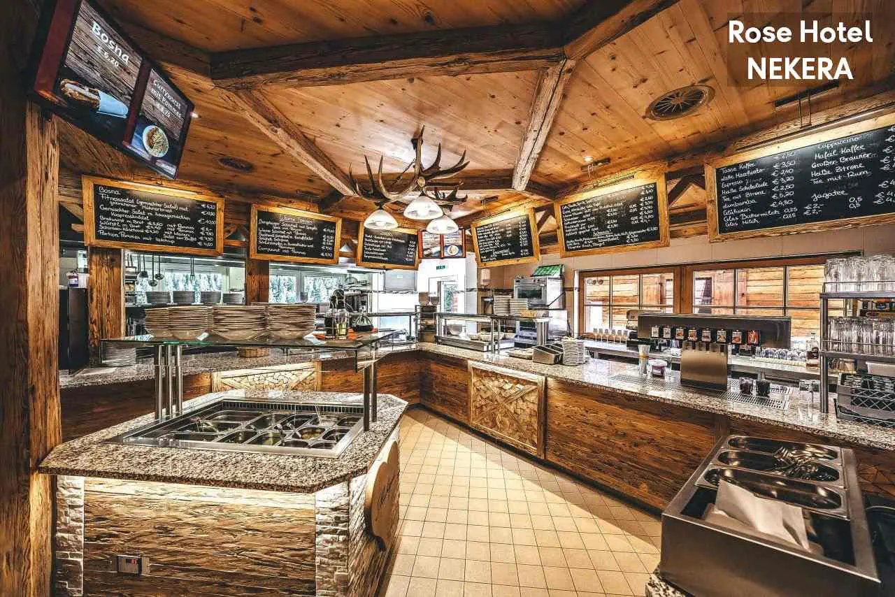 z dwoma posiłkami: śniadanie w formie bufetu, kolacja w formie 4-daniowego menu z bufetem sałatkowym. Napoje do kolacji za dodatkową opłatą. Raz w tygodniu kolacja tematyczna lub regionalna.