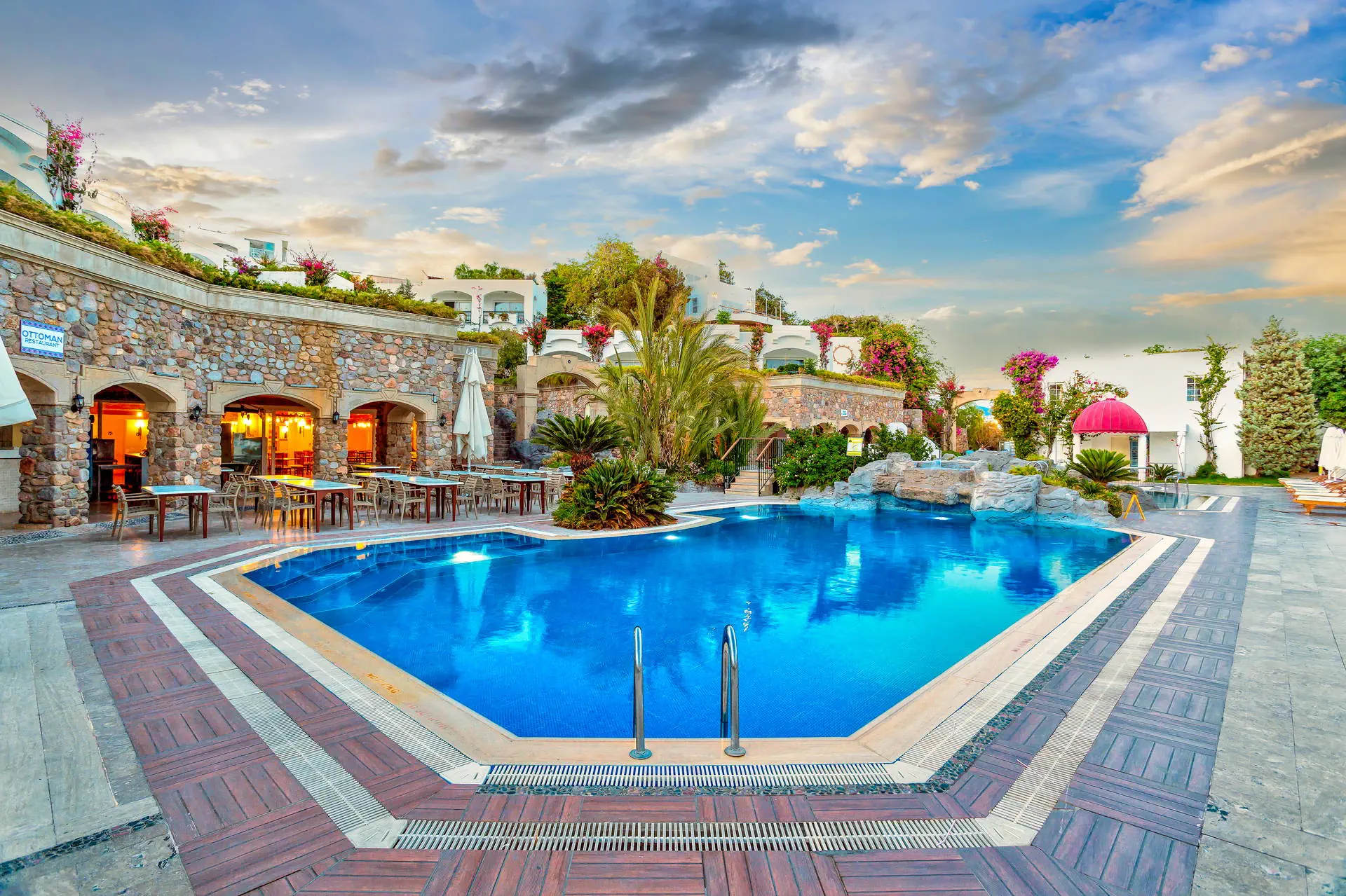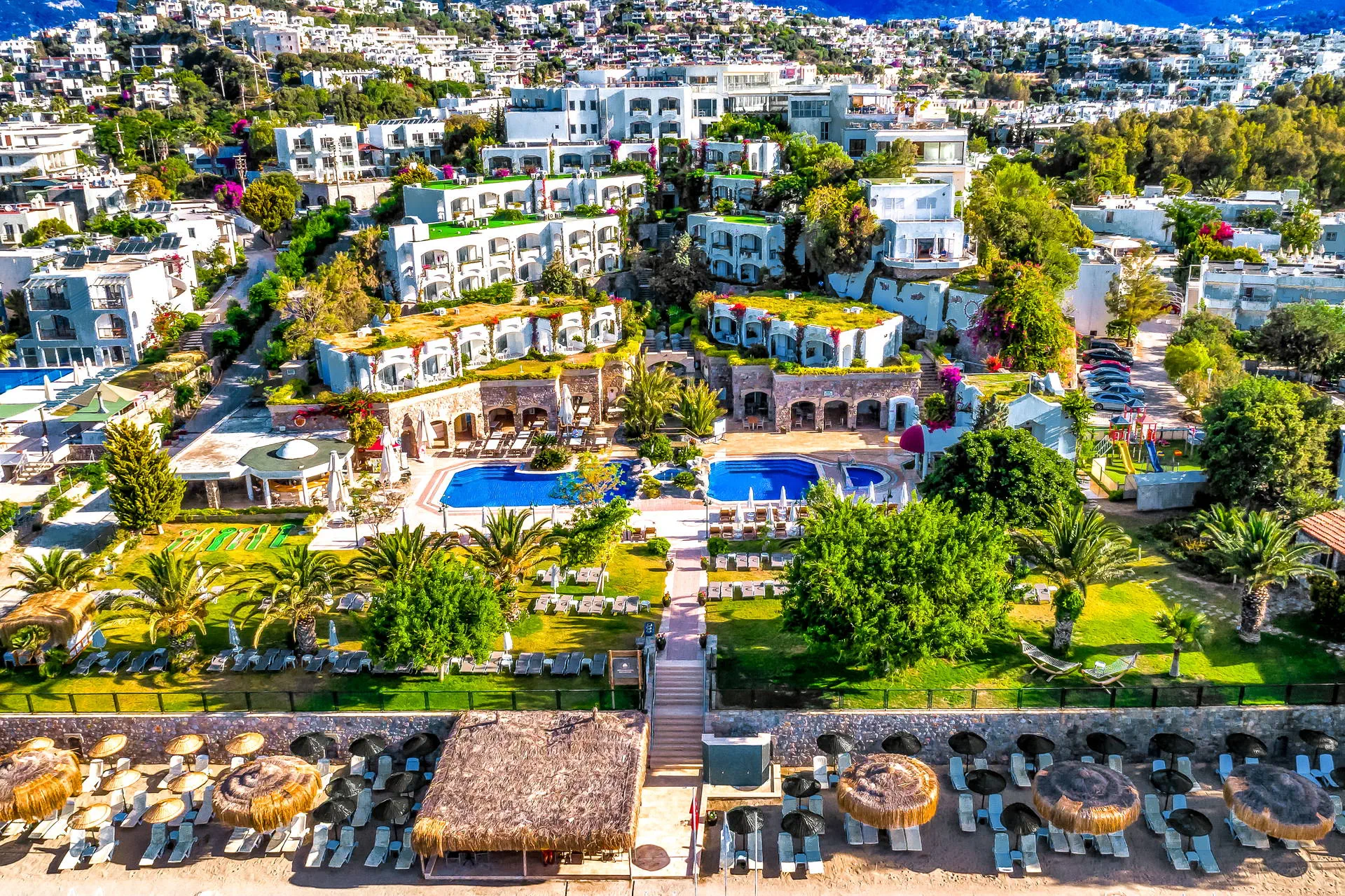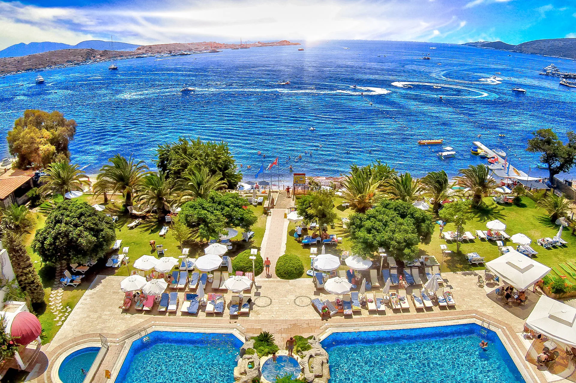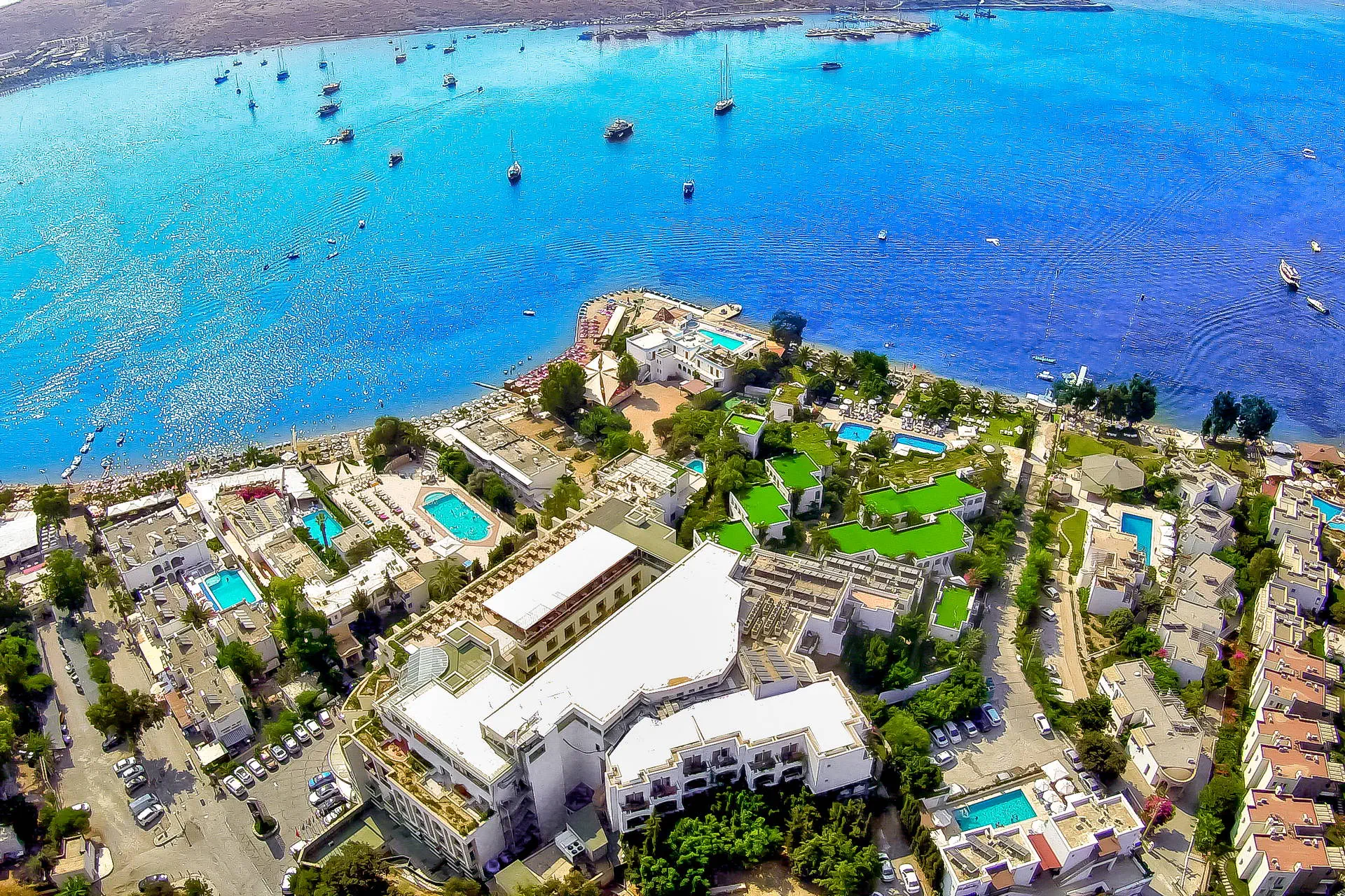 Położenie Hotel usytuowany jest na dość rozległym terenie z budynkiem głównym oraz budynkami w ogrodzie. Obiekt położony jest około 200 m od centrum rozrywkowej miejscowości Gumbet (która słynie z tętniącego życiem centrum oraz licznych dyskotek) oraz około 3 km od centrum Bodrum. W najbliższym otoczeniu znajdują się liczne bary, restauracje oraz kluby. Hotel znajduje się około 35 km od lotniska Bodrum-Milas. Plaża Plaża bezpośrednio przy hotelu. Piaszczysto-żwirowa. Bezpłatne leżaki oraz parasole. Do dyspozycji gości Recepcja oraz lobby dostępne dla Gości hotelu.Basen zewnętrzny (woda słodka), basen wewnętrzny, brodzik dla dzieci. Restauracje: restauracja główna, 3 restauracje a’la carte: chińska, rybna oraz włoska (wymagana wcześniejsza rezerwacja, czynne od około połowy maja), 6 barów, m.in. w lobby, przy basenie i na plaży. Pozostałe informacje: kantor, sklep, fryzjer, fotograf, doktor, pralnia, sala konferencyjna. Wyżywienie Rodzaje wyżywienia i posiłki: Ultra All Inclusive: Śniadanie: 07:00 - 11:00. Lunch: 12:30 - 14:00. Obiadokolacja: 19:30 - 21:30. Przekąski w ciągu dnia: 12:30 - 16:30. Kawa i ciasteczka: 11:00 - 18:00. Nocna przekąska: 24:00 - 01:00. Kanapki: 00:00 - 07:00. Bary: Panorama bar: lokalne napoje bezalkoholowe i alkoholowe oraz niektóre importowane napoje dostępne 24 h. Pozostałe informacje: Za dodatkową opłatą: pozostałe importowane napoje bezalkoholowe i alkoholowe, świeżo wyciskane soki. Program sportowy i animacyjny Dla każdego: dzienne oraz wieczorne animacje w wersji soft, gry w basenie, rzutki, tenis stołowy, siłownia, pokazy, wieczory tureckie, dyskoteka, sauna, łaźnia turecka. Dla dzieci: plac zabaw. Za dodatkową opłatą: masaże i zabiegi w centrum SPA, jacuzzi, sporty wodne na plaży. Internet Bezpłatny Internet Wi-Fi na terenie całego hotelu. Kategoria lokalna ***** Naszym zdaniem Hotel doskonale położony, od strony morza rozpościerają się piękne widoki na zatokę, a z drugiej strony (zaledwie ok. 200 m) znajduje się tętniące życiem centrum Gumbet. Wygodna formuła Ultra All Inclusive, komfortowe pokoje oraz hotelowe animacje sprawią, że będą to udane wakacje. Idealna propozycja zarówna dla par, grupy znajomych a także rodzin z dziećmi. Strona www www.royalasarlikbeach.com