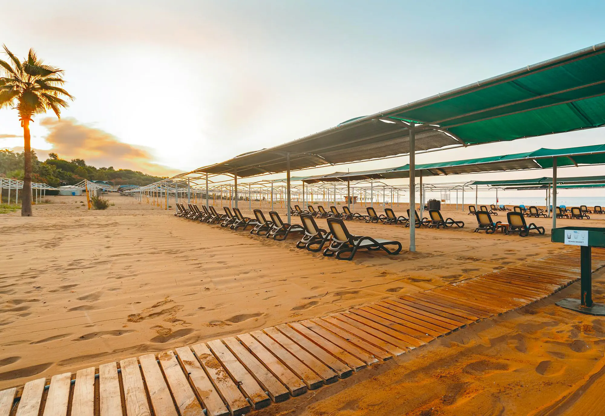 Prywatna, Piaszczysta, Piaszczyste zejście do morza, odleglość do plaży: 0 km, długość plaży: 100 m, Parasole - bezpłatnie, Leżaki - bezpłatnie, Ręczniki - bezpłatnie, Pawilony na plaży - płatne, Prysznic