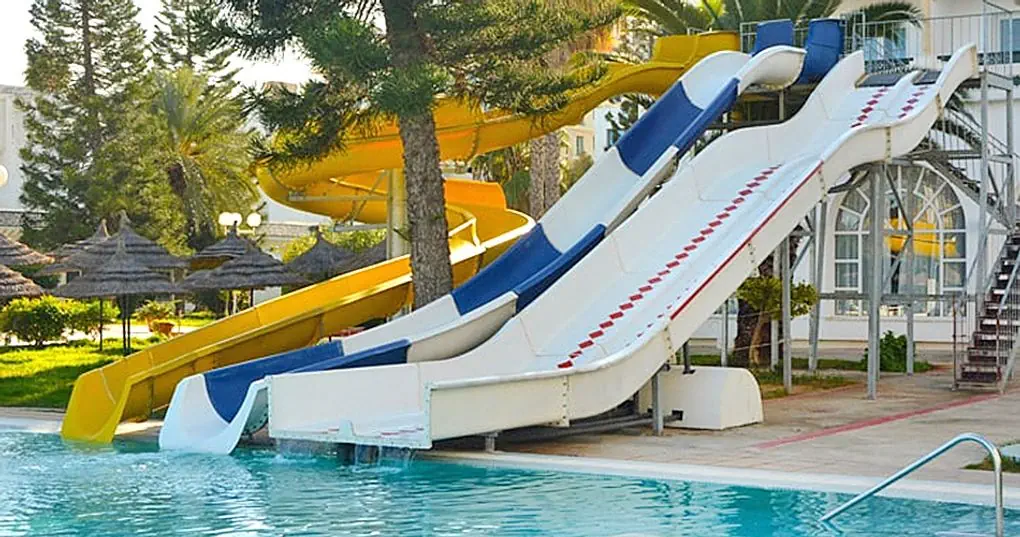 Recepcja 102 pokoje w 5-piętrowym budynku 2 windy Restauracja główna Bar przy basenie 2 baseny, w tym jeden kryty Brodzik Zjeżdżalnie Fryzjer - płatny Sala konferencyjna - płatna Oficjalna kategoria 4*