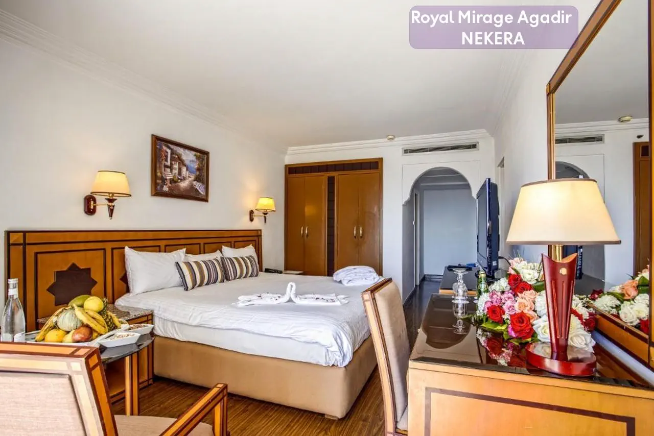 Royal Mirage Agadir to czterogwiazdkowy hotel w stylu marokańskim, z opcją All-Inclusive, idealnie położony blisko plaży i centrum miasta. Jest dobrze przystosowany dla rodzin, oferuje bogate zaplecze rekreacyjne i kulinarne, a także przyjazną obsługę. Choć wymaga pewnych modernizacji, rekomendowany jest dla gości szukających komfortu, relaksu i lokalnej atmosfery.