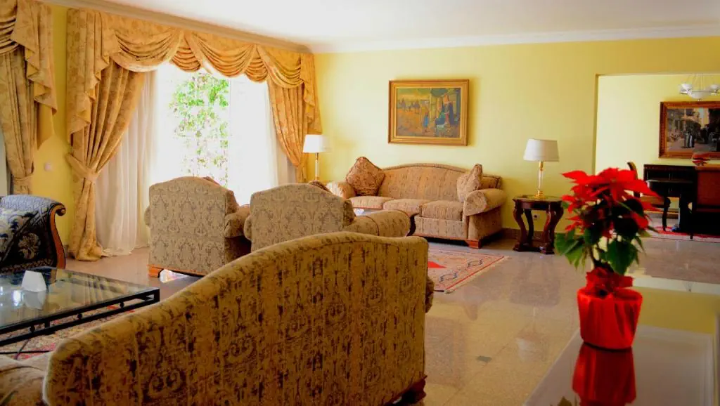 Dla max. 6 osób, Przestrzeń zewnętrzna: Balkon lub taras, Kanały telewizji: Angielski, Telefon w pokoju, wanna i prysznic , Powierzchnia pokoju: ok. 100 m2, Dostawka: łóżko rozkładane, Rodzaj podłogi: płytki, Sprzątanie codziennie, 2 sypialnie, Drzwi łączące między pokojami, Maksymalna liczba osób dorosłych: 4, Maksymalna liczba dzieci: 2, Widok na ogród, Liczba łazienek: 2, Liczba toalet: 2, Zestaw do parzenia kawy i herbaty, Klimatyzacja: Klimatyzacja indywidualna