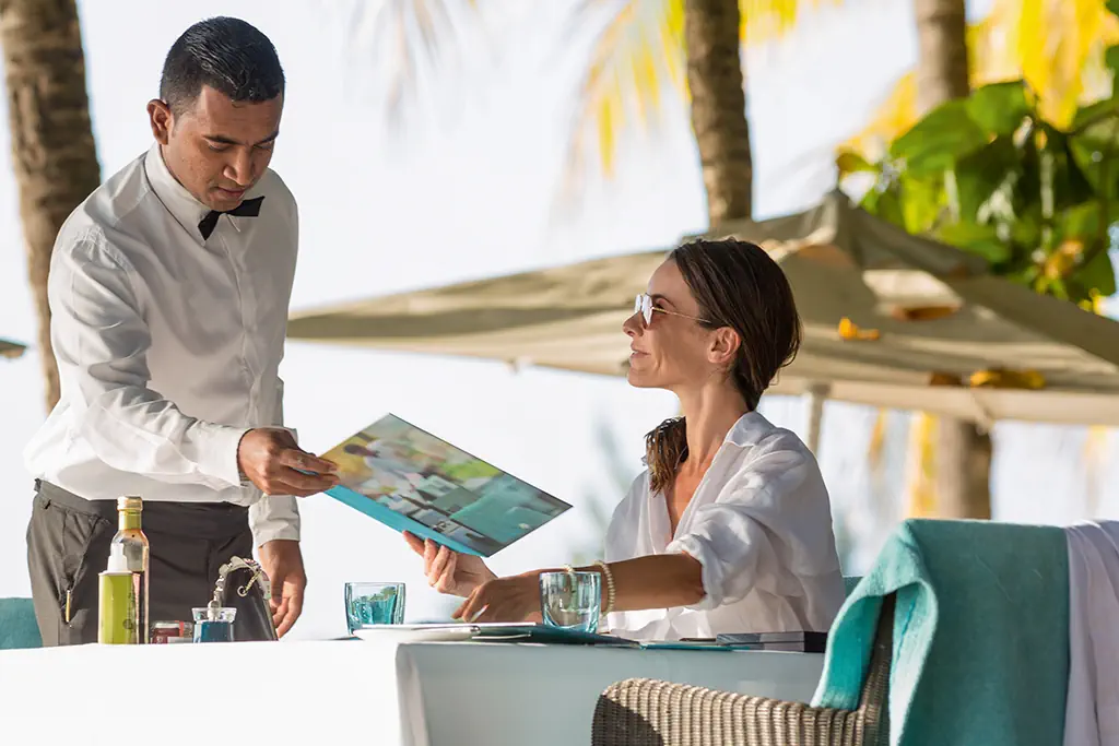 Śniadanie (07:30 - 10:30) - LA GOELETTE, stół szwedzki, Obiad (12:30 - 17:00) - LE BAR PLAGE, a la carte ¹⁾, Kolacja (19:30 - 22:30) - LA GOELETTE, a la carte ¹⁾, Kolacja (19:30 - 22:30) - LE BAR PLAGE, a la carte ¹⁾, LA GOELETTE (07:30 - 22:30) (07:30 - 22:30), bez limitu, Kuchnia: międzynarodowa, Wymagana rezerwacja: Nie, LE BAR PLAGE (12:30 - 17:00) (12:30 - 17:00), bez limitu, Kuchnia: lokalna, międzynarodowa, Wymagana rezerwacja: Tak ¹⁾, LA BREZZA (19:30 - 22:30) (19:30 - 22:30), bez limitu, Kuchnia: Włoska, Wymagana rezerwacja: Nie ¹⁾, napoje bezalkoholowe ¹⁾, alkohole lokalne ¹⁾, wybrane alkohole importowane ¹⁾, pakiety dla nowożeńców, pakiety urodzinowe (na życzenie), room service ¹⁾, Minibar w pokoju ¹⁾ - dodatkowo płatne