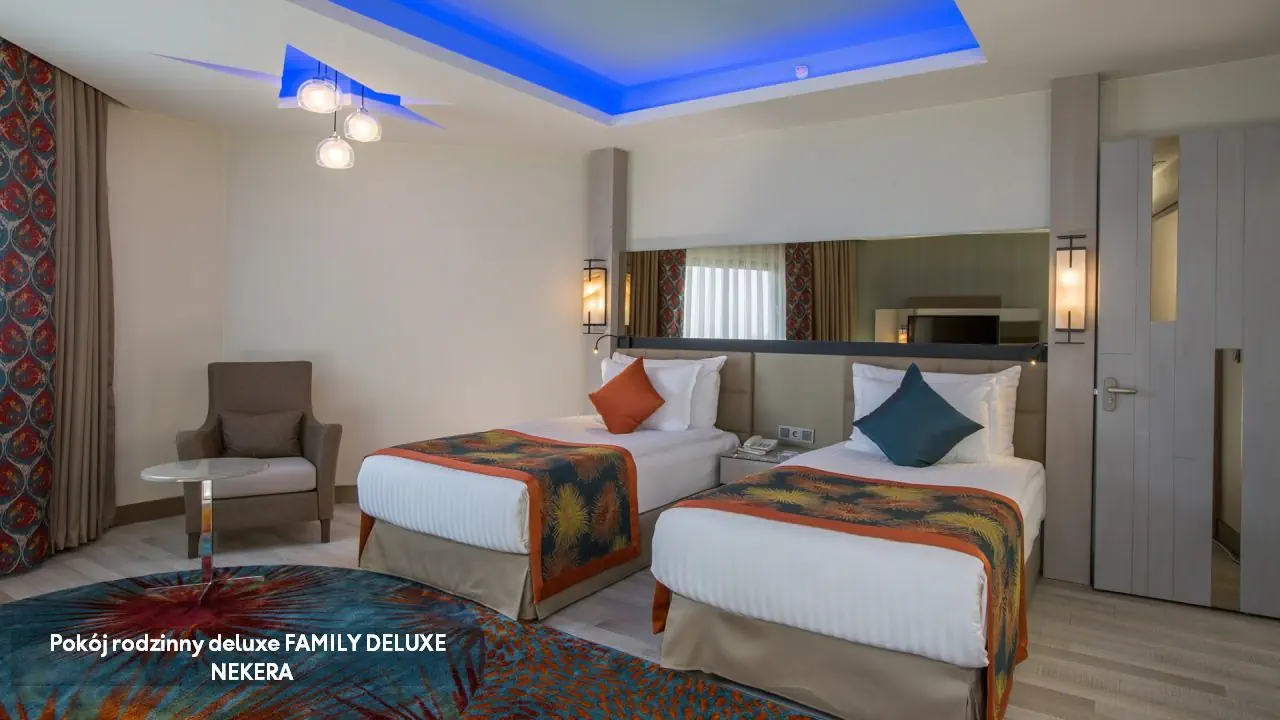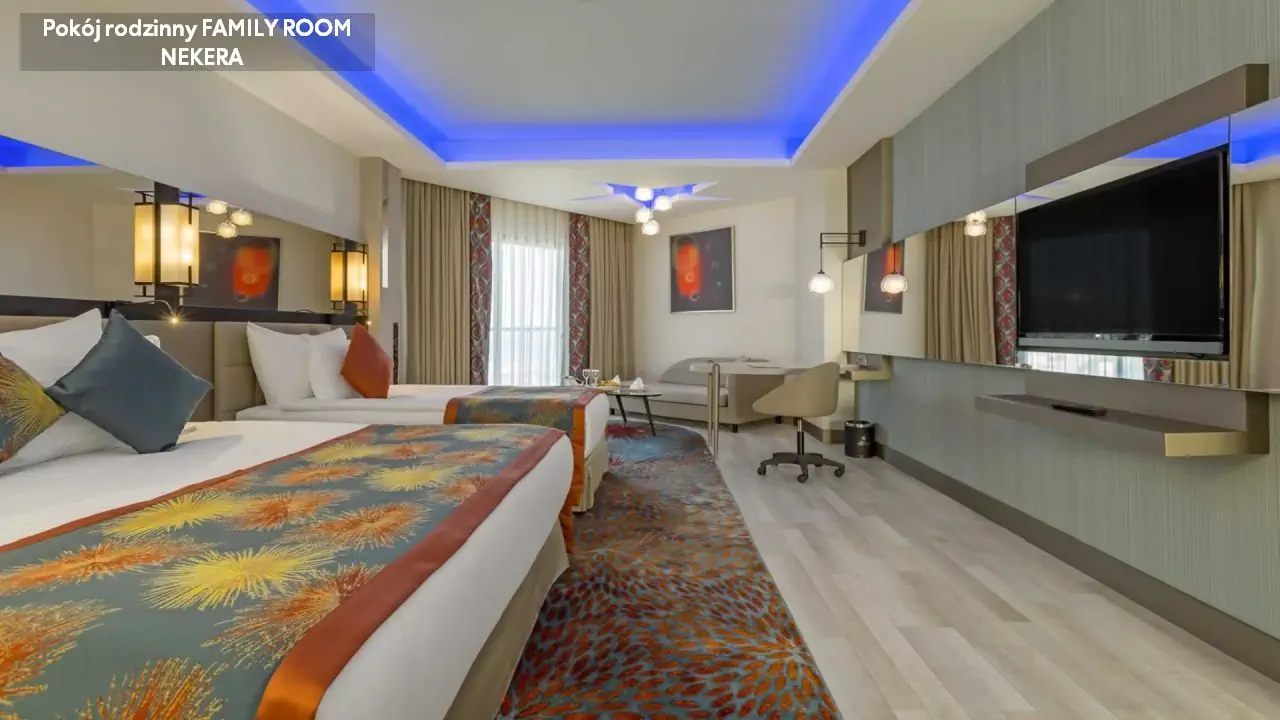 Nowoczesny i przestronny obiekt typu Ultra All Inclusive, położony blisko plaży, z bogatą infrastrukturą, aquaparkiem i lunaparkiem. Idealny dla rodzin, par i osób szukających luksusowego wypoczynku w rejonie Lara. Położenie - Lara, ok. 17 km od centrum Antalyi - ok. 15 km od lotniska w Antalyi Plaża - prywatna, piaszczysto-żwirowa - ok. 250 m od hotelu (dojście pieszo)