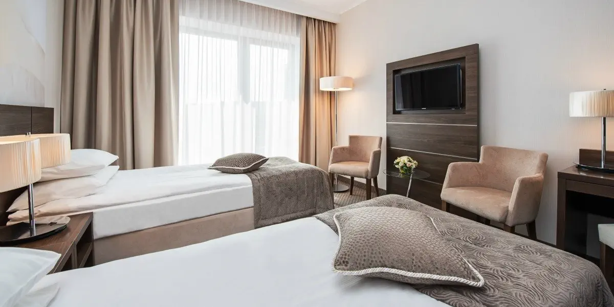 - Codzienne śniadania - Nielimitowane korzystanie ze Strefy Relaksu z basenem, saunami, jacuzzi (zgodnie z dostępnością; UWAGA: każdego dnia basen jest zarezerwowany przez 3 godziny na wyłączność dla Szkoły Pływania dla Najmłodszych) - W terminie 17.11.2025-23.11.2025: basen, sauny oraz jacuzzi będą nieczynne (przerwa technologiczna) - Internet Wi-Fi - Podatek VAT