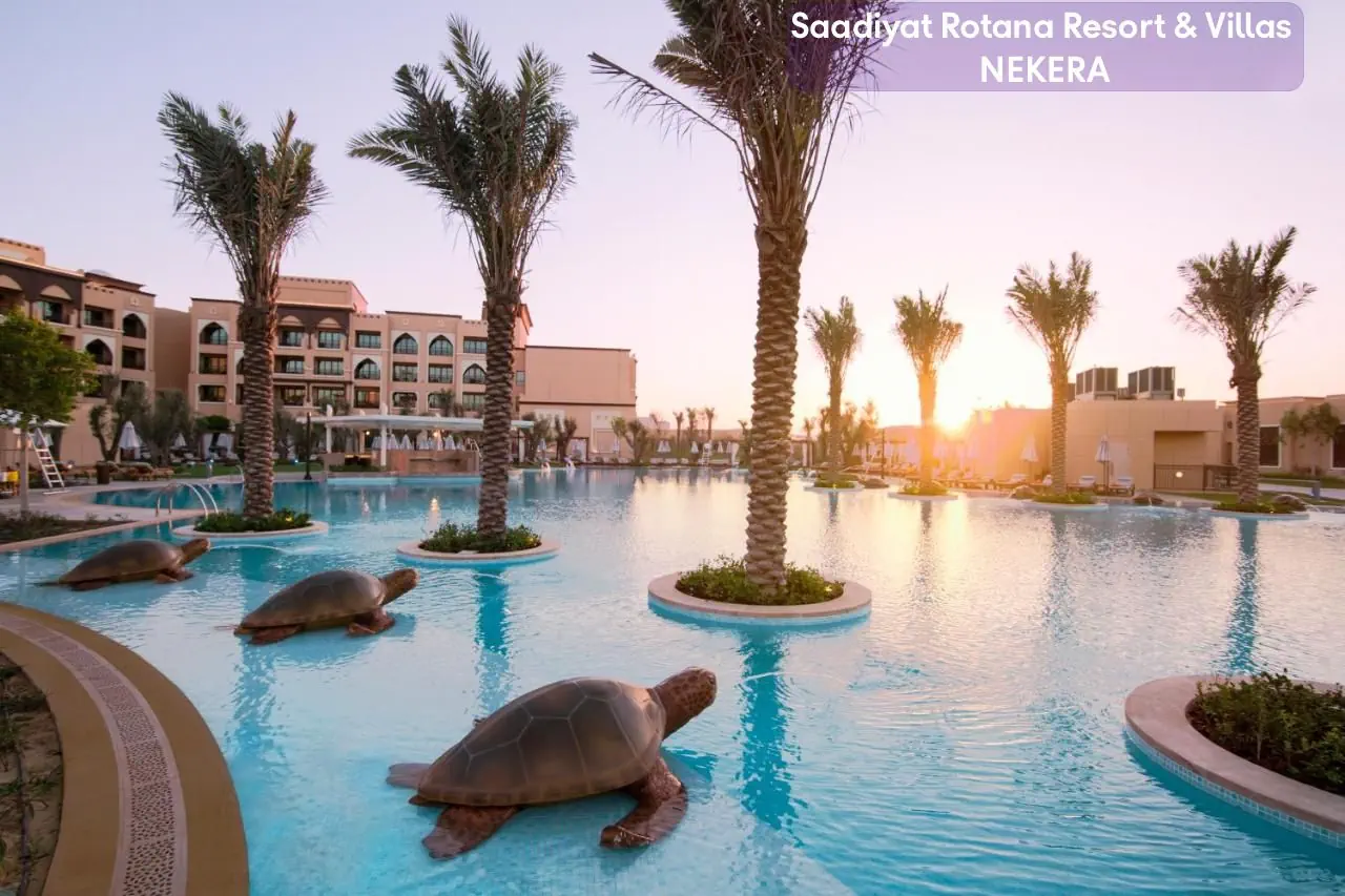 Luksusowy pięciogwiazdkowy resort położony na wyspie Saadiyat w Abu Zabi, idealny dla osób szukających wyjątkowego wypoczynku. Położony przy prywatnej, oferuje elegancko urządzone pokoje i apartamenty. Na terenie hotelu znajdują się restauracje serwujące dania kuchni międzynarodowej, luksusowe spa, basen w kształcie laguny oraz liczne udogodnienia dla rodzin, w tym klub dla dzieci i młodzieży. Saadiyat Rotana to doskonały wybór zarówno na romantyczne wakacje, jak i rodzinny wypoczynek w egzotycznym otoczeniu.