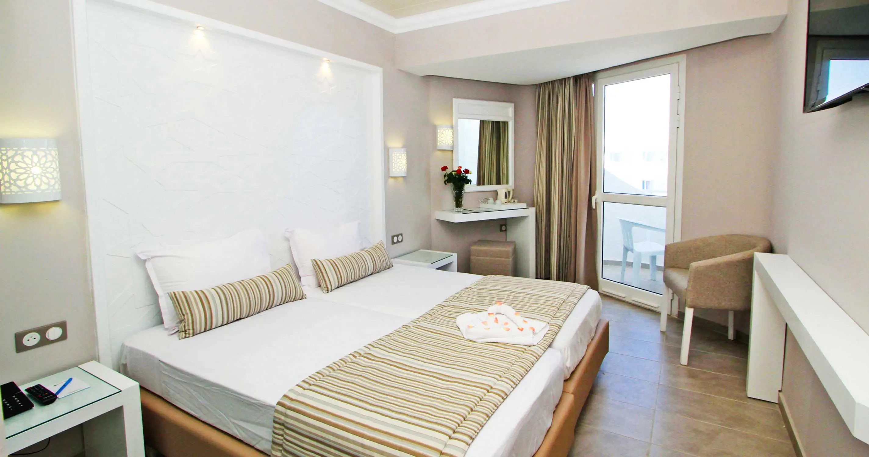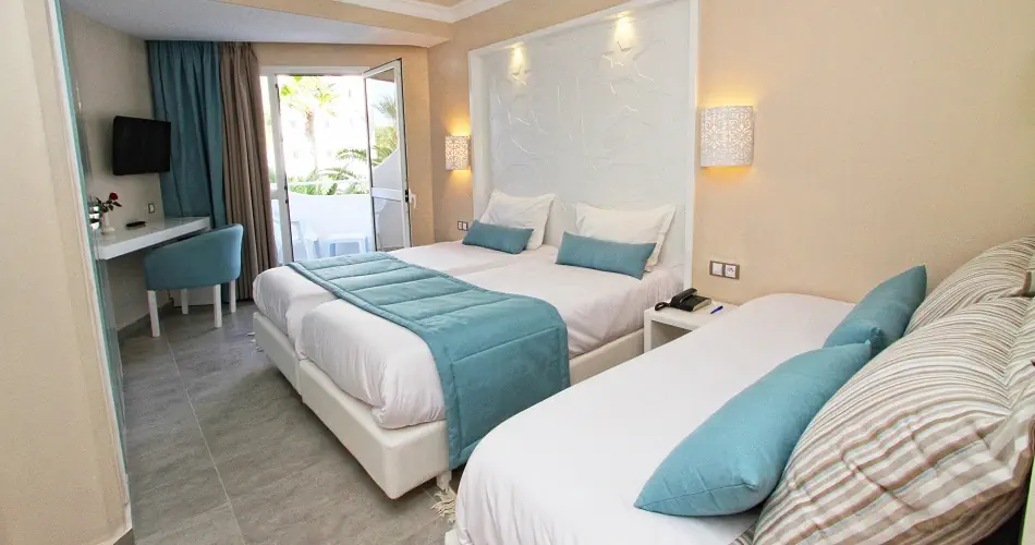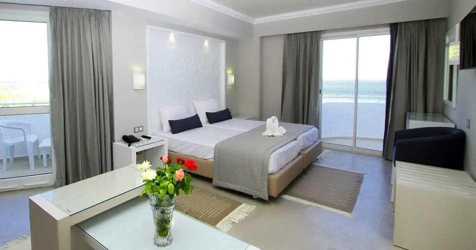 Pokój Standard Side Sea View: - Klimatyzacja (15.06 - 15.09) - Łazienka z prysznicem lub wanną, suszarka do włosów, toaleta - TV- Sat, Telefon - Sejf - płatny - Minilodówka - bezpłatna - Balkon lub taras - Łóżeczko dla niemowlaka na zapytanie - bezpłatne Pokój Connecting Side Sea View: - 2 pomieszczenia połączone drzwiami - Częściowy widok na morze Pokój Promo: - Wyposażenie jak w pokoju standard - Maksymalne obłożenie do 2 paxów