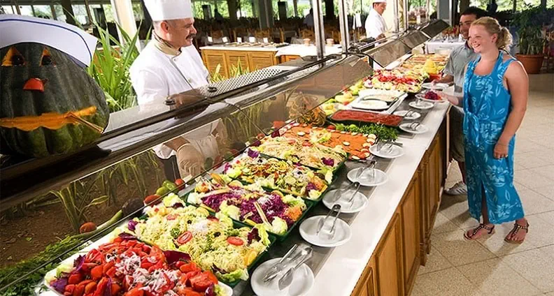 All Inclusive: - Śniadanie, obiad i kolacja w formie bufetu - Przekąski w barach - Napoje bezalkoholowe i alkohole lokalnej produkcji 10:00-24:00 w barach wskazanych przez hotel w godzinach ich otwarcia - Alkohole importowane dodatkowo płatne