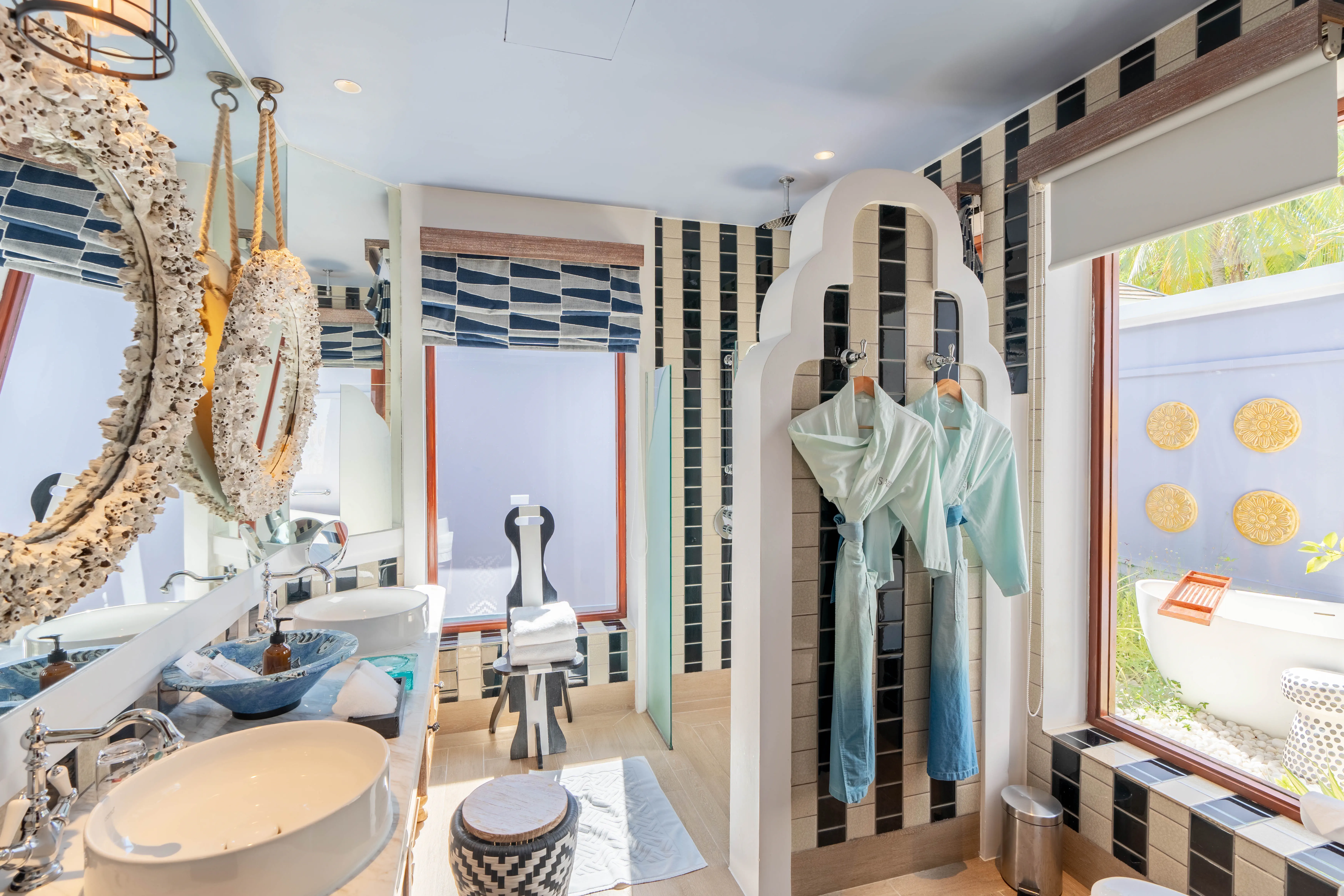 Dla max. 4 osób, Przestrzeń zewnętrzna: Balkon, Telefon w pokoju, wanna, prysznic, wanna i prysznic , Powierzchnia pokoju: ok. 60 m2, Rodzaj podłogi: płytki, Sprzątanie codziennie, część jadalniana, 1 sypialnia, Drzwi łączące między pokojami, Przepierzenie, Maksymalna liczba osób dorosłych: 3, Maksymalna liczba dzieci: 3, Prysznic na świeżym powietrzu, Frontalny widok na plażę, Bezpośredni dostęp do plaży, Prywatny basen, Liczba łazienek: 1, Liczba toalet: 1, Zestaw do parzenia kawy i herbaty, Klimatyzacja: Klimatyzacja indywidualna