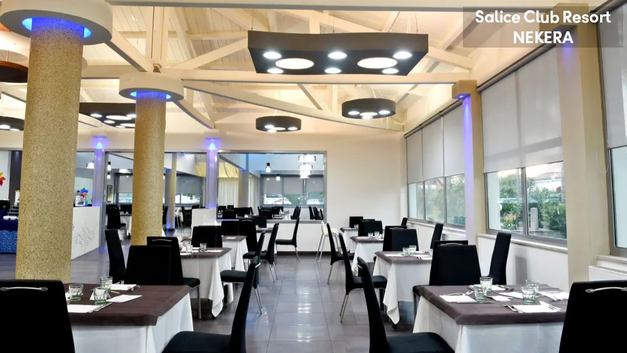 Śniadania lub Soft All Inclusive – śniadanie, obiad i kolacja w formie bufetu w restauracji oraz wybrane napoje bezalkoholowe i lokalne napoje alkoholowe (wino oraz piwo) do posiłków; słodkie przekąski w wyznaczonych godzinach. Restauracja, pizzeria oraz 2 bary – wszystkie napoje i zamówienia poza wykupioną formułą są dodatkowo płatne.