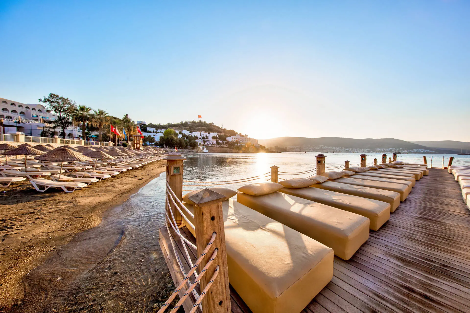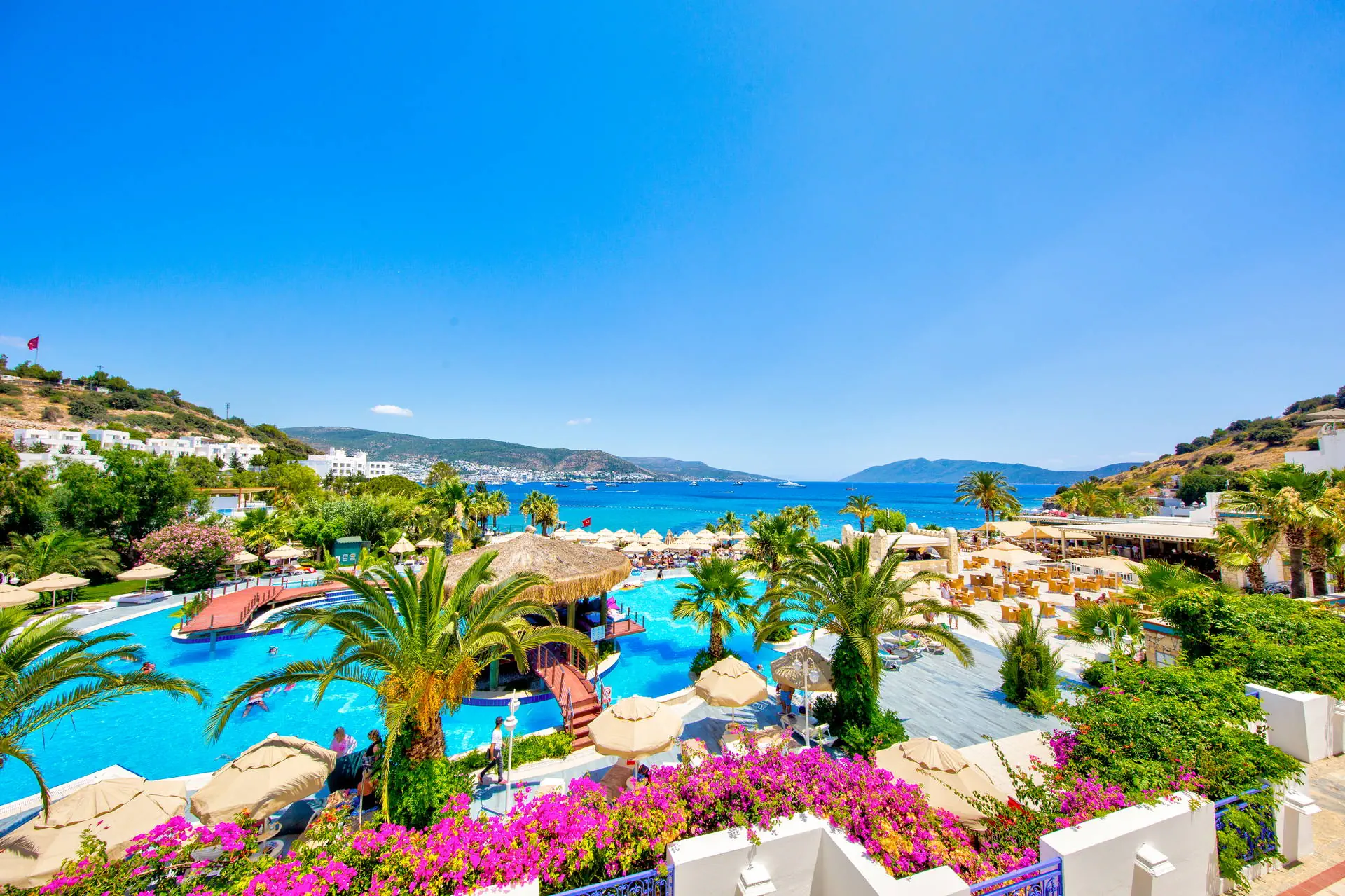 Położenie Hotel oferuje cudowny widok na zatokę, port oraz na zamek św. Piotra. Obiekt znajduje się zaledwie około 1 km od centrum turystycznej miejscowości Bodrum, gdzie można znaleźć liczne atrakcje, takie jak butiki, sklepy, bary oraz restauracje. Hotel położony jest około 35 km od lotniska Bodrum-Milas. Plaża Plaża bezpośrednio przy hotelu. Piaszczysto-żwirowa. Bezpłatne leżaki (również na pomoście), parasole oraz ręczniki. Odznaczona Błękitną Flagą. Pomost dostępny na plaży. Do dyspozycji gości Recepcja, przestronne lobby. 1 basen główny, 1 basen wewnętrzny, 1 brodzik dla dzieci. Restauracje: restauracja główna, restauracja rybna a’la carte (bezpłatna raz na pobyt, wymagana rezerwacja), bar przy restauracji (12:30-14:30), lobby bar (24h), bar przy basenie (10:00-24:00), bar na plaży (10:00-18:00). Pozostałe informacje: mini market, fryzjer, fotograf, sala konferencyjna, lekarz na zapytanie (wszystkie usługi płatne). Wyżywienie Rodzaje wyżywienia i posiłki: Ultra All Inclusive: Śniadanie: 07:00 - 11:00. Lunch: 12:30 - 14:30. Obiadokolacja: 19:00 - 21:30. Lody: 12:30 - 18:00 i 19:00 - 21:30. Naleśniki Gozleme: 11:00 - 16:00. Przekąski w ciągu dnia: 12:30 - 17:00. Przerwa kawowa ze słodką przekąską: 17:00 - 18:00. Nocne przekąski: 24:00 - 07:00. Bary: Lobby bar: lokalne napoje alkoholowe i bezalkoholowe oraz niektóre importowane napoje dostępne 24 h. Mogą obowiązywać dodatkowe opłaty za pozostałe importowane napoje bezalkoholowe i alkoholowe, napoje butelkowane i soki ze świeżych owoców. Program sportowy i animacyjny Dla każdego: wieczorny program animacyjny, gry w basenie, bilard, rzutki, aqua aerobik, tenis stołowy, kort tenisowy, siłownia, muzyka na żywo, wieczorne show. Dla dzieci: mini klub w wieku 4-12 lat, plac zabaw. Dla dorosłych: Centrum SPA: łaźnia turecka, sauna. Za dodatkową opłatą: squash, masaże i zabiegi w centrum SPA. Internet Bezpłatny Internet Wi-Fi na terenie całego hotelu. Kategoria lokalna ***** Naszym zdaniem Ten wysokiej klasy hotel dopełni oczekiwania nawet najbardziej wymagającym Gościom. Doskonałe położenie, piękne wręcz malownicze widoki a także wyśmienita kuchnia stanowią główne atuty tego hotelu. Polecamy parom i grupom znajomych ze względu na bliskość rozrywkowego Bodrum, a także rodzinom z dziećmi ze względu na komfortowe pokoje rodzinne a także pełen wachlarz hotelowych atrakcji. Strona www www.salmakishotel.com