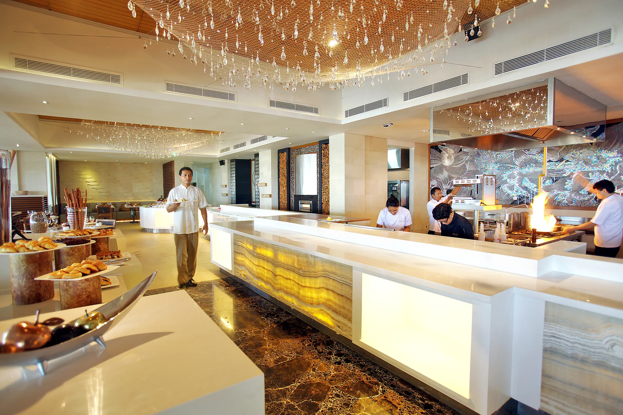 Śniadanie (06:00 - 11:00) - REMPAH REMPAH MAIN DINING ROOM, stół szwedzki, Obiad (11:00 - 14:00) - REMPAH REMPAH MAIN DINING ROOM, a la carte, Obiad (11:00 - 14:00) - CRYSTAL BLUE OCEAN GRILL, a la carte, Kolacja (18:00 - 23:00) - REMPAH REMPAH MAIN DINING ROOM, a la carte, Kolacja (18:00 - 23:00) - CRYSTAL BLUE OCEAN GRILL, a la carte, Późna kolacja (06:00 - 23:00) - ROOM SERVICE, a la carte, REMPAH REMPAH MAIN DINING ROOM (06:00 - 23:00) (06:00 - 23:00), bez limitu, Kuchnia: Chińska, Tajska, Japońska, lokalna, międzynarodowa, Wymagana rezerwacja: Nie, CRYSTAL BLUE OCEAN GRILL (11:00 - 23:00) (11:00 - 23:00), bez limitu, Kuchnia: śródziemnomorska, Wymagana rezerwacja: Tak, napoje bezalkoholowe, alkohole lokalne, wybrane alkohole importowane, lody ¹⁾, pakiety dla nowożeńców ¹⁾, pakiety urodzinowe (na życzenie) ¹⁾, cukiernia, room service, Minibar w pokoju ¹⁾ - dodatkowo płatne