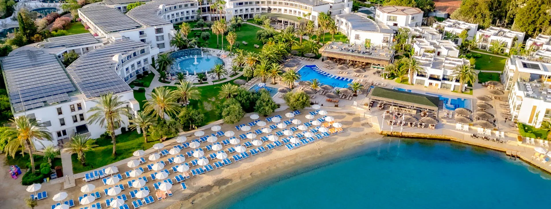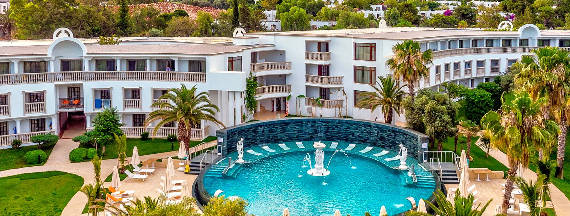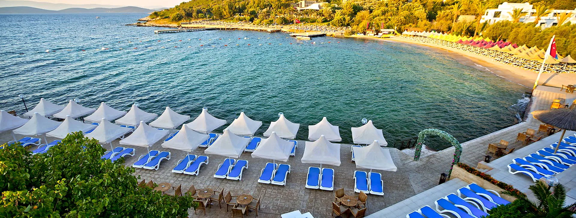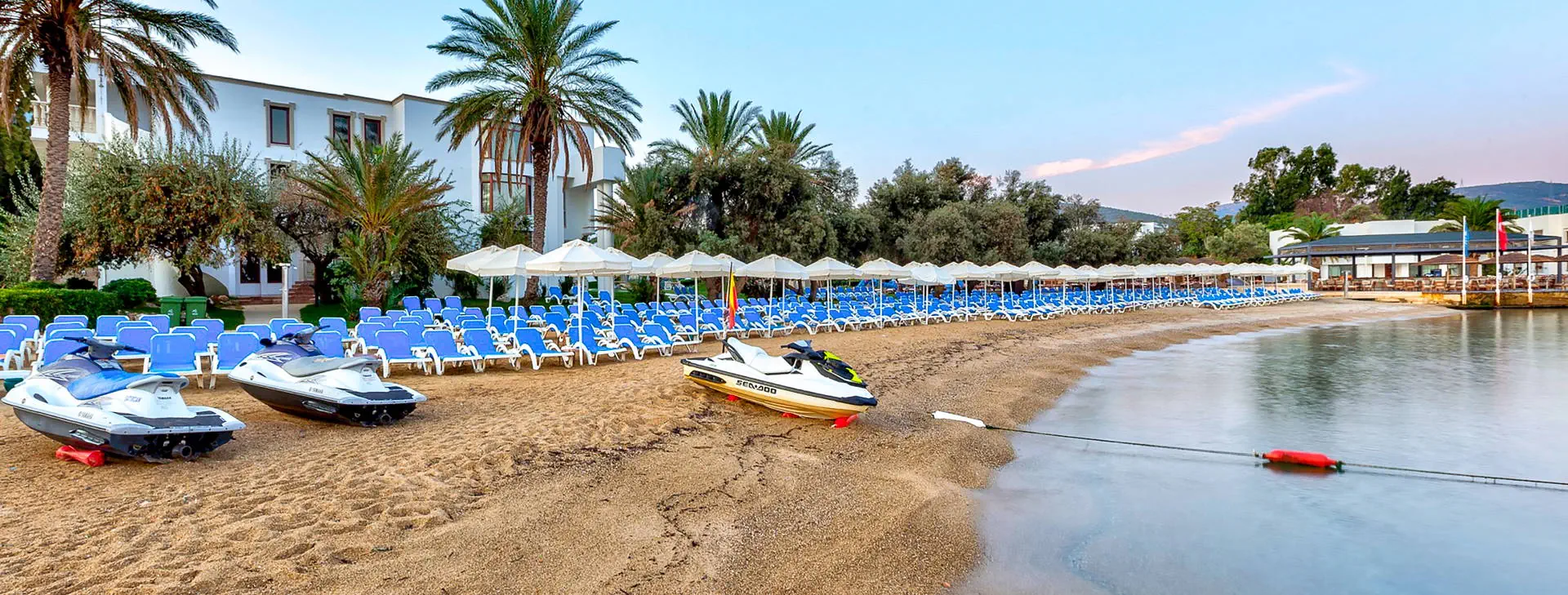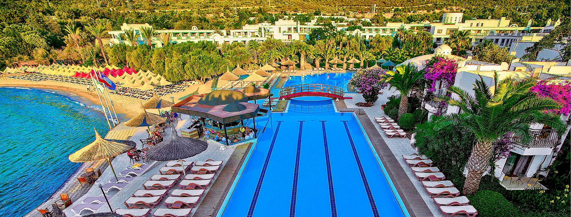 Położenie: Hotel położony ok. 5 km od miejscowości Torba, z niewielkim wyborem sklepów, restauracji i barów, ok. 8 km od centrum Bodrum. Hotel usytuowany jest na terenie ok. 7 ha, w pięknym, obszernym ogrodzie. Przystanek lokalnego busa ok. 100 m od hotelu. Do lotniska w Bodrum ok. 27 km. Plaża: Tuż przy piaszczystej, prywatnej plaży. Ręczniki plażowe, leżaki i parasole bezpłatne. Do dyspozycji gości: Recepcja, kantor, lobby, sala telewizyjna, restauracja główna, restauracja a’la carte, 6 barów oraz dyskoteka. 1 duży basen i basen dla dzieci z małą zjeżdżalnią, jacuzzi. Leżaki, parasole oraz ręczniki kąpielowe przy basenie bezpłatne. Za opłatą: mini market, fryzjer, room service, sala gier, usługi opiekunki dla dzieci. Hotel przystosowany dla osób niepełnosprawnych. Wyżywienie: Ultra All Inclusive: śniadanie, późne śniadanie kontynentalne, lunch i obiadokolacja w formie urozmaiconego bufetu. Przekąski w ciągu dnia (sałatki, pizza, hamburgery, frytki, spaghetti), kawa, herbata, ciastka, naleśniki gozleme, nocna przekąska. Raz na pobyt możliwość skorzystania z restauracji a’la carte (dania kuchni tureckiej i owoce morza, wymagana rezerwacja, otwarta od 15 maja do 15 października, obowiązuje strój wieczorowy). Lokalne napoje bezalkoholowe i alkoholowe: wino, piwo, drinki dostępne 24h w wyznaczonych barach oraz kawa po turecku i lody. Za opłatą: importowane napoje bezalkoholowe i alkoholowe. Program sportowy i animacyjny: Dzienne i wieczorne animacje, zajęcia sportowe, wieczory przy muzyce na żywo, tematyczne show. Ponadto: 2 korty tenisowe, koszykówka, siatkówka, kajaki, rowery wodne, windsurfing (wymagana licencja), mini golf, mini football, boccia, bilard, tenis stołowy, siłownia, sauna, łaźnia turecka i jacuzzi. Za opłatą: masaże i zabiegi w SPA, sporty motorowodne przy plaży, szkoła nurkowania, wypożyczenie sprzętu do tenisa. Dla dzieci: plac zabaw, mini klub (4-12 lat). Internet: Bezpłatny Internet Wi-Fi na terenie całego hotelu. Kategoria lokalna: ***** Strona www: