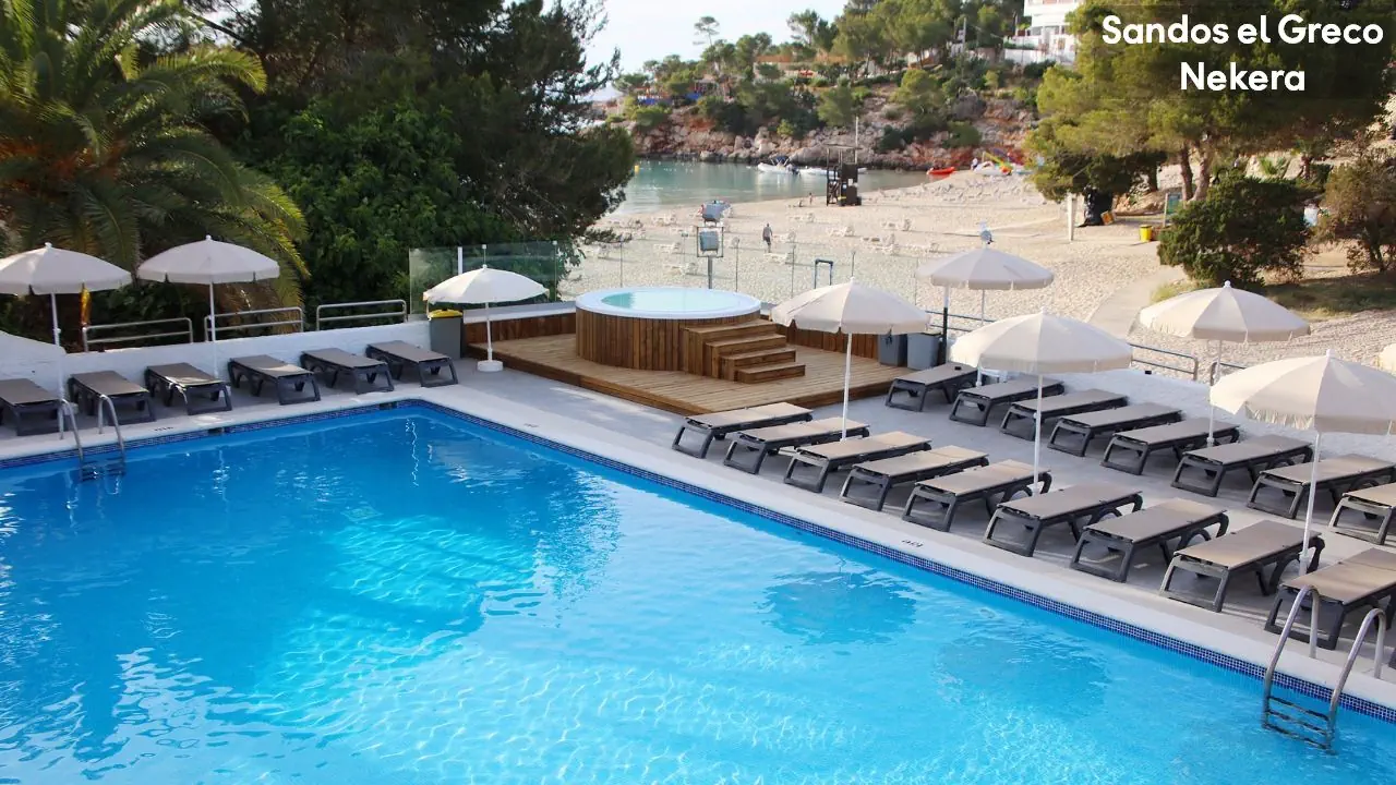 Sandos El Greco to elegancki, czterogwiazdkowy hotel przeznaczony wyłącznie dla dorosłych, położony tuż przy malowniczej, piaszczystej plaży Cala Portinatx na północnym wybrzeżu Ibizy. Otoczony naturalnymi klifami i krystalicznie czystą wodą, tworzy idealne warunki do spokojnego wypoczynku z dala od zgiełku popularnych kurortów. Hotel zachwyca nowoczesnym designem, jasnymi wnętrzami i atmosferą sprzyjającą relaksowi. Goście mogą korzystać z przestronnego basenu z widokiem na morze, jacuzzi oraz strefy wellness, która pozwala odetchnąć po dniu pełnym słońca.