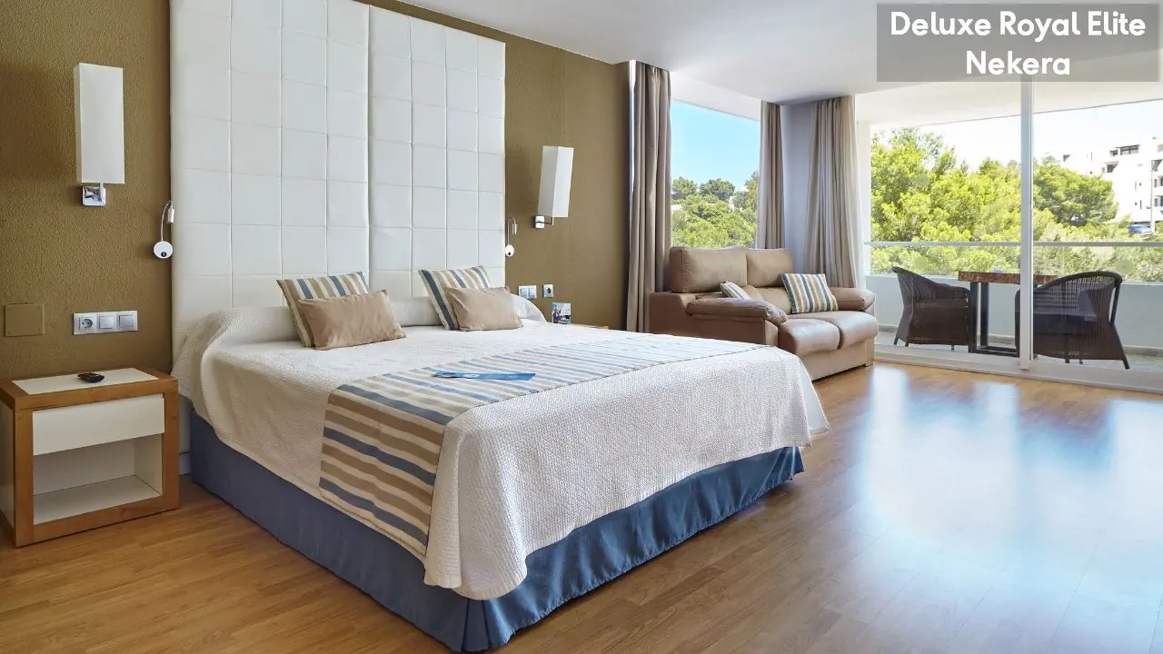 Pokój Dwuosobowy - maksymalnie 2 dorosłych - łóżko podwójne lub dwa pojedyncze - łazienka z prysznicem - suszarka do włosów - balkon z krzesłami i stolikiem - telewizja satelitarna - zestaw do parzenia kawy i herbaty - minibar (za opłatą) - sejf (za opłatą) Royal Elite Ocean - maksymalnie 2 dorosłych - łóżko podwójne lub dwa pojedyncze - łazienka z prysznicem - suszarka do włosów - taras lub balkon z krzesłami i stolikiem - telewizja satelitarna - szlafrok i kapcie - zestaw do parzenia kawy i herbaty - minibar (za opłatą) - sejf (za opłatą) Royal Deluxe Elite - maksymalnie 2 dorosłych - łóżko podwójne lub dwa pojedyncze - łazienka z prysznicem - wanna z hydromasażem - suszarka do włosów - taras z krzesłami i stolikiem - telewizja satelitarna - rozkładana sofa - szlafrok i kapcie - zestaw do parzenia kawy i herbaty - minibar (za opłatą) - sejf (za opłatą)