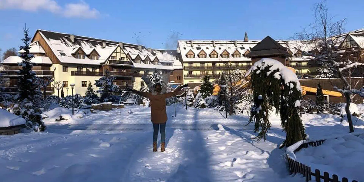 - Codzienne śniadanie w formie bufetu - Codzienna obiadokolacja w formie bufetu - Dla pobytów w dniach 29.12.2025-01.01.2026 29.12 ognisko z pieczeniem kiełbasek. 30.12 i w Nowy Rok 01.01 przedsylwestrowe i noworoczne biesiadowanie od godz. 13.30 do godz. 20.00, nielimitowane wejście do jadalni i korzystanie z bufetów i alkohol bez ograniczeń. Program animacyjny dla dzieci. 31.12.2025 BAL Z ORKIESTRĄ dla dorosłych. Dla dzieci powyżej 3 roku życia - Kinder Bal z animatorami. - Dostęp do kompleksu basenowego z basenami i zjeżdżalniami (w godzinach otwarcia) - Korzystanie z sauny Ruska Bania (zgodnie z dostępnością) - Możliwość korzystania z siłowni (zgodnie z dostępnością) - Atrakcje dla dzieci: sala zabaw, kryty wodny plac zabaw Wodna Dżungla, zjeżdżalnie, zewnętrzny plac zabaw, brodzik - Animacje dla dzieci we wtorki, czwartki i soboty w okresie wakacji oraz ferii zimowych (poza sezonem w soboty) - Podatek VAT - Internet Wi-Fi