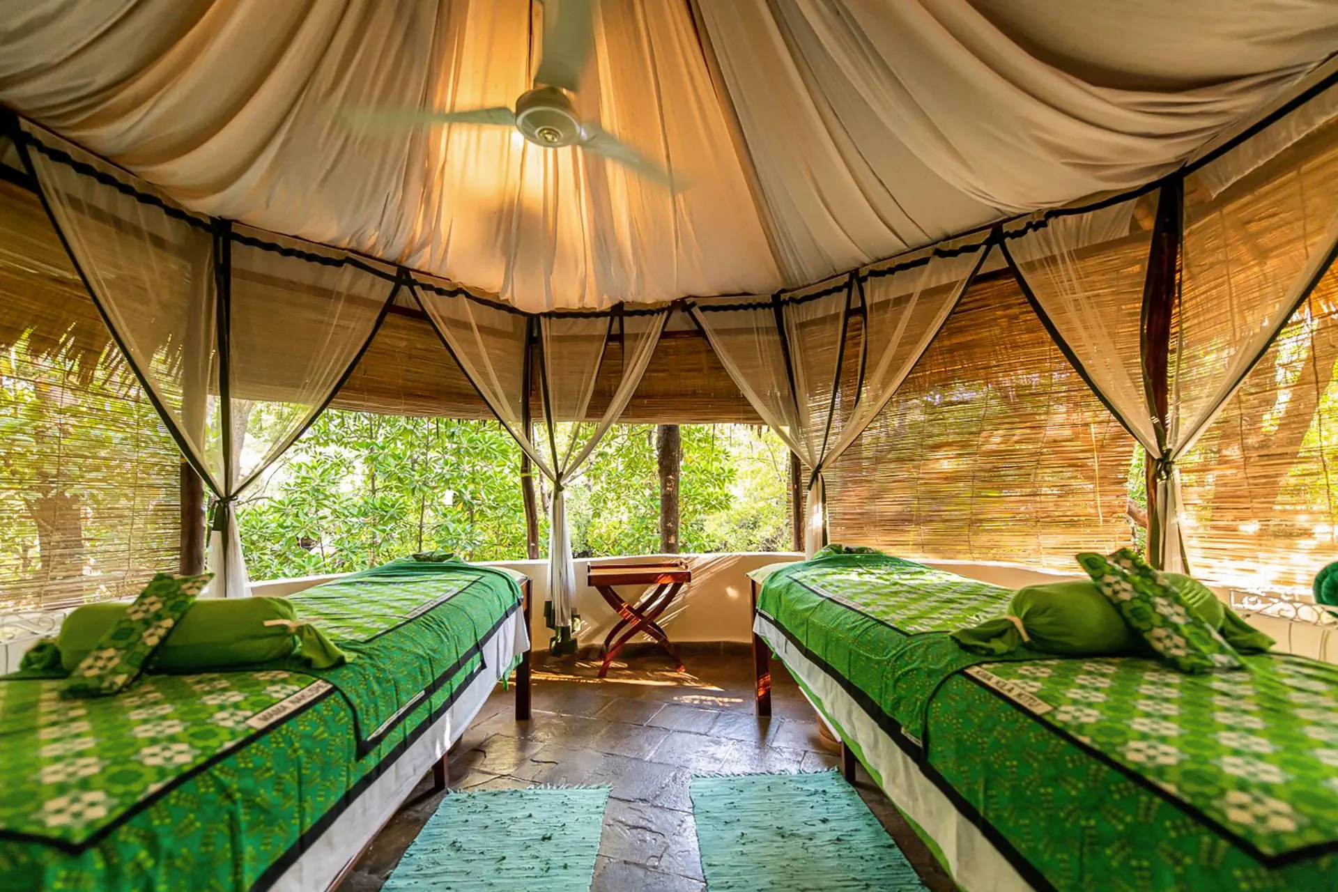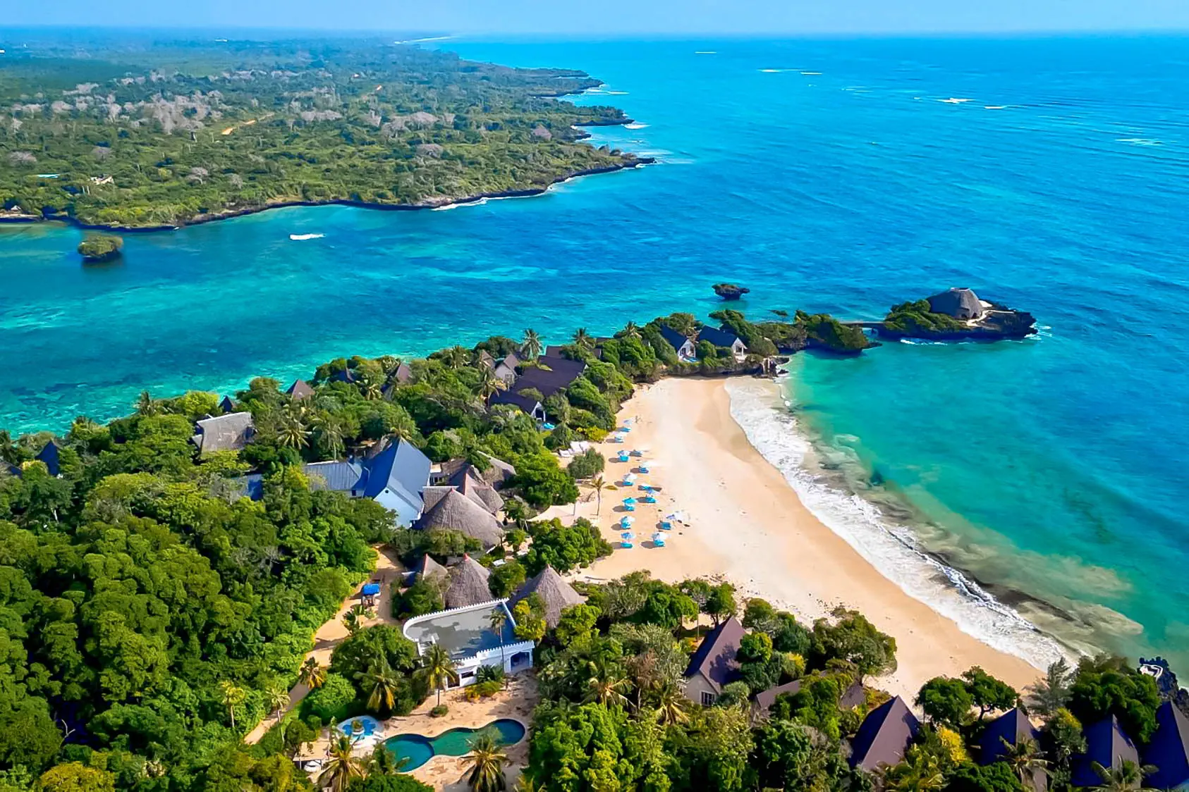 Do dyspozycji gości Recepcja 24h/7, przestronne lobby. 3 baseny (jeden ze słodką wodą połączony z jacuzzi, drugi ze słoną wodą przy centrum SPA, trzeci z leżakami położony przy domkach z pokojami). Restauracje: restauracja główna przy plaży, restauracja a’la carte Katika Ziwa (dodatkowo płatna, serwująca owoce morza), 2 bary: główny przy recepcji (09:00-24:00), Galana przy basenie (09:00-18:00) i kafeteria (kawa i herbata w godzinach 16:30-17:30).Pozostałe informacje: sklepy z pamiątkami i biżuterią. Internet Bezpłatny Internet Wi-Fi w częściach wspólnych oraz w pokojach. Kategoria lokalna **** Naszym zdaniem Bajkowy hotel położony na wyspie. Bardzo elegancki, o wysokim standardzie usług, łączy magiczną afrykańską egzotykę z arabską sztuką oraz włoską gościnnością. Idealne miejsce dla osób szukających spokojnego odpoczynku, prywatności oraz ceniących sobie bliskość z naturą. Polecamy także Gościom nastawionym na odkrywanie głębi oceanu ze względu na bliskość rafy koralowej. Plaża Plaża bezpośrednio przy hotelu. Prywatna szeroka z drobnym białym piaskiem. Leżaki, parasole i ręczniki kąpielowe dostępne bezpłatnie. Rafa koralowa w niedalekiej odległości od brzegu (zalecane obuwie ochronne). Położenie Do lotniska w Mombasie jest około 60 km. Do słynnej plaży Diani odległość wynosi około 10 km. Bezpłatny transfer do hotelu odbywa się łodzią z przystani lub podczas odpływu przystosowanym pojazdem, odległość od lądu to ok. 600 m.Obiekt położony jest na małej wyspie o powierzchni około 10 tys. m2, która podzielona jest na część hotelową i część z rezerwatem przyrody, obejmującym las namorzynowy i unikalne słone jezioro. Wyspa ma długość około 1,2 km, szerokość około 0,8 km, a odległość od lądu wynosi około 600 m. Program sportowy i animacyjny Za dodatkową opłatą: centrum odnowy biologicznej z bogatą ofertą zabiegów, wyprawy na ryby, centrum sportów wodnych (m.in.: snorkeling, nurkowanie, kajaki, żeglarstwo). Pozostałe informacje: Hotel nie prowadzi programu animacyjnego. Okazjonalnie organizowane są pokazy węży, spacery po okolicznych lasach tropikalnych. Siłownia. Strona www Wyżywienie Rodzaje wyżywienia i posiłki: Śniadania i obiadokolacje w formie bufetu. Napoje do posiłków płatne dodatkowo. Za dopłatą Full Board (dodatkowo lunche). Za dopłatą All Inclusive: dodatkowo lunche, lokalne napoje bezalkoholowe i alkoholowe dostępne w godzinach 09:00-22:00. UWAGA: Pokój Overwater Suite oraz Suite on the Rocks - obowiązkowe wyżywienie All Inclusive, wliczone w cenę pokoju.