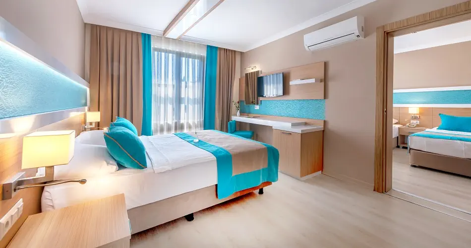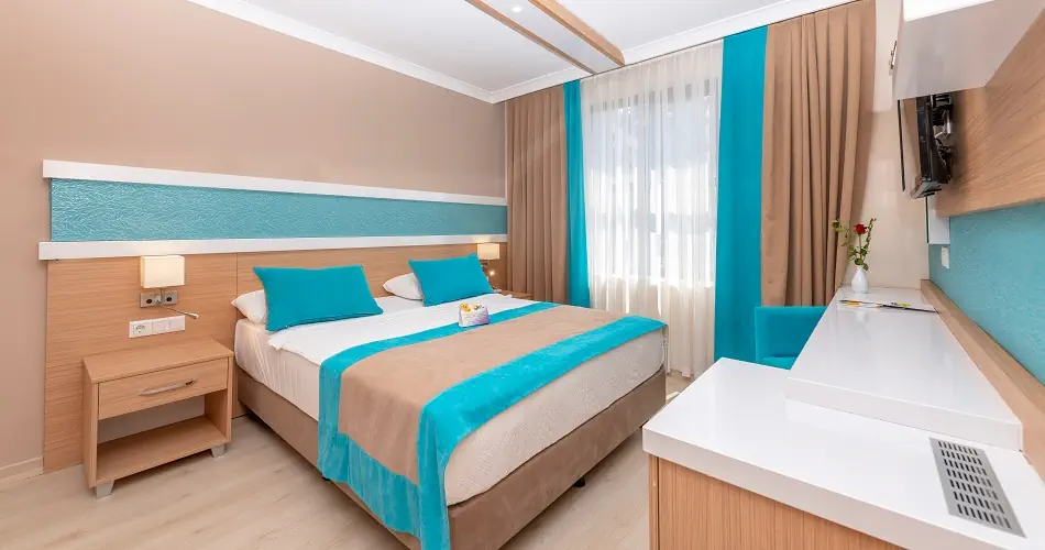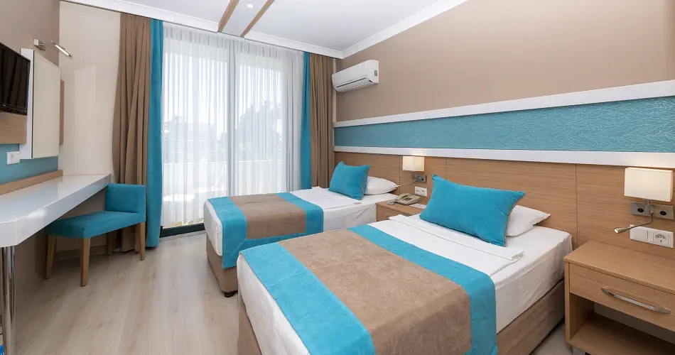 Pokój Standard ok. 15-20 m² - Klimatyzacja - Łazienka z prysznicem lub wanną, WC, suszarka do włosów - Telefon, TV SAT - Sejf - płatny - Minibar uzupełniany codziennie w wodę - bezpłatnie - Łóżeczko dziecięce (na życzenie)- bezpłatnie - Balkon Pokój Standard Eco ok. 15 m² - Zlokalizowane na niższych piętrach - Wyposażenie jak w pokoju Standard Pokój Family ok. 30 m² - Skada się z 2 oddzielnych sypialni - Przestronniejszy, maksymalnie dla 4 osób