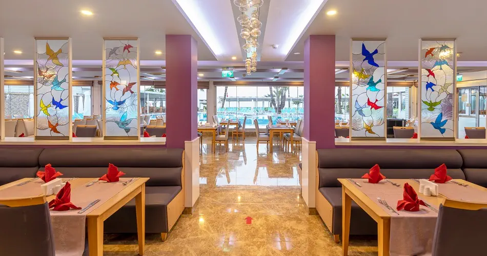 - Recepcja - Restauracja, restauracja a'la carte (płatna) - 2 bary - przy basenie oraz na plaży - Basen zewnętrzny oraz brodzik dla dzieci ze zjeżdżalnią - Leżaki i parasole przy basenie - bezpłatne - Dyskoteka - w wybrane dni - Pralnia - płatne - Sala konferencyjna - Sklepy - Oficjalna kategoria hotelu 4*
