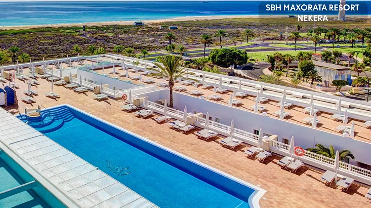 SBH Maxorata Resort to czterogwiazdkowy hotel położony przy plaży Jandia na hiszpańskiej wyspie Fuerteventura, oferujący komfortowy pobyt z widokiem na Ocean Atlantycki i bogatą ofertą rekreacyjną dla par i rodzin. Obiekt łączy przestronne, nowocześnie urządzone pokoje, w tym opcje z widokiem na morze i dostępem do basenu Swim Up. Goście mają do dyspozycji formułę wyżywienia All Inclusive, z zakresu usług rekreacyjno sportowych do dyspozycji gości są cztery baseny zewnętrzne, strefy relaksu, programy animacyjne, strefa wellness z jacuzzi i sauną oraz różnorodne zajęcia sportowe. Hotel zapewnia bezpłatne Wifi, całodobową recepcję i udogodnienia przyjazne rodzinom z dziećmi, a wokół rozciąga się malowniczy krajobraz Wysp Kanaryjskich z łatwym dostępem do plaży i lokalnych atrakcji.