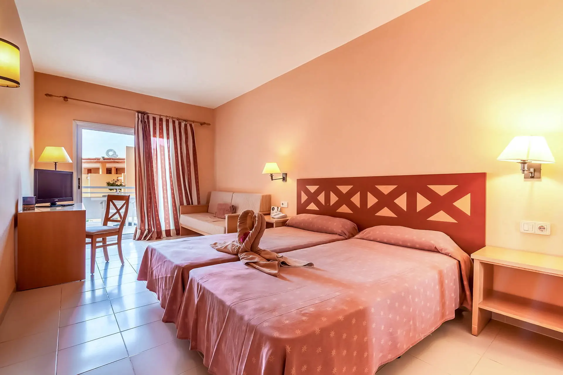 Położenie Do lotniska jest około 60 km. W centrum kurortu znajduje się kilka barów, restauracji oraz niewielkie centrum handlowe. Hotel położony jest w południowej części wyspy w kurorcie Costa Calma. Plaża Plaża w pobliżu hotelu (Playa de Sotavento) oraz druga plaża na terenie hotelu. Playa de Sotavento ma skaliste zejście do wody. Leżaki i parasole na Playa de Sotavento płatne, na terenie hotelu bezpłatne. Do dyspozycji gości Informacje podstawowe: SBH Nautilus wraz z hotelem SBH Costa Calma Beach tworzą 1 kompleks. Recepcja i lobby dostępne dla Gości hotelu, windy. Tarasy słoneczne z leżakami i parasolami. 3 baseny (1 basen sezonowo podgrzewany), 2 brodziki, leżaki i parasole przy basenach, ręczniki basenowe (depozyt ok. 10 Eur, wymiana ok. 1 Eur). Atrakcje dla dzieci: mini klub, plac zabaw. Restauracje: restauracja, bary. Pozostałe informacje: butik, pralnia (płatna), parking. Wyżywienie Rodzaje wyżywienia i posiłki: All Inclusive: śniadania, śniadania kontynentalne, obiady i obiadokolacje w formie bufetu. Lokalne napoje alkoholowe i lokalne napoje bezalkoholowe w godzinach 11:00 – 23:00 w miejscach wyznaczonych przez hotel. Przekąski, kawa, herbata, ciasta, lody, w godzinach wyznaczonych przez hotel. Program sportowy i animacyjny Dla każdego: dzienne i wieczorne animacje, siłownia, sauna, ping pong, kort tenisowy, boisko do siatkówki plażowej. Za dodatkową opłatą: bilard, sporty wodne na plaży. Internet WiFi bezpłatne w lobby. Naszym zdaniem Rozległy i dobrze utrzymany kompleks dwóch hoteli. Położony w spokojnej okolicy jest idealnym miejscem dla osób poszukujących relaksu. Aktywnym polecamy sporty wodne, wyprawy piesze oraz rowerowe (wypożyczalnia rowerów znajduje się w pobliżu hotelu). Strona www www.sbhfue.com Kategoria lokalna ****