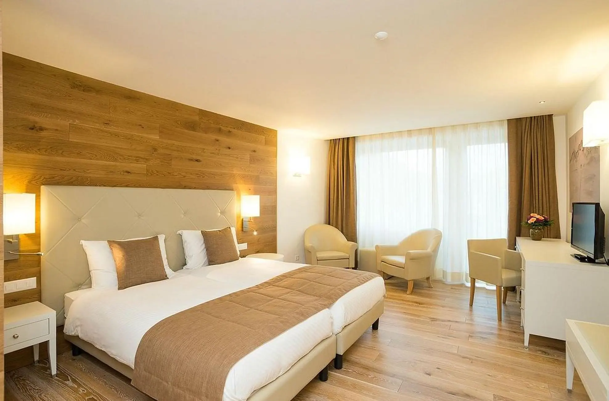 pokoje dwuosobowe comfort (ok. 20 m2): wanna lub prysznic, WC, suszarka, telefon, TV, sejf. Pokoje dwuosobowe deluxe (ok. 22 m2): wyposażone jak pokoje dwuosobowe comfort. Pokoje jednoosobowe comfort (ok. 20 m2): wyposażone jak pokoje dwuosobowe comfort. Junior Suite comfort (ok. 25 m2): wyposażone jak pokoje dwuosobowe comfort.