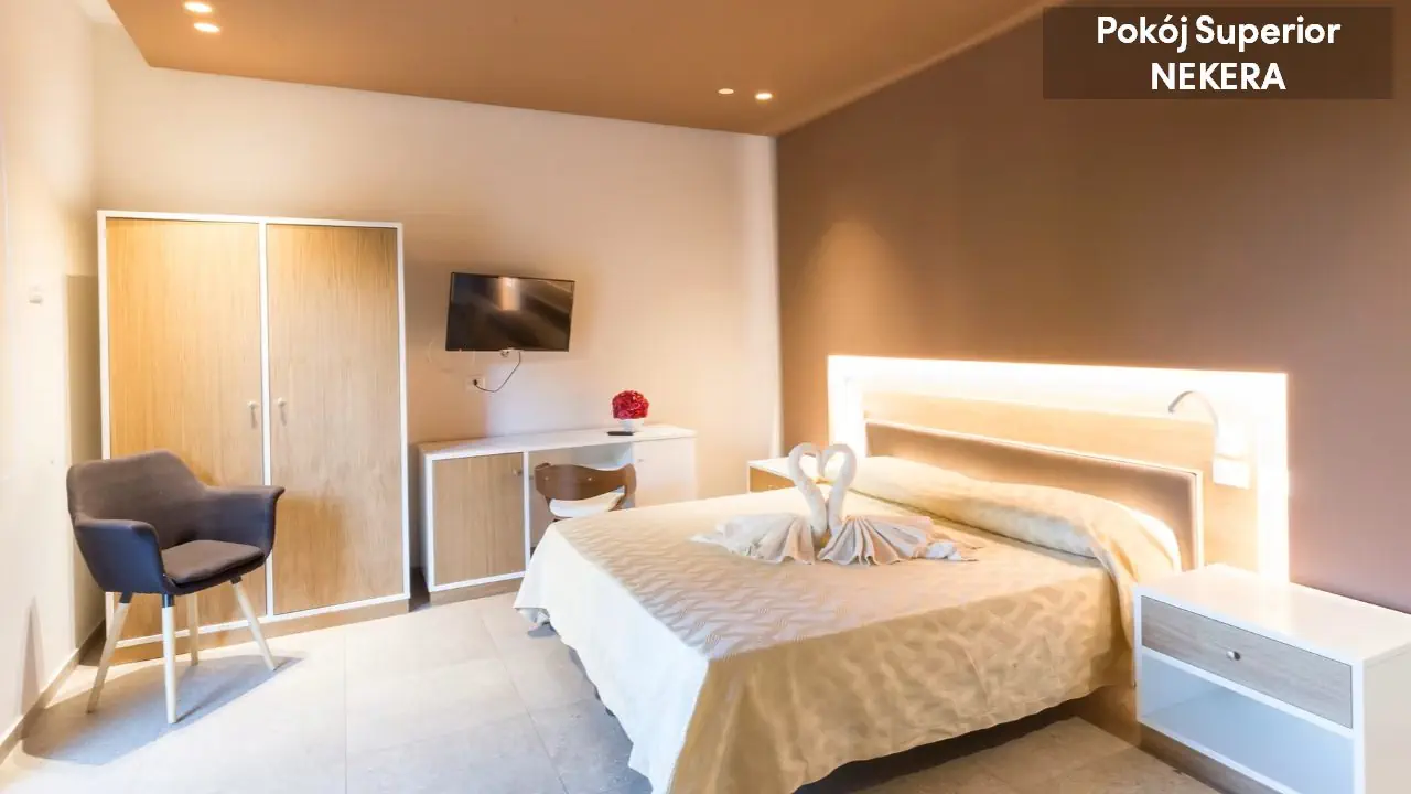 Noclegi, wyżywienie zgodnie z rezerwacją, telefoniczną opiekę rezydenta. Dodatkowo w przypadku imprez pakietowych z przelotem, oprócz ww. świadczeń w cenie zawarty jest: przelot, opłata lotniskowa, opłata za wylot z lotniska lokalnego, transfer lotnisko-hotel-lotnisko (chyba, że dana oferta stanowi inaczej), ubezpieczenie dla imprez turystycznych, bezpośrednia opieka polskojęzycznego rezydenta - w sezonie letnim (wakacyjnym): Kreta, Rodos, Turcja (Riwiera), Majorka, Bułgaria, całorocznie: Malta, na pozostałych kierunkach opieka telefoniczna lub przez czat w serwisie moja.nekera.pl. W przypadku imprez turystycznych opartych o przeloty przewóz bagażu może być nieuwzględniony w cenie. Cena uzależniona jest m.in. od przewoźnika oraz terminu wyjazdu, należy ją zweryfikować podczas zakupu. Linie lotnicze, w których bagaż jest w cenie (20 kg bagaż główny oraz bagaż podręczny) - przeloty czarterowe: Enter Air, LOT (dla wylotów na Rodos), Sky Express, Holiday Europe, European Air Charter, Ryan Sun (dla wylotów na Rodos) oraz przeloty rejsowe: Sun Express, Corendon, Pegasus Airlines, Emirates, Fly Dubai, Quatar Airlines, Air France, Austrian Airlines.Przykładowe linie lotnicze, gdzie bagaż jest dodatkowo płatny to: FR (Ryanair), W6 (WizzAir), Easy Jet. Podane godziny serwowania posiłków oraz funkcjonowania poszczególnych elementów infrastruktury hotelowej mogą ulec nieznacznym zmianom, ze względu na sezonowość, siły wyższe i inne okoliczności.