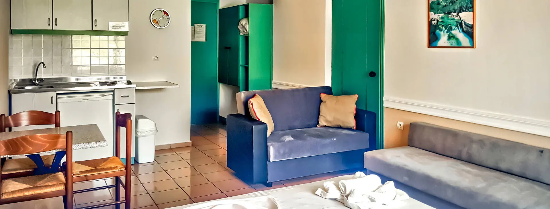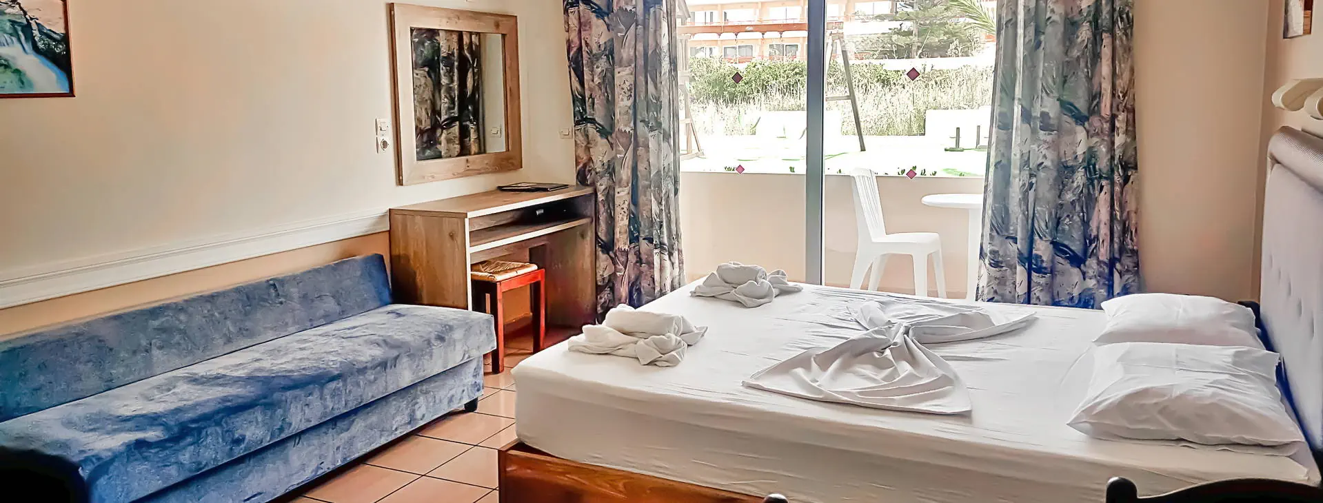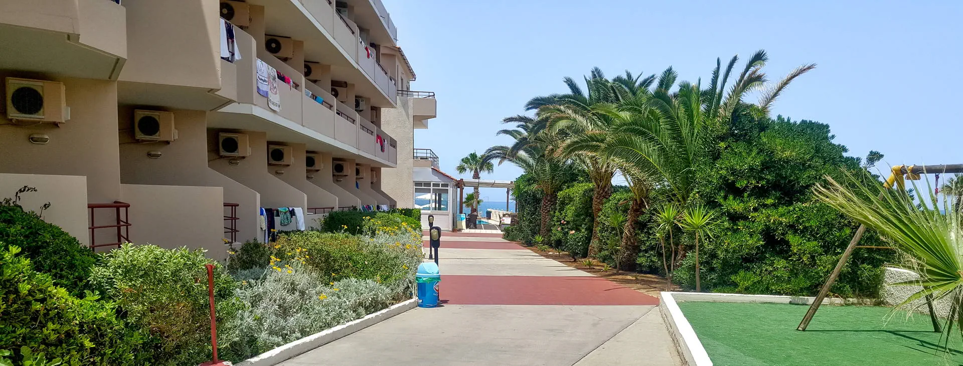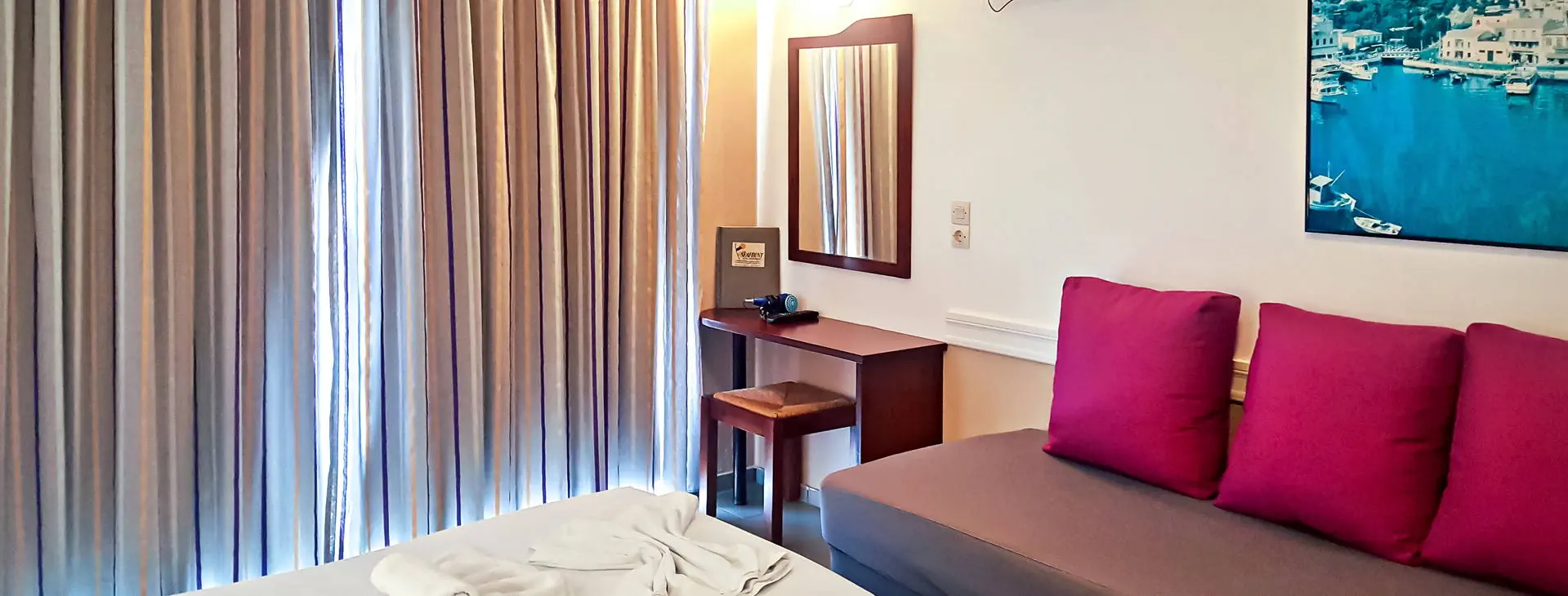 Położenie: Obiekt położony zaledwie 7 km od Rethymnonu. Przystanek autobusowy znajduje się ok 30 m od hotelu. Odległość od lotniska ok 75 km. W pobliżu szeroki wybór sklepów, tawern, kawiarni. UWAGA! Cena nie obejmuje lokalnego podatku turystycznego w wysokości 1,50 Eur/pokój/dzień. Podatek jest obligatoryjny i płatny bezpośrednio w recepcji, przed zakwaterowaniem Klientów w hotelu. Plaża: Przy hotelu znajduje się szeroka, długa, piaszczysto-żwirowa plaża. Do dyspozycji gości: Recepcja (czynna w godz. 9.00-21.00), przechowalnia bagażu, lobby, sala telewizyjna, pralnia (za opłatą), sklep, minimarket, kantor, bar, bar przy basenie, restauracja. Dla gości dostępny ogród, basen ze słodką wodą, brodzik dla dzieci, przestronny taras słoneczny z leżakami i parasolami (bezpłatne), ręczniki kąpielowe dostępne w recepcji (wymagany depozyt 10 EUR + 1 EUR za wymianę). Dla dzieci plac zabaw i mini-klub z huśtawkami i zjeżdżalniami. Pokoje: 64 pokoi rozlokowanych w 3-piętrowym budynku. Hotel dysponuje pokojami standardowymi oraz pokojami familijnymi, które są 1-pomieszczeniowe, posiadają kuchenkę elektryczną oraz mikrofalówkę (na zamówienie). Wszystkie pokoje wyposażone są w łazienkę (wanna lub prysznic, suszarka do włosów) i wc, indywidualnie sterowaną klimatyzację, TV-sat, telefon, radio, lodówkę, sejf (za opłatą) oraz balkon lub taras. Łóżeczko dla dzieci do 2 lat - bezpłatnie. Wyżywienie: Śniadania oraz obiadokolacje w formie bufetu, a za dopłatą All Inclusive soft: śniadania, obiady i kolacje. Obiady w formie przekąsek- jedno danie każdego dnia (typu ciasto, makarony, pizza, hot-dogi, kanapki). Lokalne napoje bezalkoholowe, alkohole (piwo, wino, raki), kawa i herbata serwowane w barze (10.30-22.00). Program sportowy i animacyjny: Hotel nie prowadzi programu animacyjnego. 1 x w tygodniu odbywa się wieczór grecki z muzyką na żywo, tańcami folklorystycznymi i regionalnymi daniami. W cenę wliczony tenis stołowy, bilard oraz rzutki w sali gier Za dodatkową opłatą: gry video. W pobliżu hotelu na plaży funkcjonuje wypożyczalnia sprzętów wodnych. Niedaleko znajduje się szkoła nurkowania. Internet: Przy recepcji oraz w części pokoi dostępny darmowy internet Wi-Fi. Kategoria lokalna: *** Strona www: