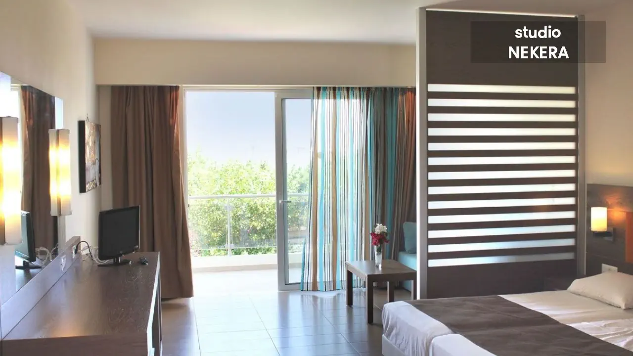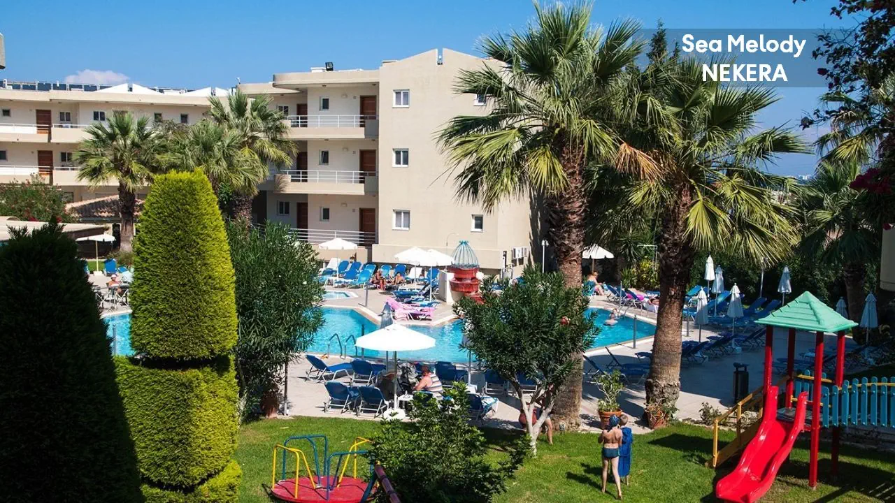 czterogwiazdkowy hotel ze studiami i apartamentami; oferuje 93 pokoi zlokalizowanych w pięciu dwupiętrowych budynkach. Do dyspozycji Gości: recepcja 24 h, przestronne lobby, windy, klimatyzacja, 1 basen zewnętrzny, brodzik; parasole słoneczne i leżaki przy basenie: w cenie; restauracja główna, dodatkowo płatne: bar przy basenie, bar w lobby; minimarket. Za dodatkową opłatą: przechowalnia bagażu, wymiana walut, punkt fax/Internet; wypożyczalnia aut. Hotel akceptuje płatności kartą kredytową.