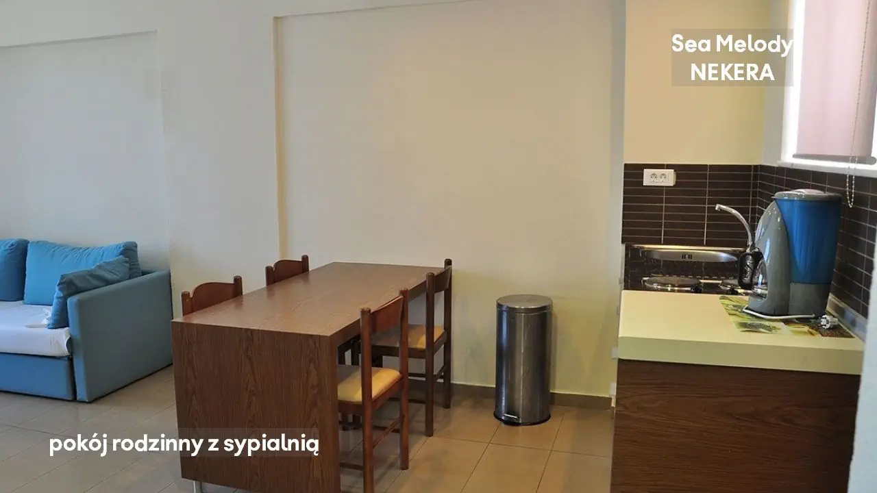 pokój rodzinny FAMILY ROOM WITH OPEN PLAN: ok. 38 m², nowoczesne przestronne wnętrze oferuje: jedno łóżko podwójne w sypialni i sofa; możliwość zakwaterowania maks.3 osoby; prywatny umeblowany balkon lub taras; smart TV; indywidulanie sterowana klimatyzacja ( bezpłatna ); sejf ( bezpłatny ); telefon (płatny); minilodówka; telefon, wyposażony aneks kuchenny z płytą grzewczą, toster, ekspres do kawy; prywatna łazienka (prysznic lub wanna, umywalka, toaleta, lustro, suszarka do włosów, ręczniki); pościel zmieniana 3 razy w tygodniu. Widok na ląd lub basen. Pokój rodzinny z sypialnią FAMILY ONEBEDROM ROOM: ok. 44 m², nowoczesne przestronne wnętrze oferuje: jedno łóżko podwójne w sypialni oraz dwie sofy w drugim pomieszczeniu; możliwość zakwaterowania maks. 4 osób; pozostałe wyposażenie jak w apartamencie na otwartym planie.