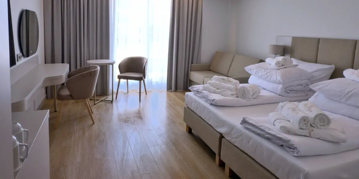 Pokój wyposażony jest w łazienkę z suszarką, telewizję satelitarną, telefon, Wi-Fi. Brak klimatyzacji.