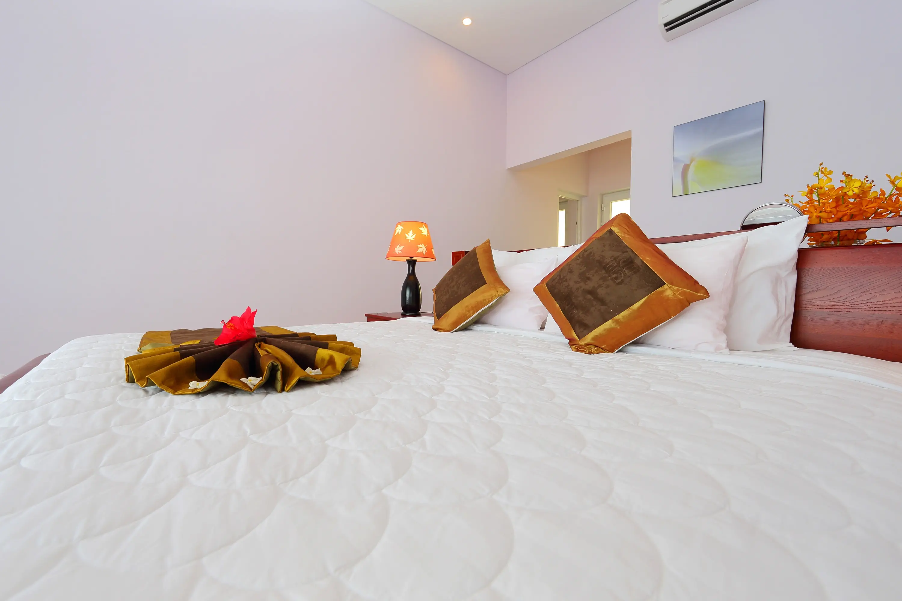 Dla max. 3 osób, Przestrzeń zewnętrzna: Balkon lub taras, Kanały telewizji: Angielski, Telefon w pokoju, prysznic, Powierzchnia pokoju: ok. 30 - 35 m2, Dostawka: sofa, Rodzaj podłogi: płytki, Sprzątanie codziennie, 1 sypialnia, Maksymalna liczba osób dorosłych: 3, Maksymalna liczba dzieci: 2, Widok na ogród, Liczba łazienek: 1, Liczba toalet: 1, Zestaw do parzenia kawy i herbaty, Klimatyzacja: Klimatyzacja indywidualna