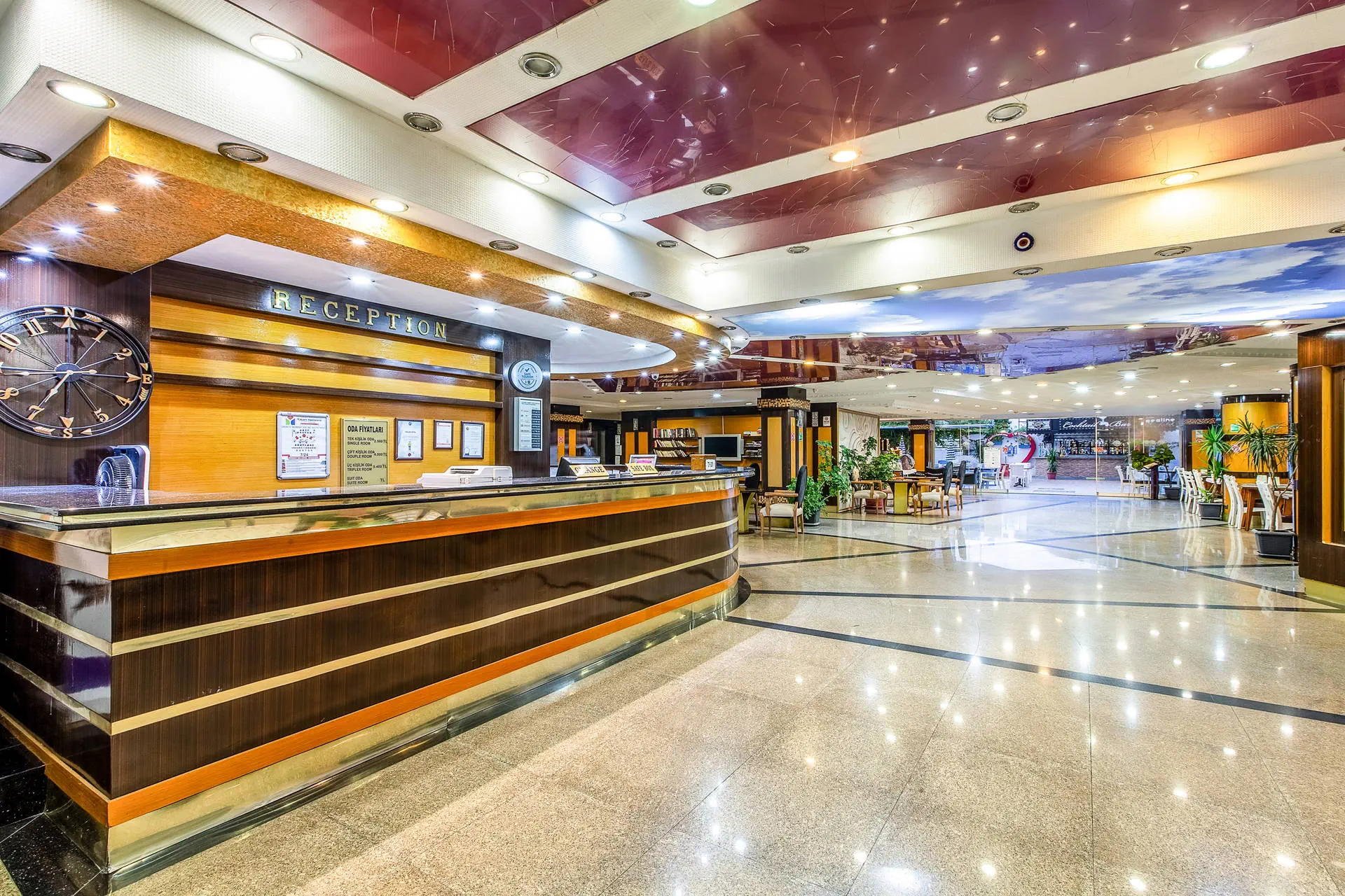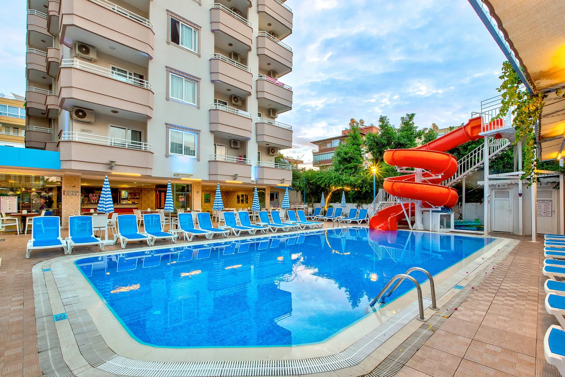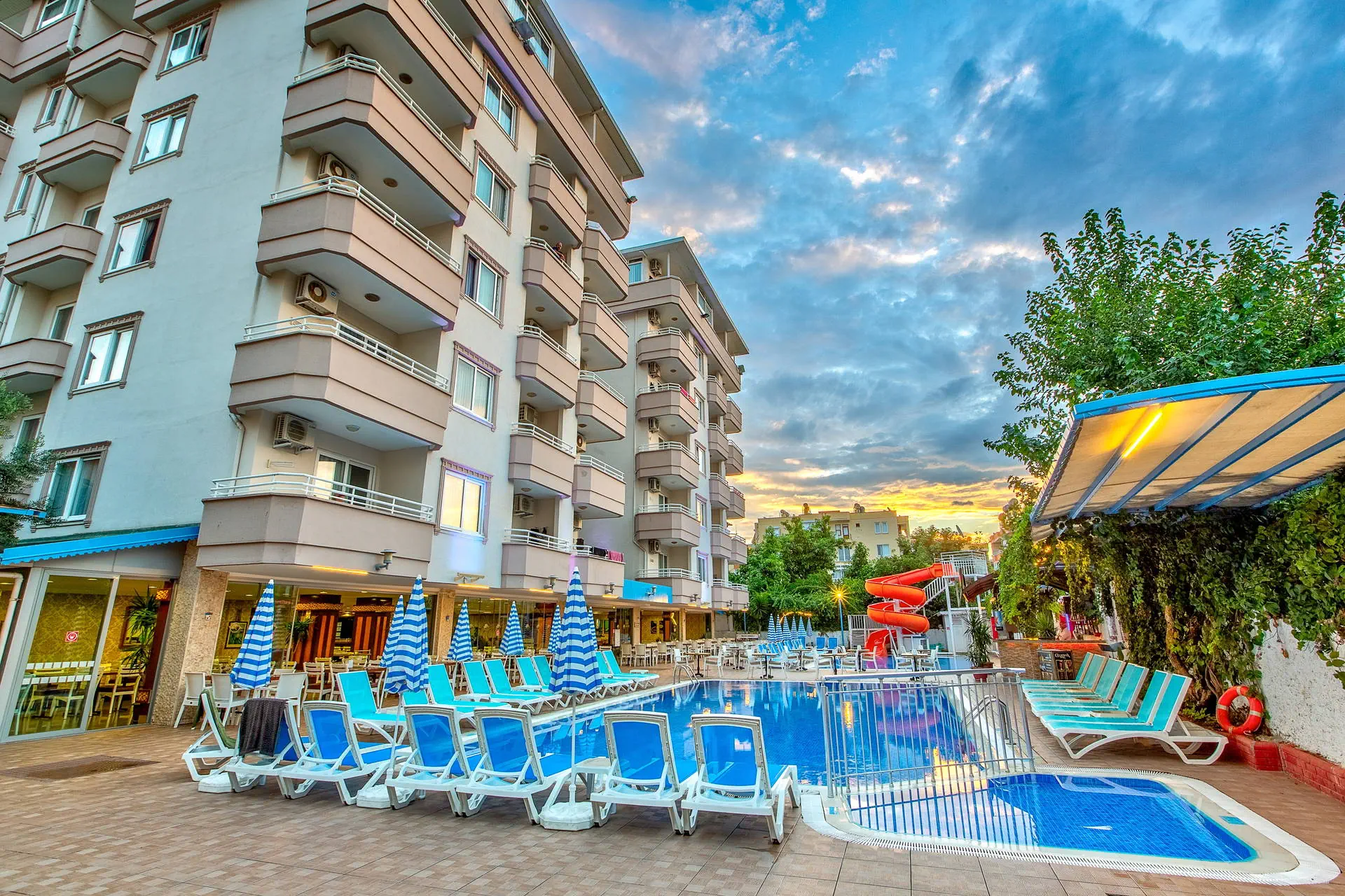 Położenie Świetna lokalizacja w odległości ok. 500 m od centrum turystycznego kurortu Alanya, ok. 800 m do portu. W okolicy hotelu liczne kawiarnie, sklepy, bary i restauracje oraz kantor. Do lotniska w Antalyi ok. 120 km. Plaża Do słynnej plaży Kleopatry ok. 350 metrów. Leżaki i parasole na plaży płatne (ok. 6 EUR/dzień/komplet). Do dyspozycji gości Recepcja 24 h, winda, lobby, restauracja główna, bar. Ponadto: 2 baseny w tym jeden ze zjeżdzalnią, taras słoneczny z bezpłatnymi leżakami i parasolami. Hotel nie prowadzi serwisu ręczników kąpielowych. Wyżywienie All Inclusive: śniadanie (08:00-10:00), lunch (12:30-14:00), obiadokolacja (19:00-21:00) w formie bufetu w restauracji głównej, kawa, herbata, ciastko (16:00-17:00), nocna zupa (23:00-24:00). Napoje bezalkoholowe oraz lokalne alkohole (10:00-23:00). Płatne dodatkowo: świeżo wyciskane soki, konsumpcja po 23:00, kawa po turecku. Program sportowy i animacyjny Hotel nie prowadzi animacji. Dwa wieczory w tygodniu organizuje wieczorne show. Ponadto: tenis stołowy, za dodatkową opłatą billard. Internet Bezpłatny internet Wi-Fi w lobby i przy basenie. Kategoria lokalna *** Naszym zdaniem Hotel polecamy szczególnie osobom które pragną wypoczywać w samym sentrum Alanyi. Bliskość wszelakich rozrywek jakich jak bary, restauracje, sklepy oraz przepiękna plaża Kleopatry dostępna w zasięgu spaceru sprawiają że jest to idealna oferta dla osób które pragną na wakacjach przeżyć prawdziwą turecką przygodę. Największą zaletą poza położeniem, są bardzo przestronne pokoje rodzinne. Gorąco polecamy. Strona www www.sealinehotel.com