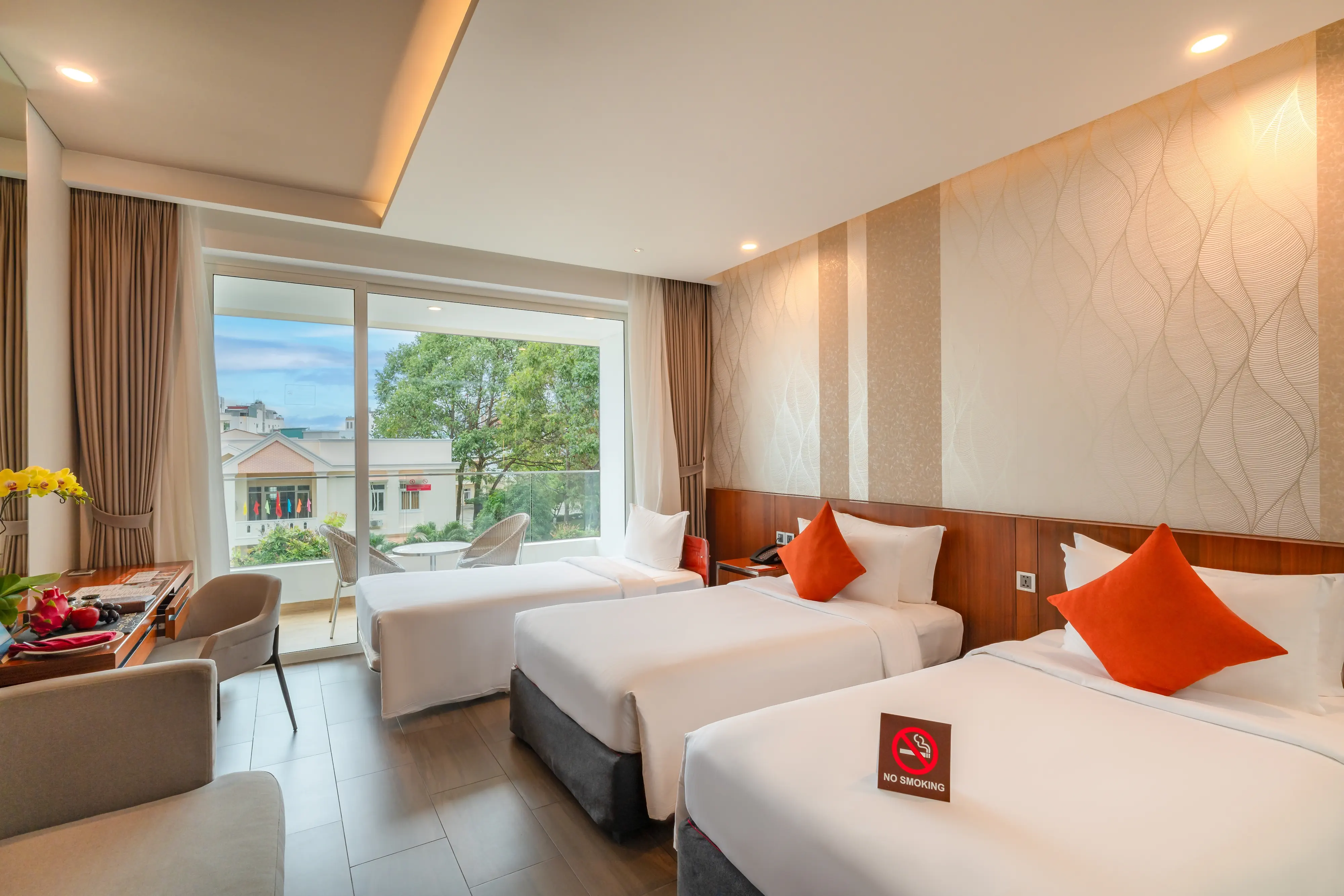 Dla max. 3 osób, Przestrzeń zewnętrzna: Balkon, Kanały telewizji: Angielski, Telefon w pokoju, wanna i prysznic , Powierzchnia pokoju: ok. 33 m2, Rodzaj podłogi: płytki, Sprzątanie codziennie, 1 sypialnia, Maksymalna liczba osób dorosłych: 2, Maksymalna liczba dzieci: 2, Widok na miasto, Liczba łazienek: 1, Liczba toalet: 1, Zestaw do parzenia kawy i herbaty, Klimatyzacja: Klimatyzacja centralna, Działa w godzinach: 24h
