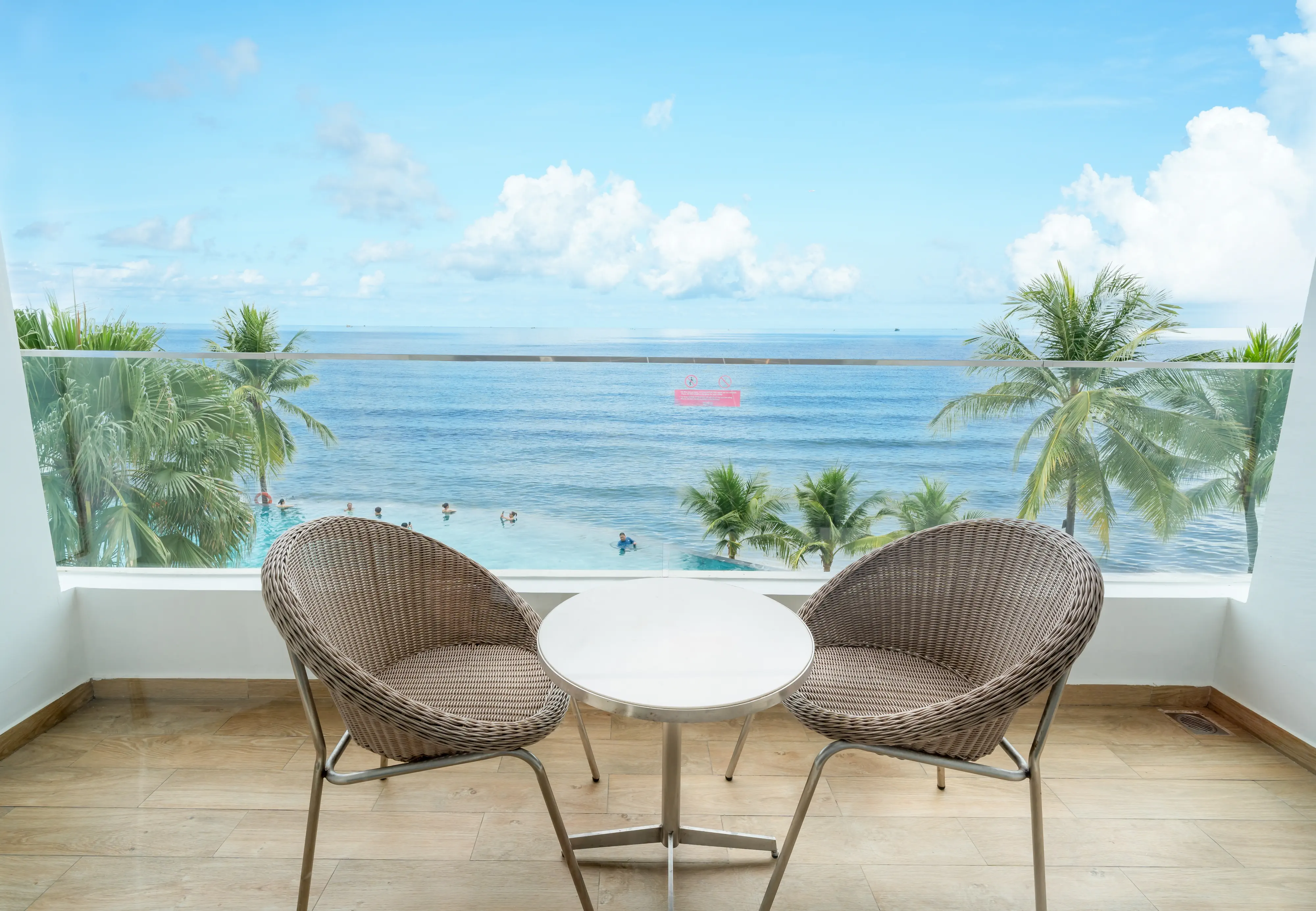 Dla max. 3 osób, Przestrzeń zewnętrzna: Balkon, Kanały telewizji: Angielski, Telefon w pokoju, wanna i prysznic , Powierzchnia pokoju: ok. 33 m2, Rodzaj podłogi: płytki, Sprzątanie codziennie, 1 sypialnia, Maksymalna liczba osób dorosłych: 2, Maksymalna liczba dzieci: 2, Widok na morze, Liczba łazienek: 1, Liczba toalet: 1, Zestaw do parzenia kawy i herbaty, Klimatyzacja: Klimatyzacja centralna, Działa w godzinach: 24h