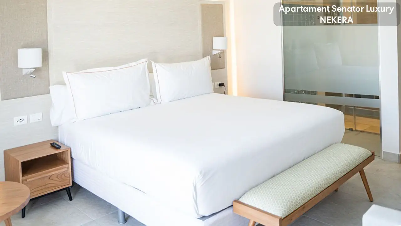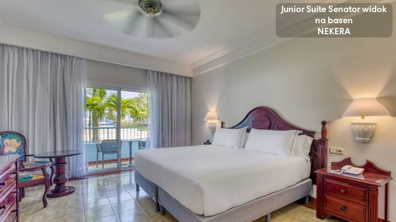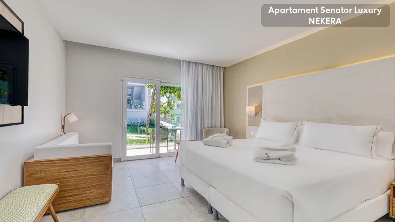 Senator Junior Suite - jedno łóżko podwójne typu King Size, lub dwa łóżka typu Queen Size (w zależności od dostępności) - klimatyzacja lub ogrzewanie, w zależności od pory roku - wanna z prysznicem - taras lub balkon - TV - minibar - bezpłatny sejf - bezpłatne WiFi - suszarka do włosów Apartament Senator Junior przy basenie - przy basenie - poza tym wyposażony tak, jak jego odpowiednik Senator Junior Suite Senator Luxury Junior Suite - jedno łóżko typu King Size lub dwa łóżka Queen - osobna, rozkładana sofa - łazienka z prysznicem z deszczownicą - taras - ekspres do kawy i herbaty - poza tym wyposażony tak, jak pokój Senator Junior Suite Senator Luxury Junior Suite z widokiem na morze - widok na morze - poza tym wyposażony tak, jak jego odpowiednik Senator Luxury Junior Suite i Senator Junior Suite Apartament Senator Luxury - ekspres do kawy i herbaty - sofa rozkładana - jedno łóżko typu King Size - dostęp do półprywatnego basenu - łazienka z prysznicem z deszczownicą - suszarka do włosów - klimatyzacja lub ogrzewanie (w zależności od pory roku) - taras lub balkon - TV - minibar - bezpłatny sejf - bezpłatne WiFi - pod warunkiem dostępności i za dodatkową opłatą z widokiem na morze Senator Imperial Suite - łóżko King Size - osobny salon z rozkładaną sofą - łazienka z wanną i prysznicem - taras z widokiem na morze - ekspres do kawy i herbaty - balkon lub taras - TV - minibar - bezpłatny sejf - bezpłatne WiFi