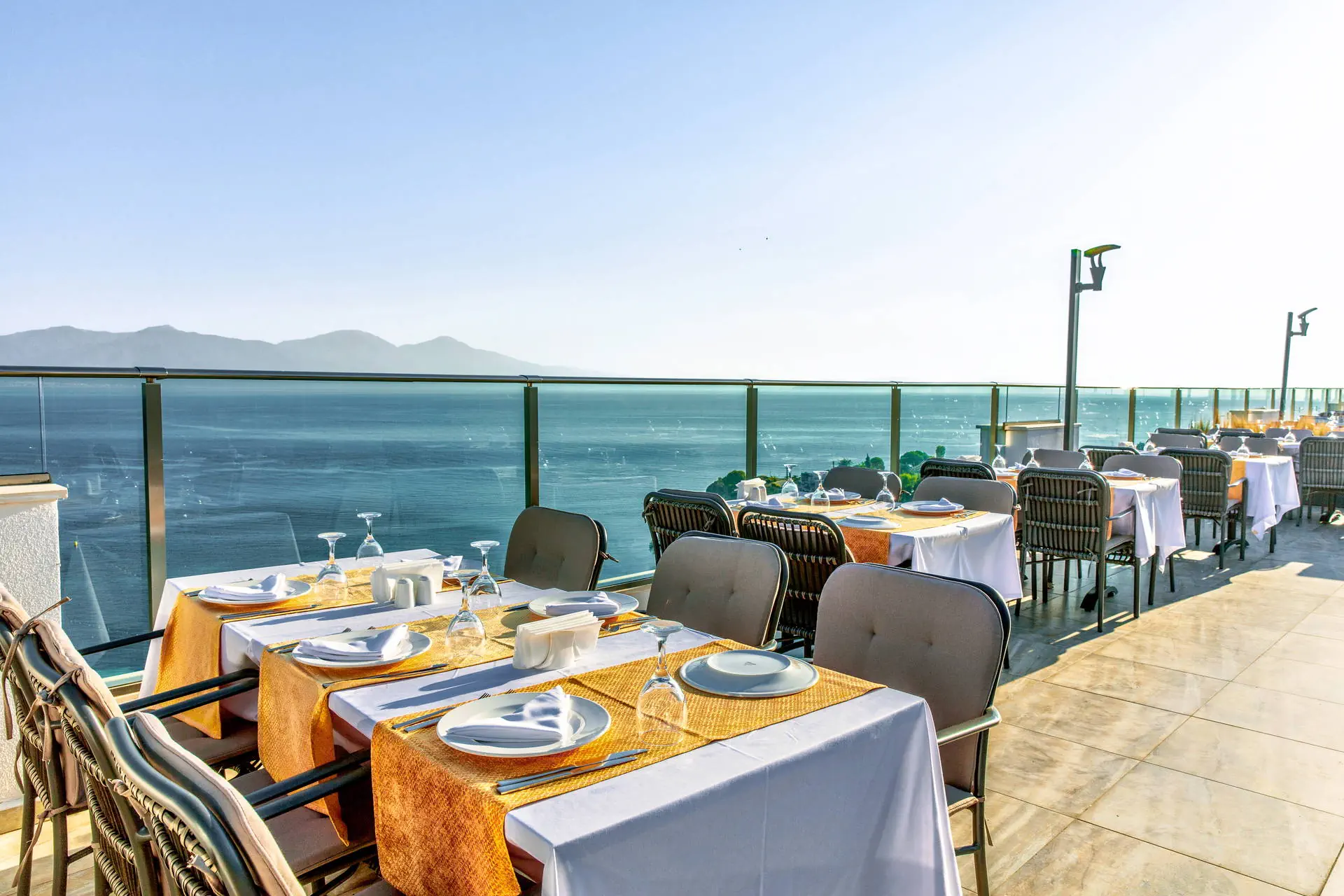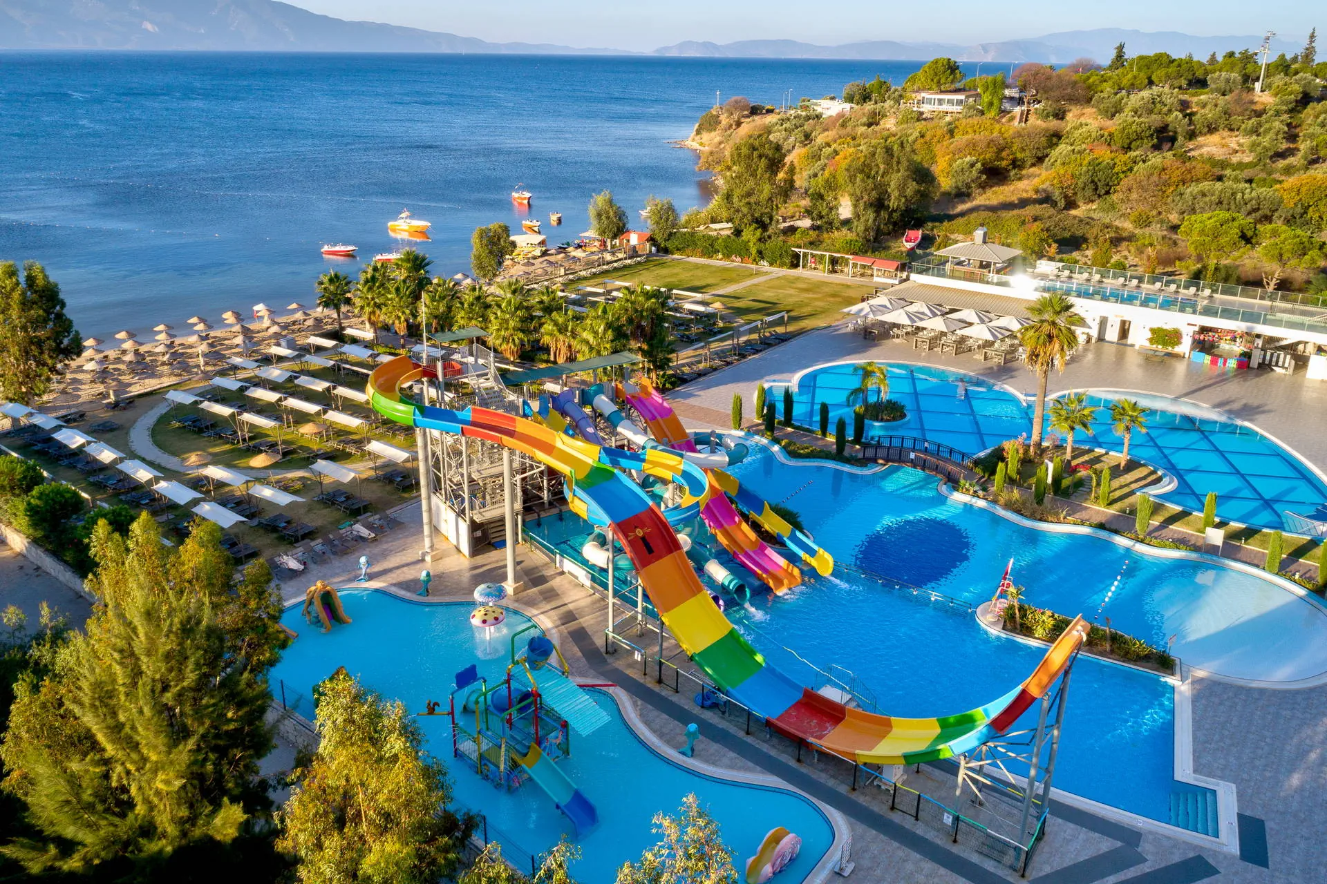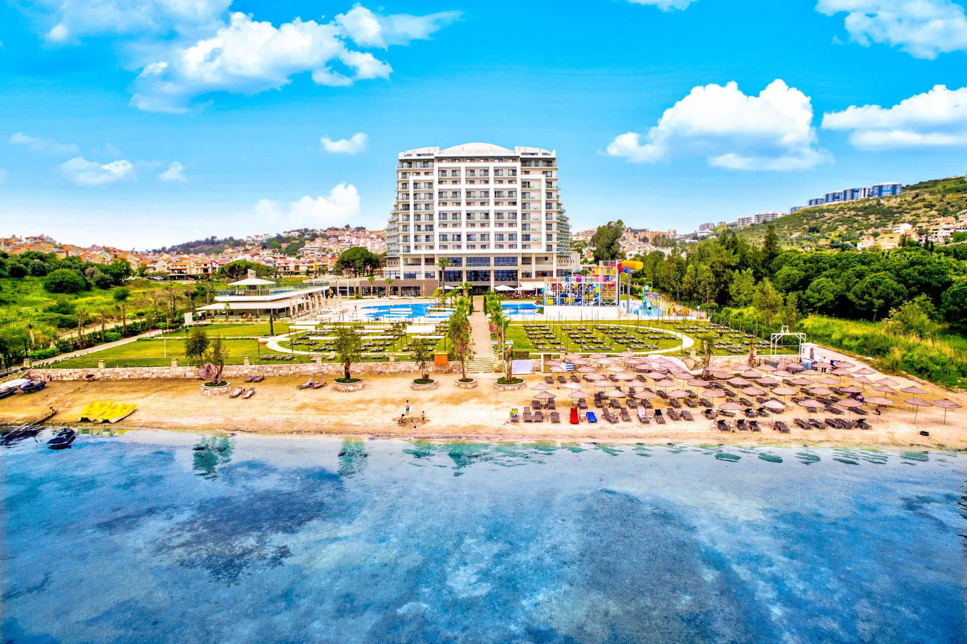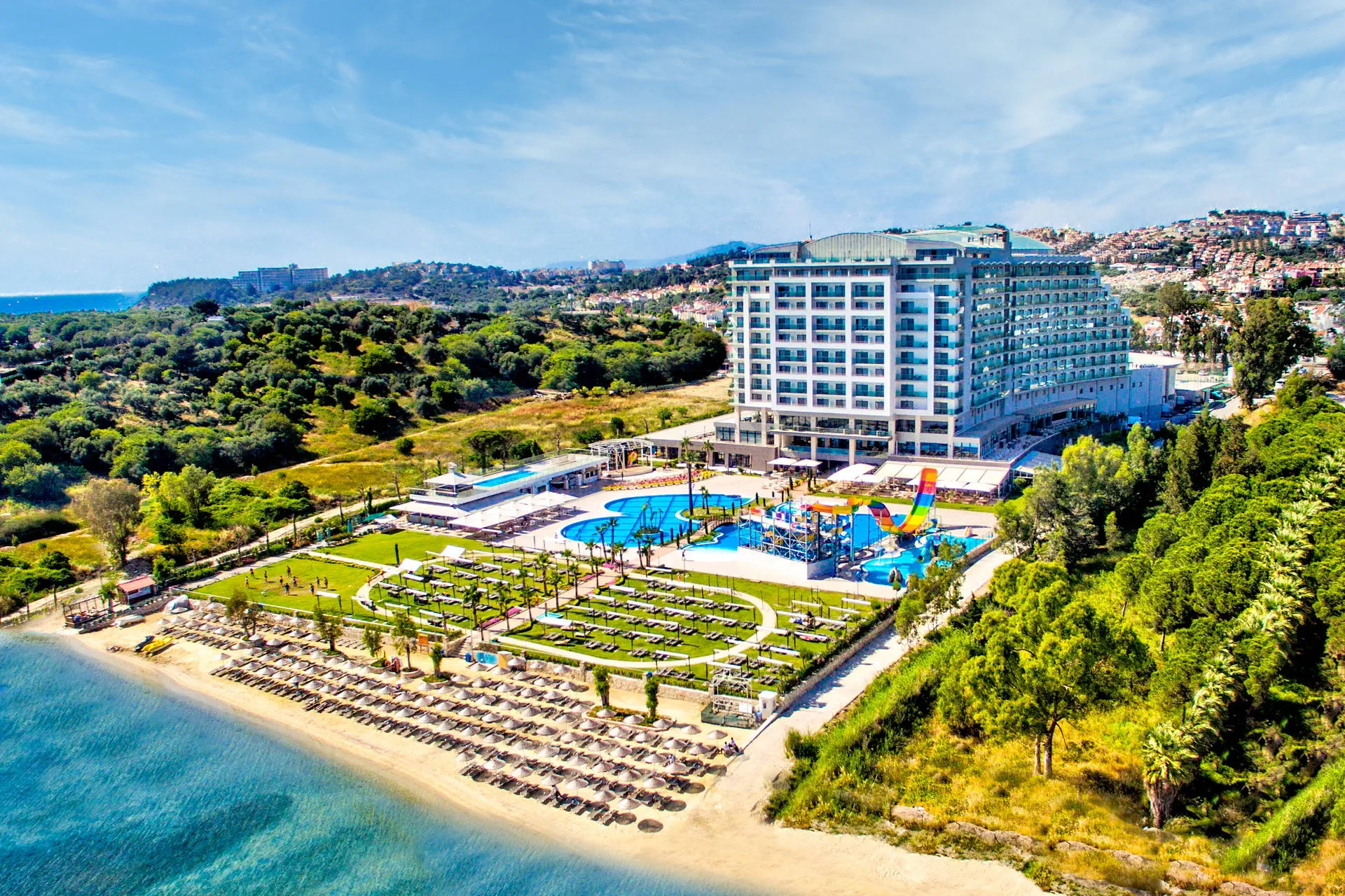 Położenie Obiekt znajduje się około 6 km od centrum Kusadasi. Historyczny Efez oddalony jest o około 25 km. Hotel położony jest w odległości około 130 km od lotniska w Bodrum. Plaża Plaża bezpośrednio przy hotelu. Przejście przez kompleks hotelowy. Plaża piaszczysto-żwirowa. Parasole, leżaki oraz ręczniki plażowe bezpłatnie. Do dyspozycji gości Recepcja 24h/7, przestronne lobby, winda. Duży basen główny o nieregularnych kształtach, mini aqua park dla dzieci ze zjeżdżalniami, 2 baseny wewnętrzne (basen ze słoną wodą płatny dodatkowo), wewnętrzny brodzik dla dzieci, taras słoneczny przy basenie z bezpłatnymi leżakami, parasolami i ręcznikami. Atrakcje dla dzieci: mini aqua park dla dzieci ze zjeżdżalniami, wewnętrzny brodzik dla dzieci. Restauracje: restauracja główna, 5 restauracji à la carte: turecka, azjatycka, włoska, meksykańska oraz z owocami morza (bezpłatne, wymagana wcześniejsza rezerwacja); 3 bary: snack bar, przy basenie, w lobby. Pozostałe informacje: dodatkowo płatne: opieka medyczna, fryzjer, sklepy, pralnia, fotograf. Wyżywienie Rodzaje wyżywienia i posiłki: Ultra All Inclusive: Śniadania: 07:00 - 11:00. Lunch: 12:30 - 14:30. Obiadokolacje: 18:30 - 21:30; posiłki w formie urozmaiconego bufetu.Nocne przekąski: 22:00 - 02:00. Przekąski w ciągu dnia: 12:00 - 17:00. Kawa, herbata, ciasta i lody. Bary: Lokalne napoje bezalkoholowe i alkoholowe dostępne 24 h w wybranym barze. W pozostałych barach napoje dostępne w godzinach otwarcia. Niektóre importowane napoje alkoholowe w cenie. Program sportowy i animacyjny Dla każdego: zabawy i gry przy basenie, wieczorne show, muzyka na żywo, kort tenisowy, koszykówka, siatkówka, joga, aerobik, centrum fitness, łaźnia turecka, łaźnia parowa, sauna. Dla dzieci: mini klub hotelowy (4-12 lat). Za dodatkową opłatą: kajaki, bilard, sporty wodne, zabiegi i masaże w centrum SPA. Internet Bezpłatny Internet Wi-Fi. Kategoria lokalna ***** Naszym zdaniem Wysokiej klasy hotel, spełniający oczekiwania najbardziej wymagających Gości. Dedykowany głównie osobom, które preferują aktywny wypoczynek, a także cenią bogaty program animacyjny i bliskość atrakcyjnego Kusadasi. Dodatkowym atutem jest wyśmienita kuchnia – aż 6 restauracji pozwoli spróbować kuchni z różnych regionów świata! Strona www www.sevenseassealightelite.sealighthotels.com
