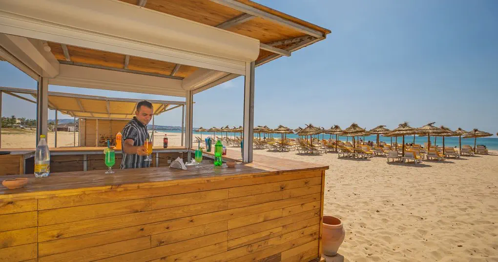 - Piaszczysta, oddalona ok. 200m od hotelu - Dotęp do plaży prywatną ścieżką - Leżaki i parasole dostępne są bezpłatnie - Ręczniki plażowe są płatne ok. 2 TND/ dzienne + kaucja ok. 20 TND - Bar - bezpłatny (czynny w wysokim sezonie od 01.06 do 15.09 w godz od 10:00 do 18:00 w zależności od warunków pogodowych, tylko napoje bezalkoholowe )