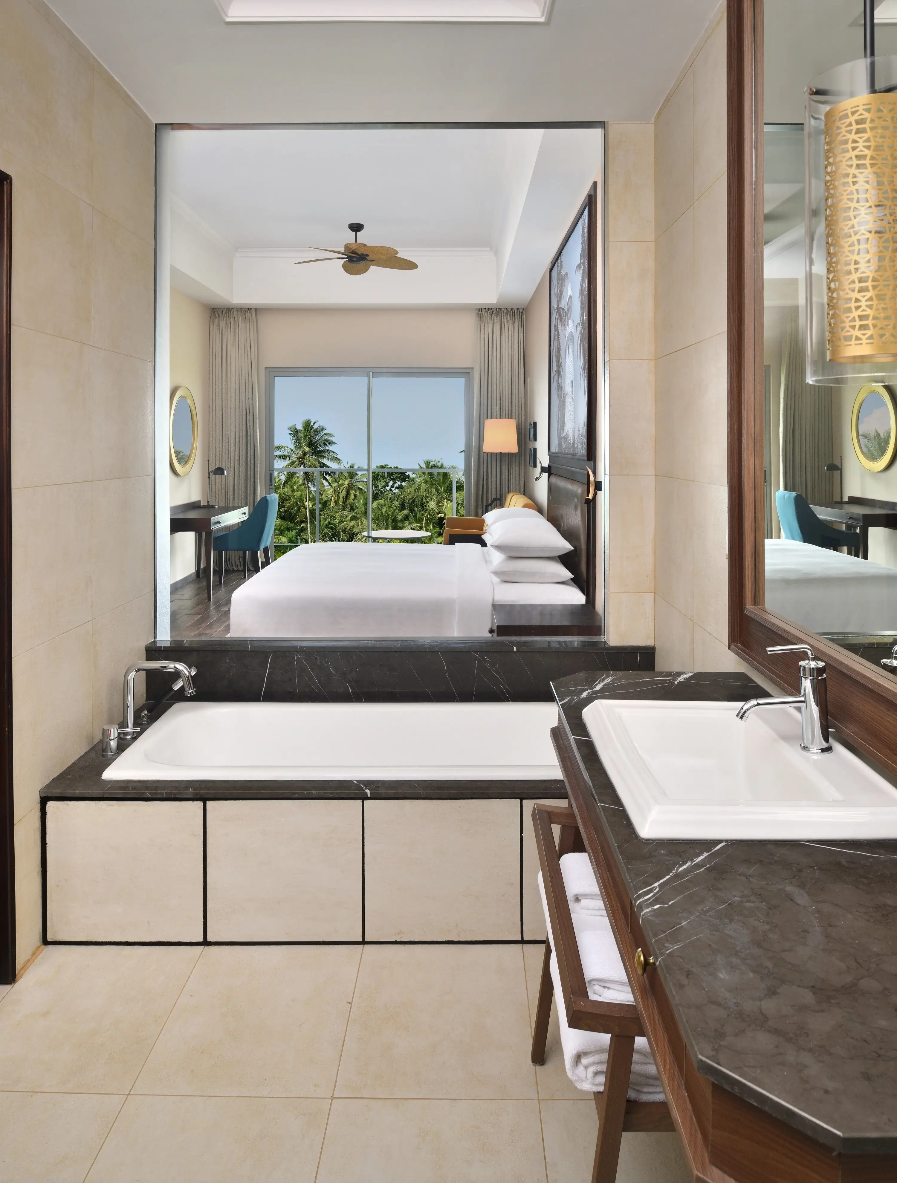 Dla max. 3 osób, Przestrzeń zewnętrzna: Balkon lub taras, Kanały telewizji: Angielski, Telefon w pokoju, prysznic, wanna i prysznic , Powierzchnia pokoju: ok. 42 m2, Dostawka: łóżko rozkładane, Rodzaj podłogi: płytki, Sprzątanie codziennie, 1 sypialnia, Maksymalna liczba osób dorosłych: 3, Maksymalna liczba dzieci: 1, Widok na ogród, Liczba łazienek: 1, Liczba toalet: 1, Zestaw do parzenia kawy i herbaty, Klimatyzacja: Klimatyzacja centralna