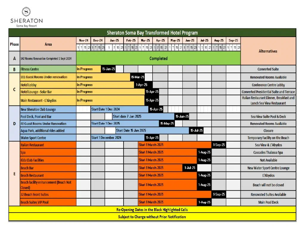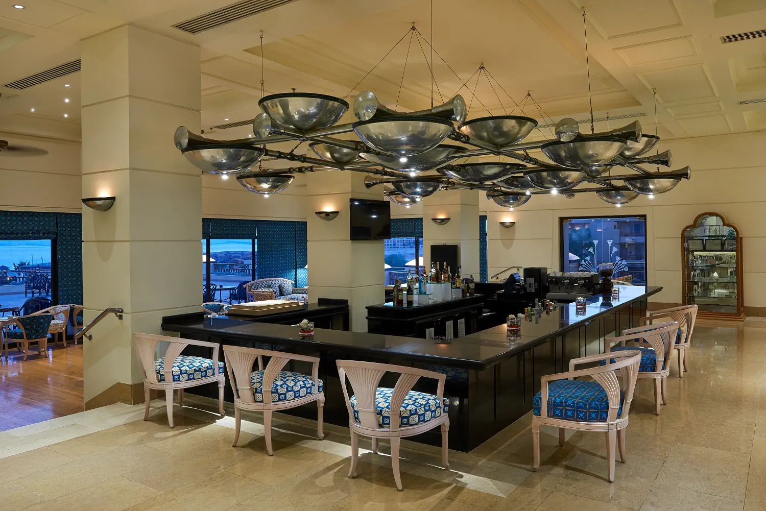Śniadanie (06:30 - 11:00) - Sea View Restaurant , stół szwedzki, Obiad (12:30 - 15:00) - Sea View Restaurant , stół szwedzki, Przekąski (15:00 - 17:00) - Sea View Restaurant , określone menu, Podwieczorek (10:00 - 00:00) - Solar Bar ( Lobby Bar ), określone menu, Kolacja (19:00 - 22:00) - L'Emporio Restaurant, stół szwedzki, Kolacja (19:00 - 22:00) - L'Emporio Restaurant, a la carte ¹⁾, L'Emporio Restaurant (19:00 - 22:00) (19:00 - 22:00), bez limitu, Kuchnia: Włoska, Wymagana rezerwacja: Tak ¹⁾, Sea View beach restaurant (12:30 - 15:30) (12:30 - 15:30), bez limitu, Kuchnia: międzynarodowa, Wymagana rezerwacja: Nie ¹⁾, Solar Bar ( Lobby Bar ) (10:00 - 00:00), Napoje: alkohole lokalne, napoje bezalkoholowe (10:00 - 00:00), Fra Fra Bar ( Pool Bar ) (10:00 - 00:00), Napoje: alkohole lokalne, napoje bezalkoholowe (10:00 - 00:00), Sea Breaze Bar ( Beach Bar ) (10:00 - 18:00), Napoje: alkohole lokalne, napoje bezalkoholowe (10:00 - 18:00), napoje bezalkoholowe, alkohole lokalne, wybrane alkohole importowane ¹⁾, lody, room service ¹⁾ ¹⁾ - dodatkowo płatne