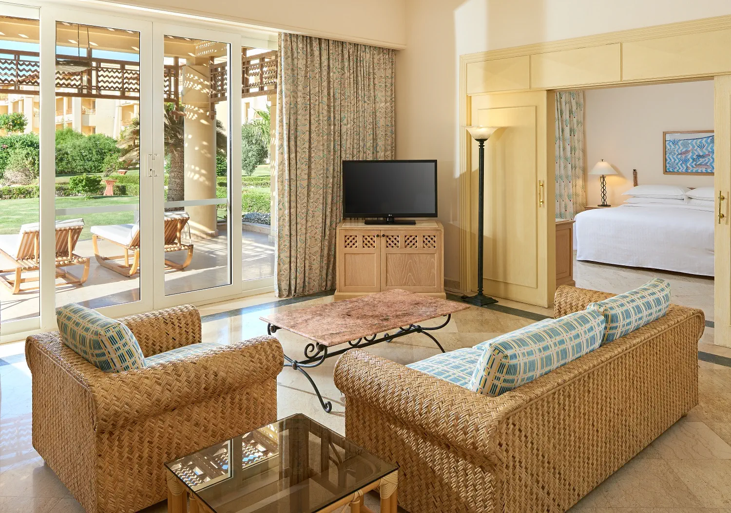 Dla max. 3 osób, Przestrzeń zewnętrzna: Balkon lub taras, Kanały telewizji: Angielski, Telefon w pokoju, wanna i prysznic , Powierzchnia pokoju: ok. 65 m2, Dostawka: łóżko standardowe, Rodzaj podłogi: płytki, Sprzątanie codziennie, Salon, Jadalnia , część jadalniana, 1 sypialnia, Maksymalna liczba osób dorosłych: 2, Maksymalna liczba dzieci: 1, Widok na ogród, Liczba łazienek: 1, Liczba toalet: 0, Zestaw do parzenia kawy i herbaty, Klimatyzacja: Klimatyzacja indywidualna