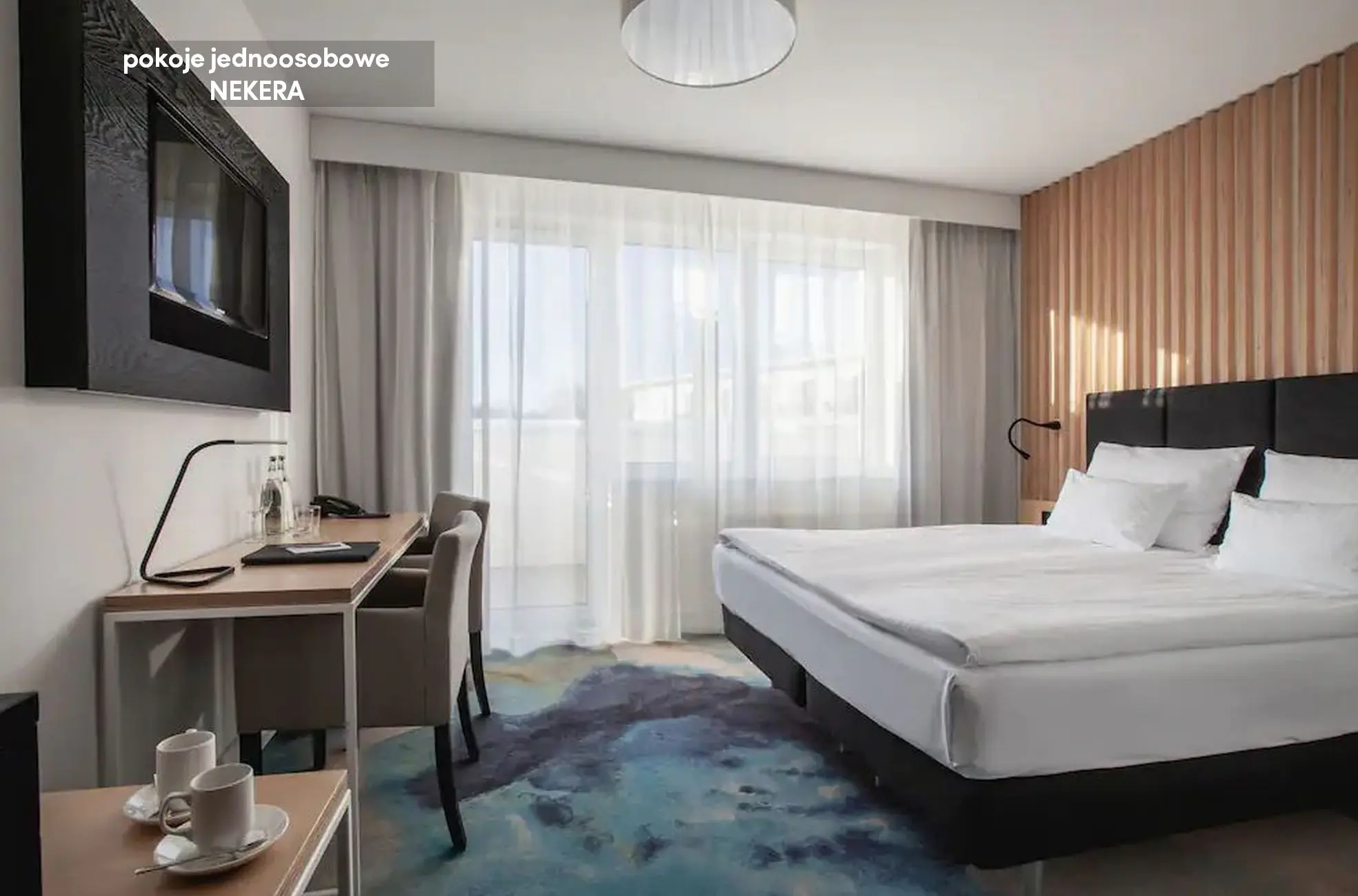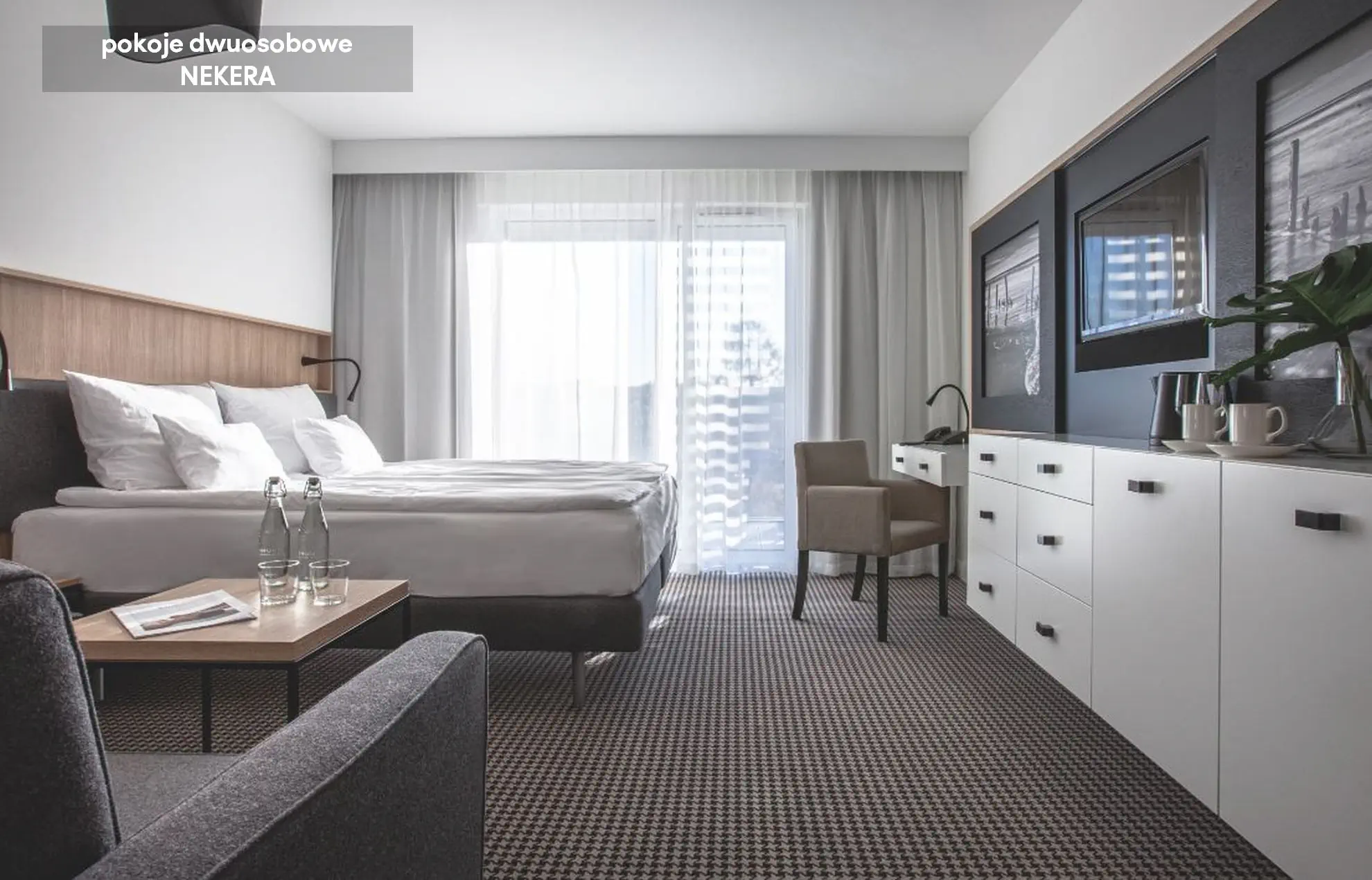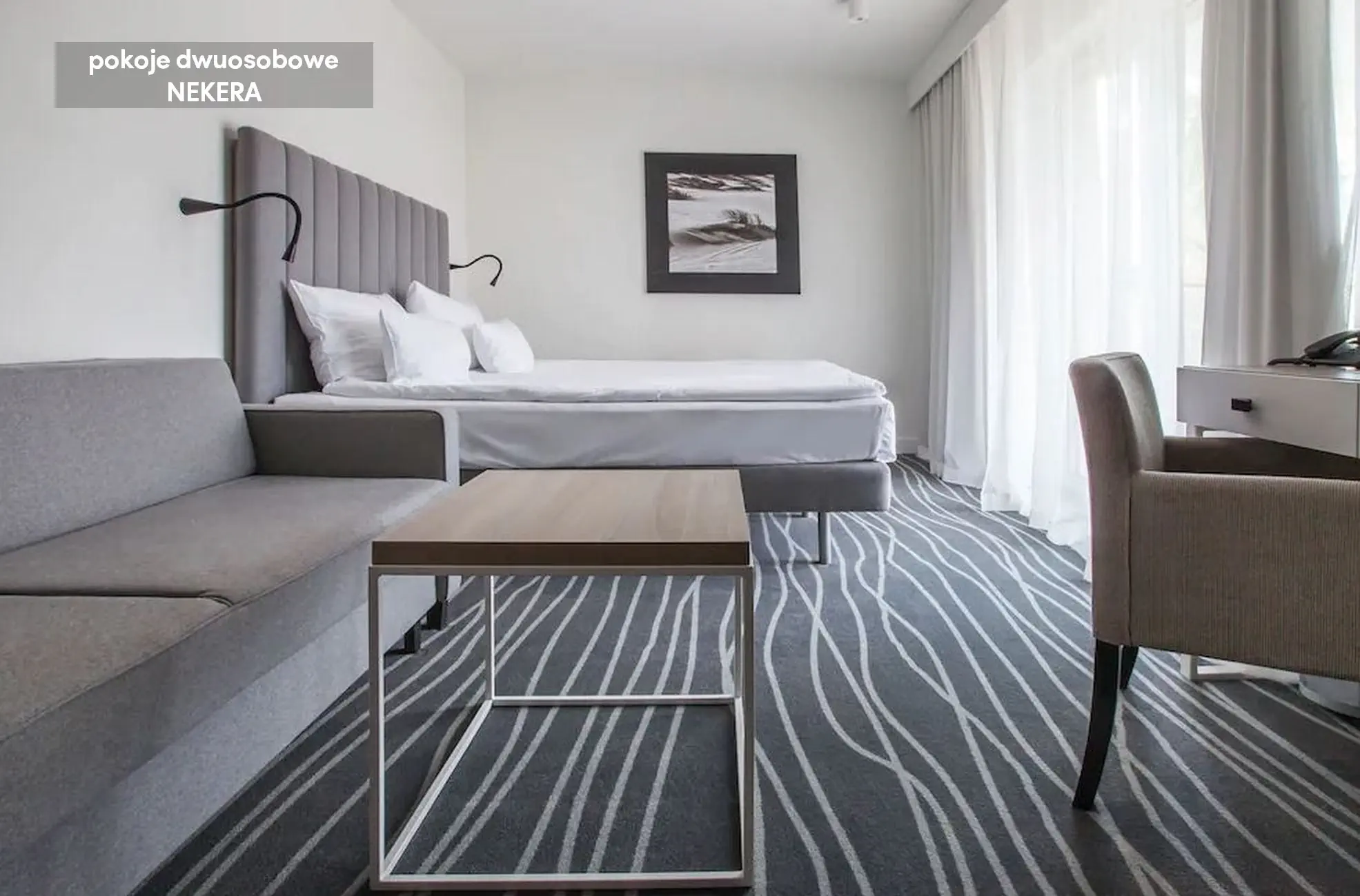 nowoczesny, komfortowy hotel oferuje 97 pokoi. Do dyspozycji Gości: hol powitalny z recepcją, miwjsca do wypoczynku, czytelnia, windy, przechowalnia bagażu, restauracja, lobby bar, taras, ogród, łączka do opalania z bezpłatnymi leżakami.