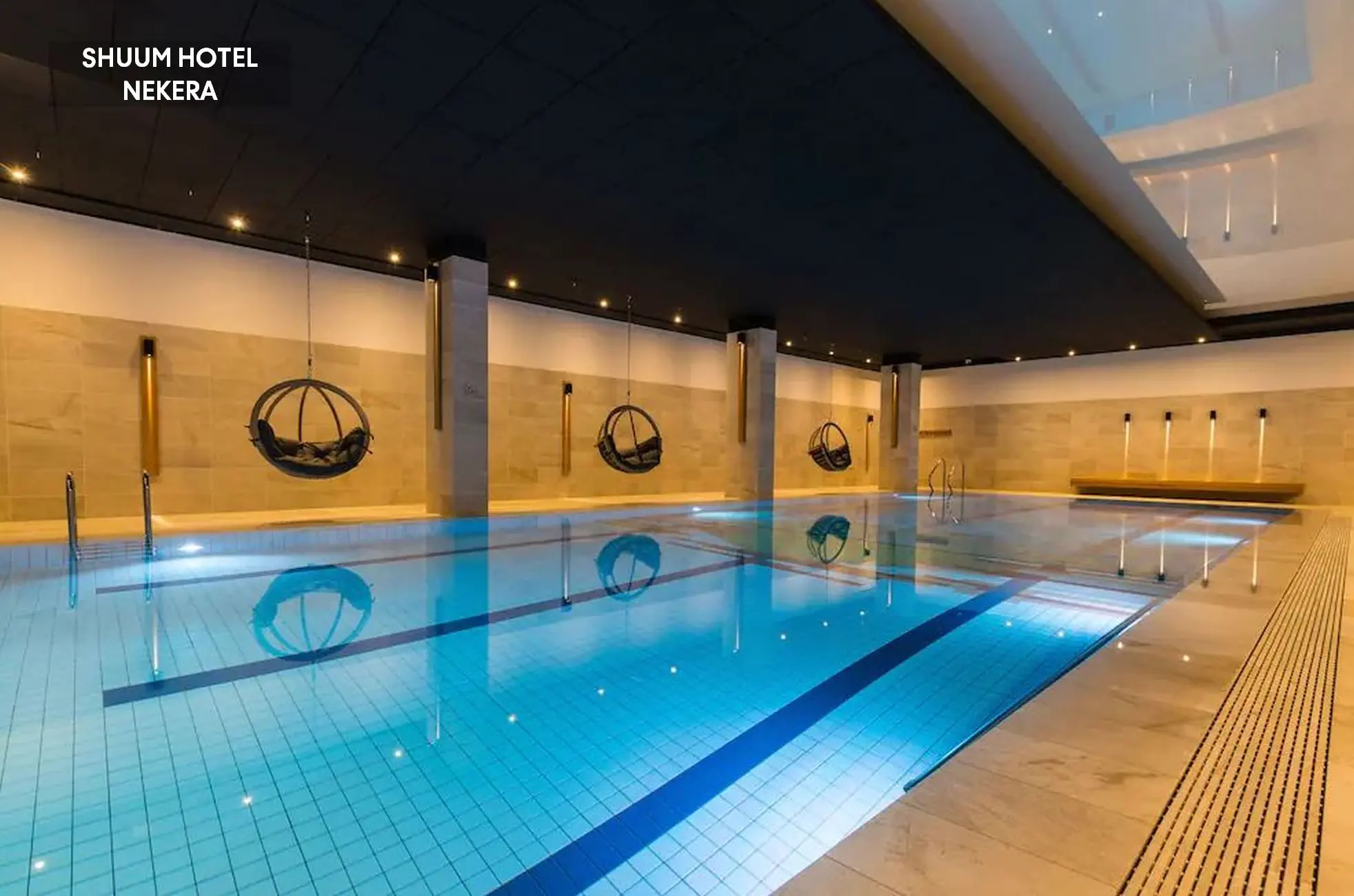 basen kryty (ok. 119 m2), łaźnia parowa, sauna, sauna fińska, whirlpool, pokój relaksacyjny. Za opłatą: zabiegi kosmetyczne, masaże.