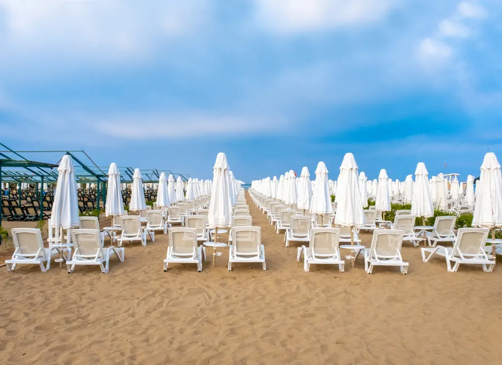 Prywatna, Piaszczysta, Piaszczyste zejście do morza, Dojście do plaży przez ulicę, tunelem itp., odleglość do plaży: 70 m, długość plaży: 100 m, Parasole - bezpłatnie, Leżaki - bezpłatnie, Ręczniki - bezpłatnie, Beach Bar - bezpłatnie, Prysznic